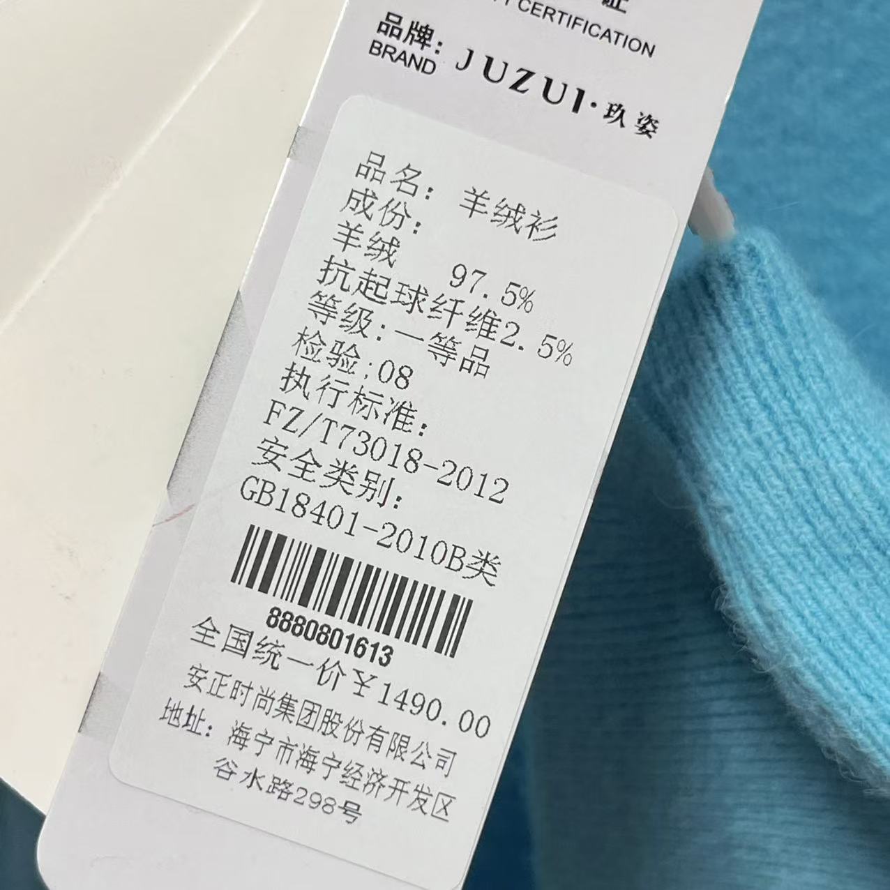 【孤品捡漏】(玖姿品牌)G120冰水蓝97.5%羊绒衫-喜出