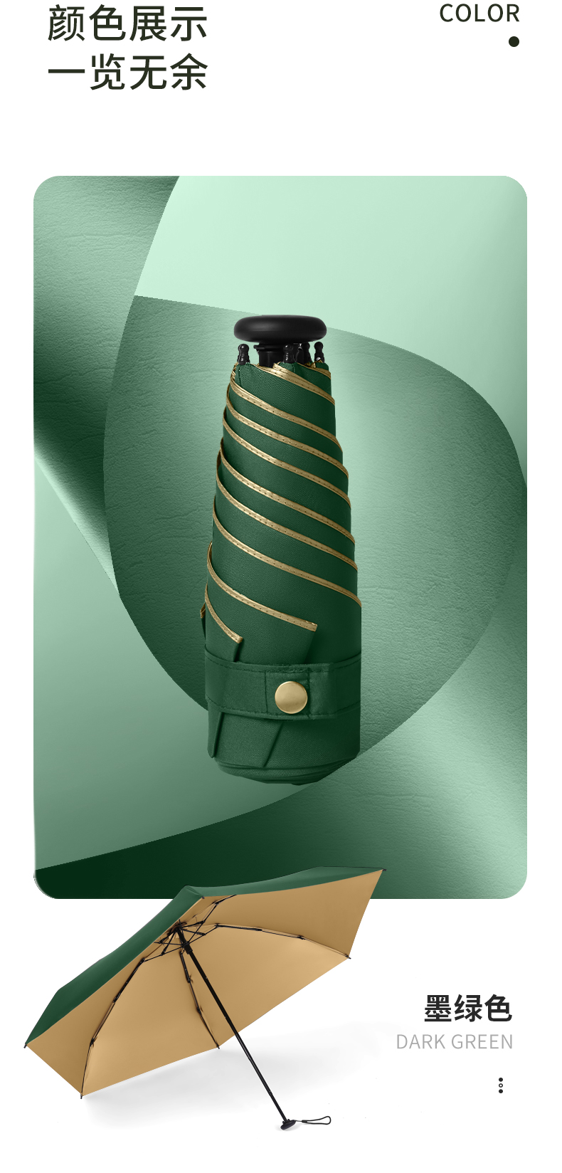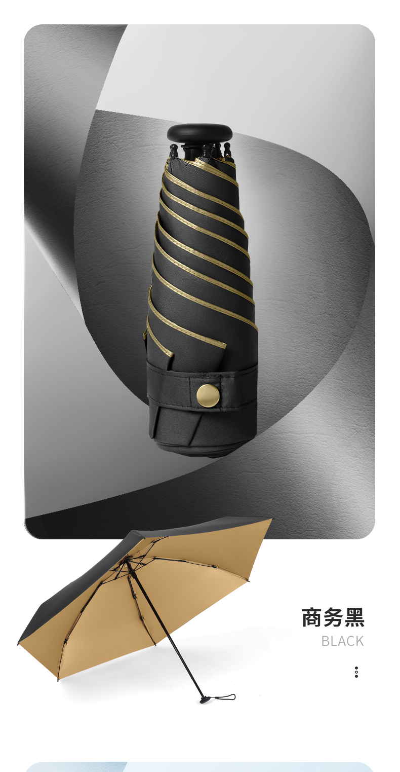 烫金系列加厚金胶涂层轻巧拇指伞