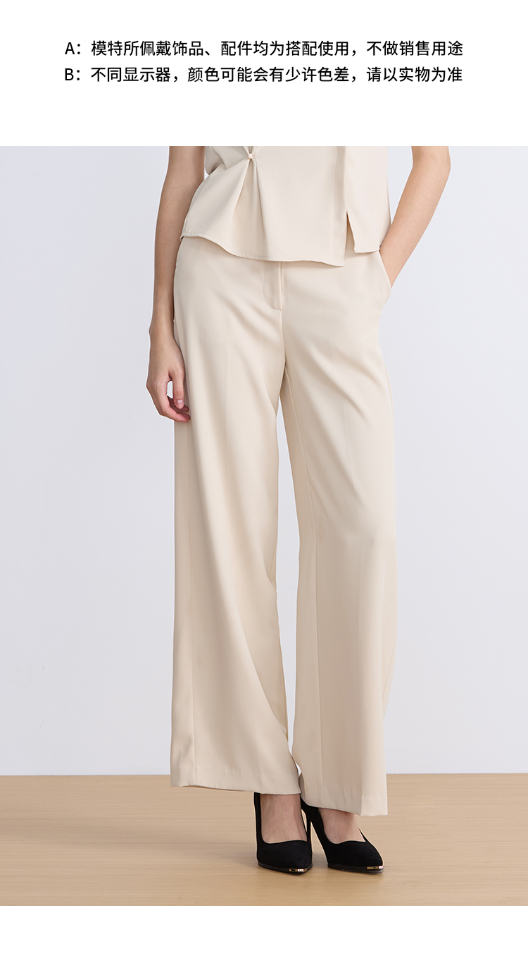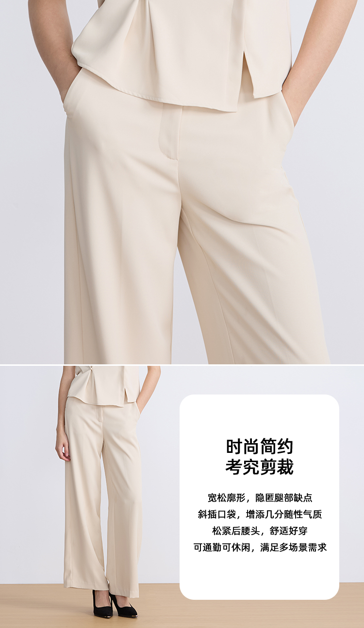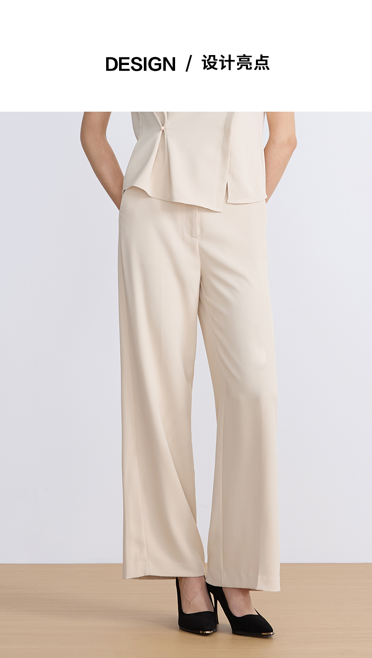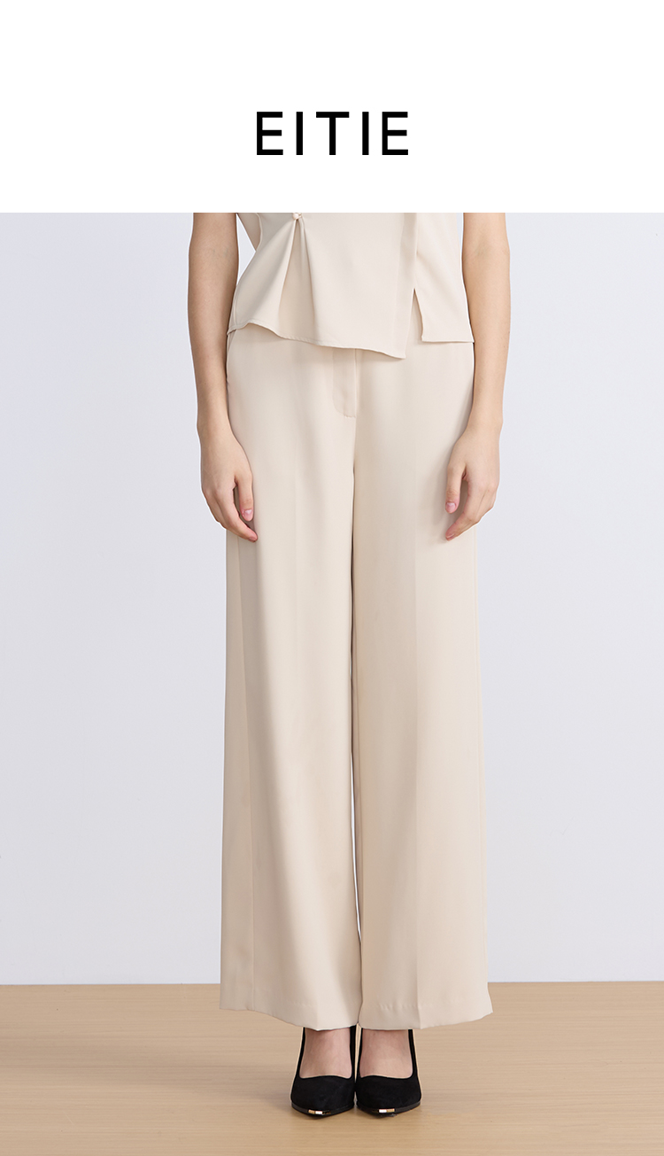 EITIE爱特爱夏新款高腰纯色通勤显瘦干练百搭直筒长裤7805508