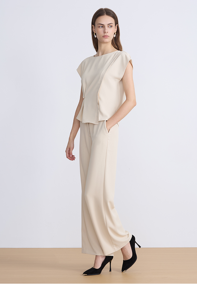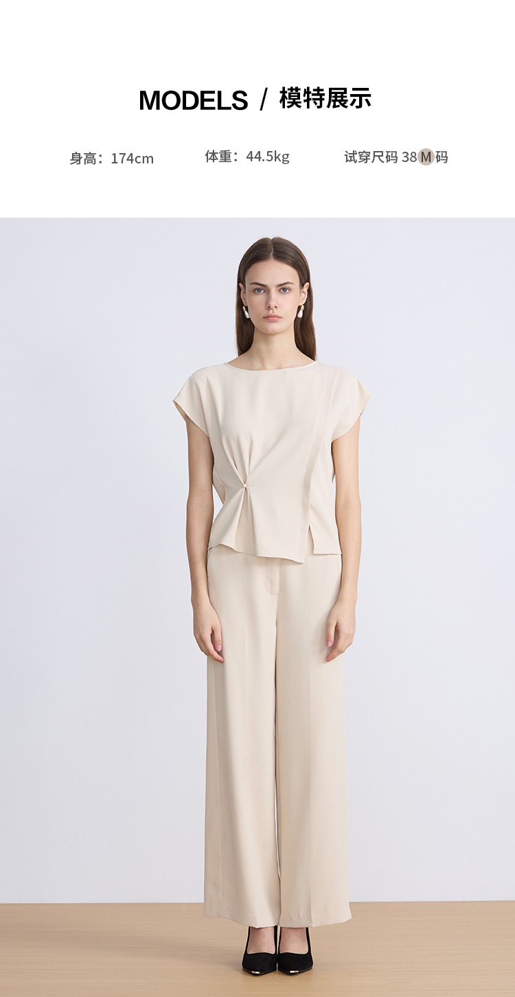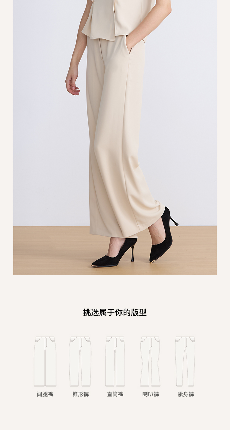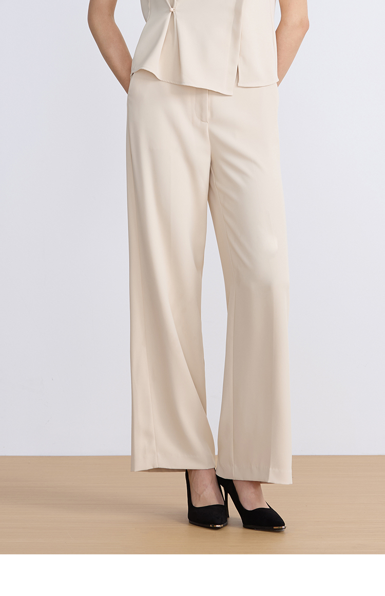 EITIE爱特爱夏新款高腰纯色通勤显瘦干练百搭直筒长裤7805508
