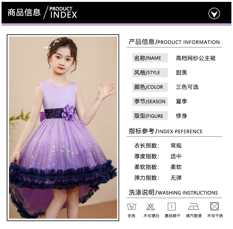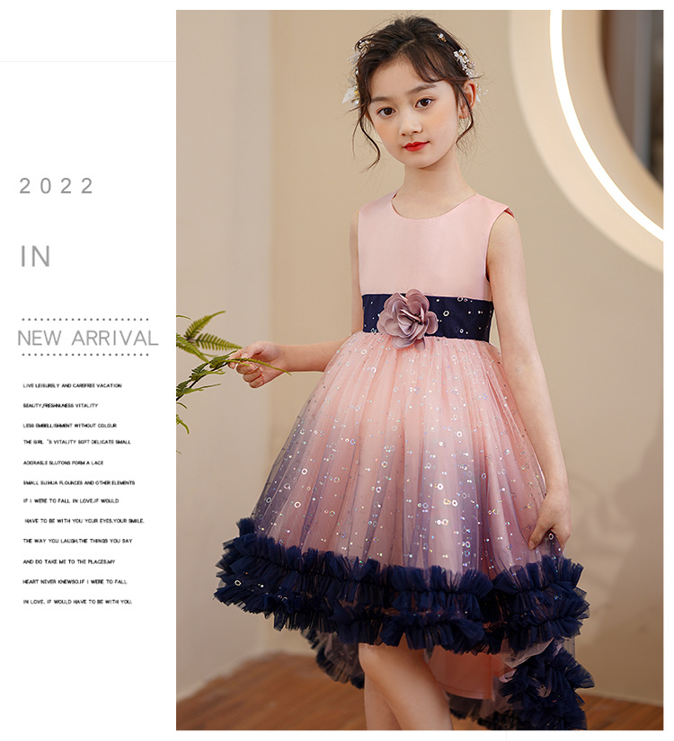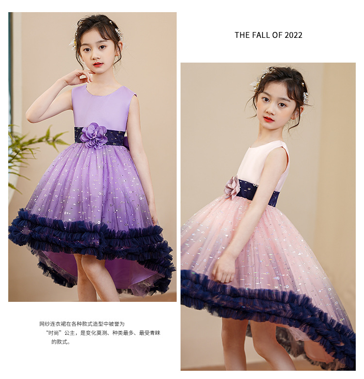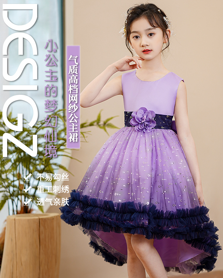 儿童礼服裙小女孩蓬蓬纱裙六一钢琴表演服拖尾连衣裙DP88024