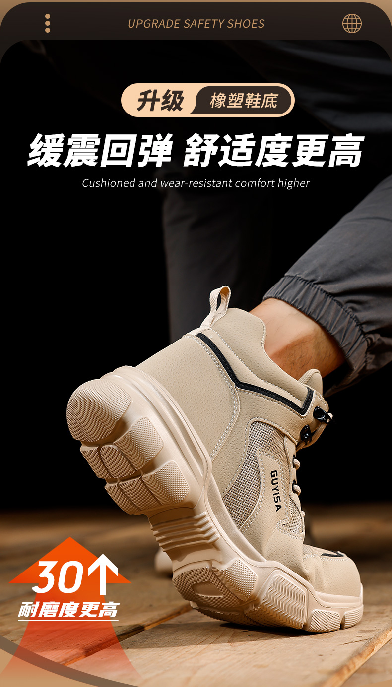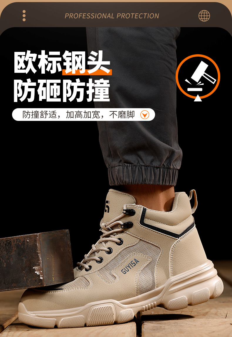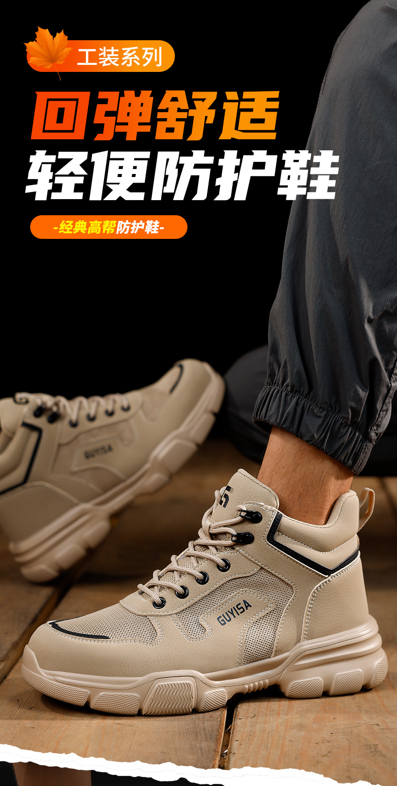劳保鞋男高帮四季款防砸防刺钢包头橡塑底安全鞋轻便