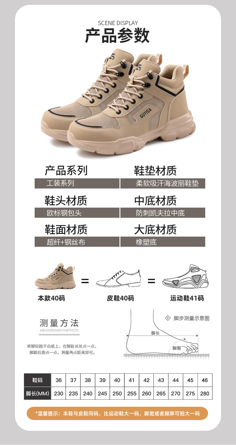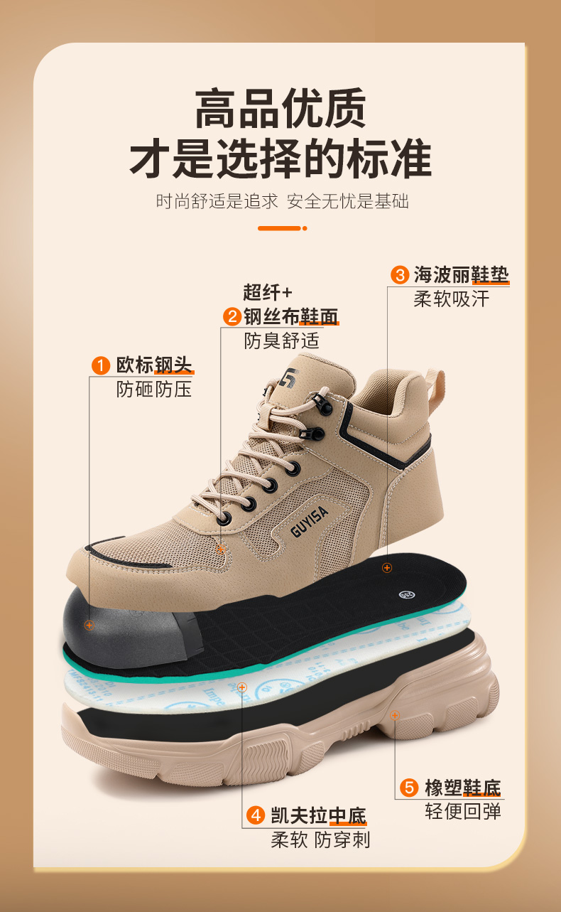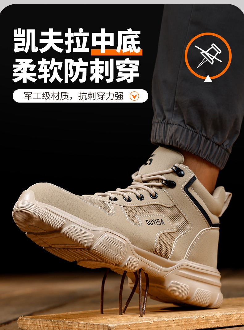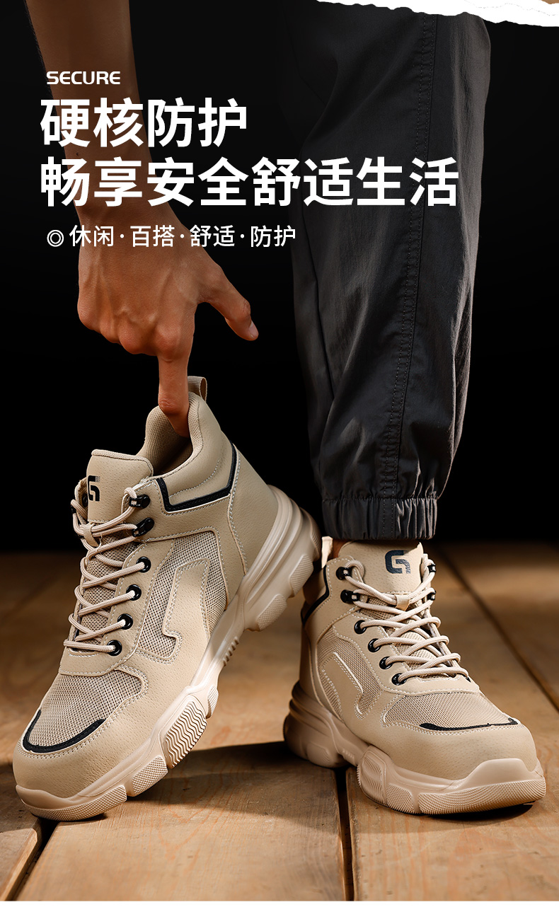 劳保鞋男高帮四季款防砸防刺钢包头橡塑底安全鞋轻便