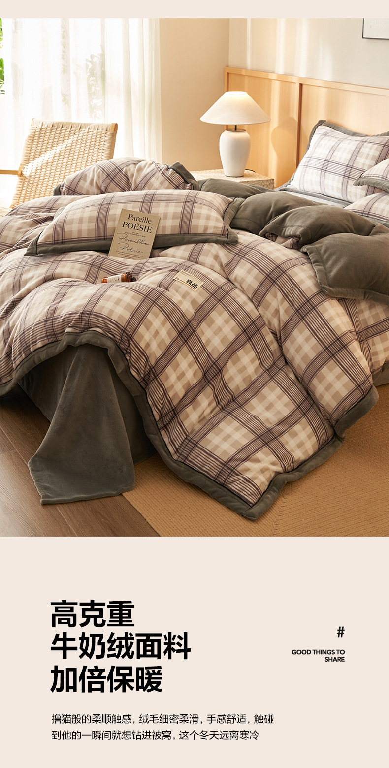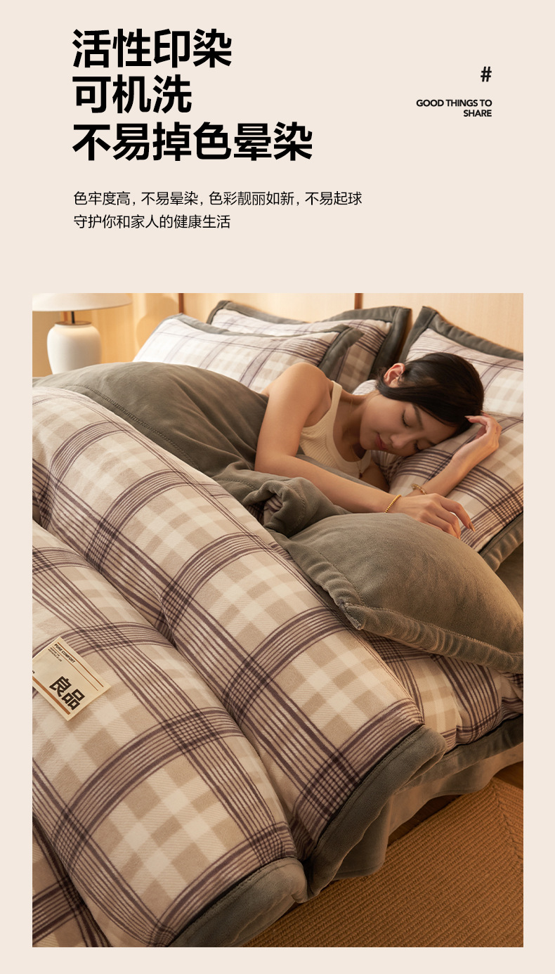 三泰龙 牛奶绒四件套加厚保暖珊瑚绒被套双面绒