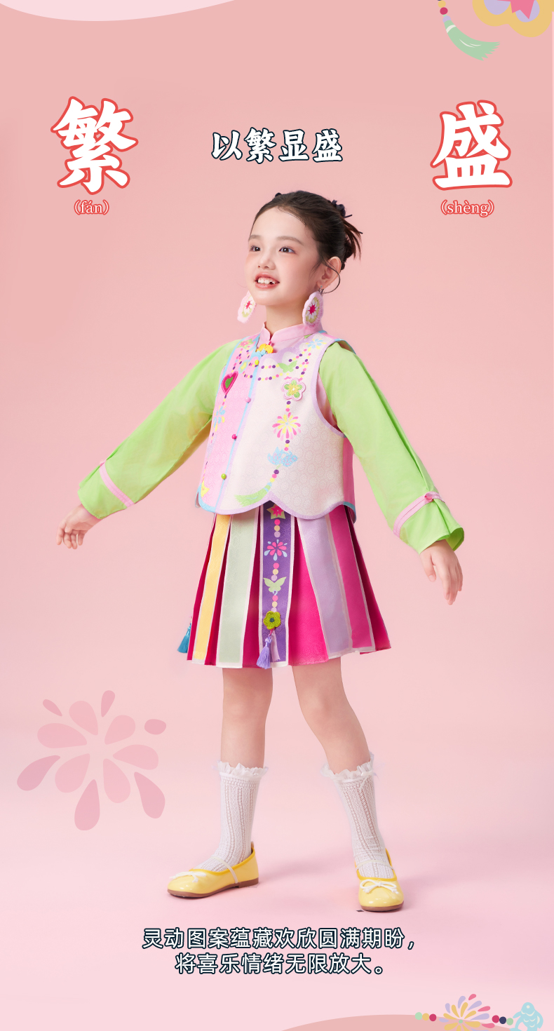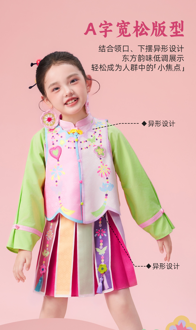 【年衣】童装25秋季新款女孩中式马夹背心上衣半身裙套装花火虹心马甲