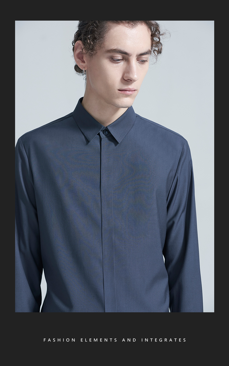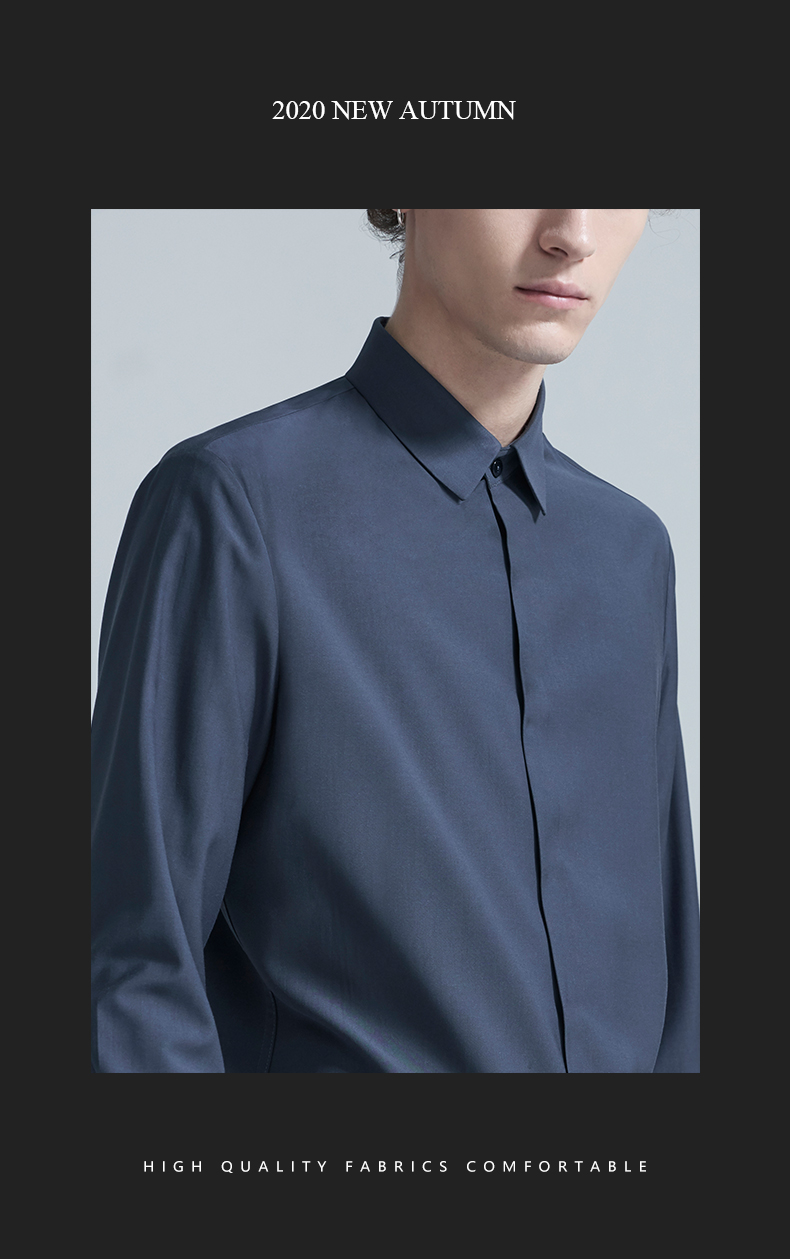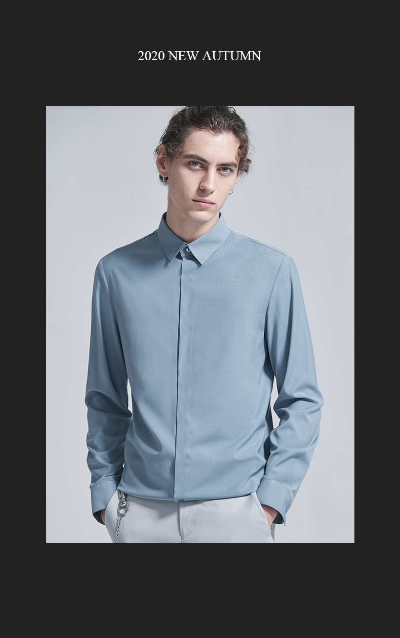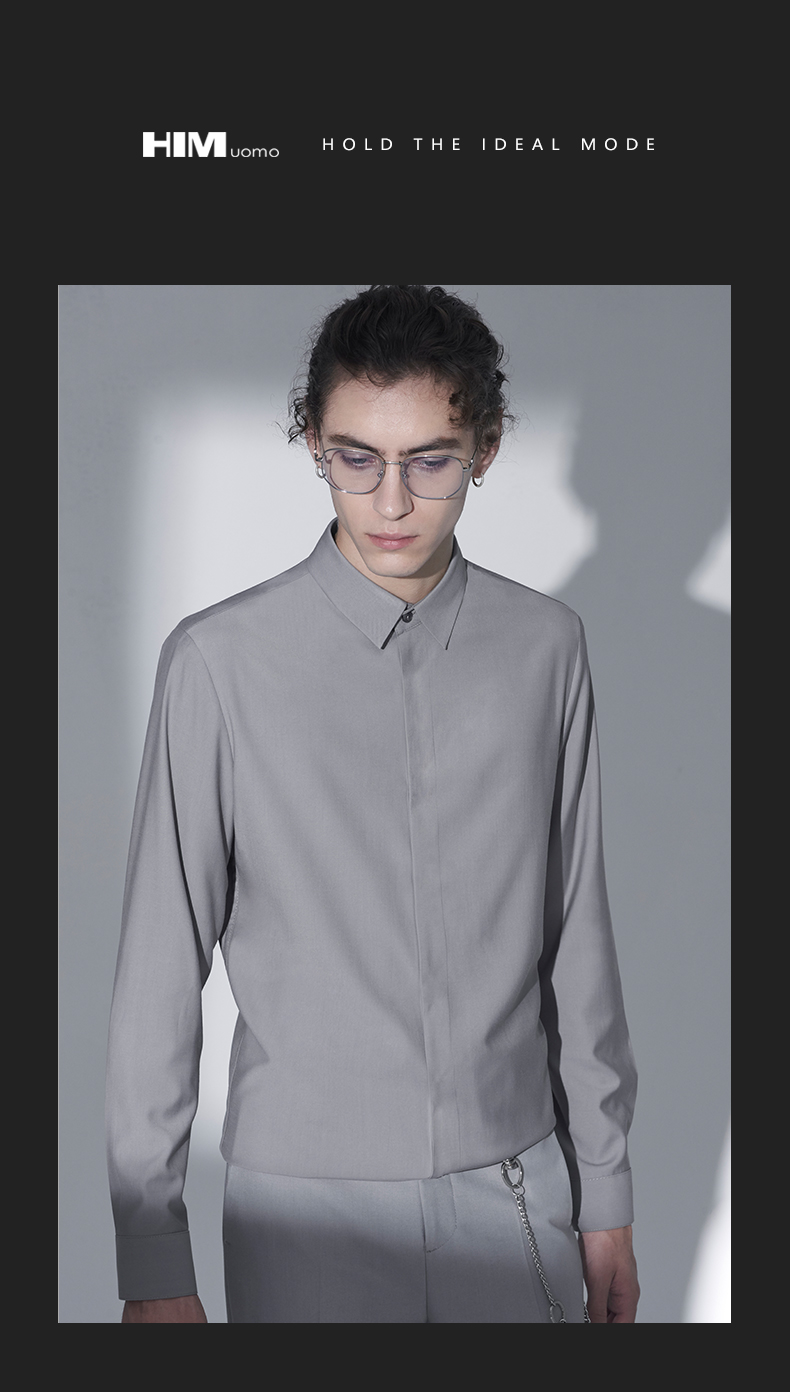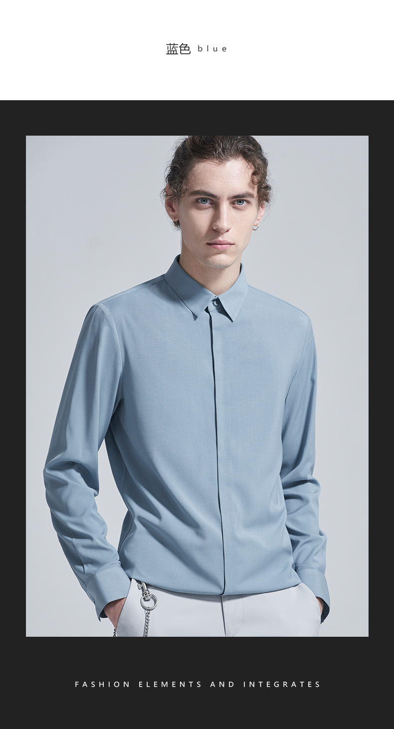 HIM漢崇 衬衫秋冬新款抗皱免烫高端长袖衬衣优雅商务正装衬衫