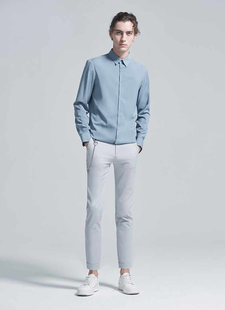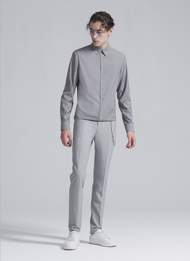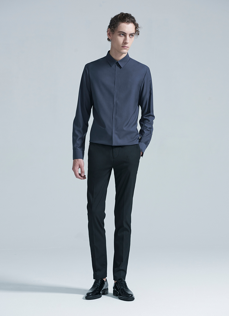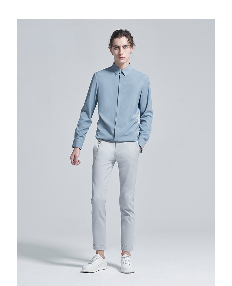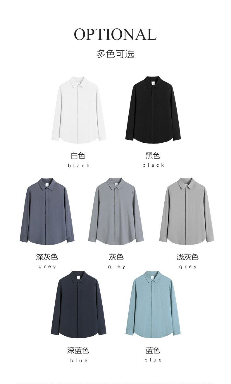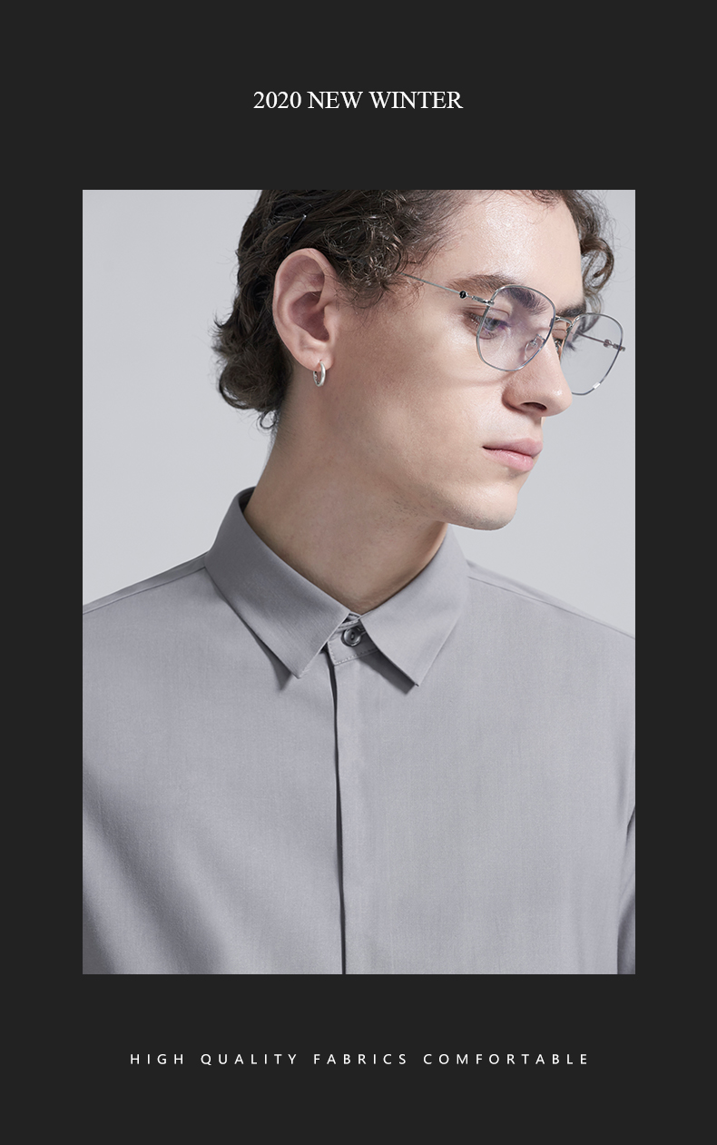 HIM漢崇 衬衫秋冬新款抗皱免烫高端长袖衬衣优雅商务正装衬衫