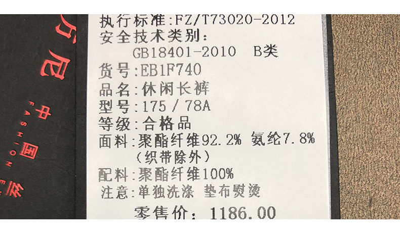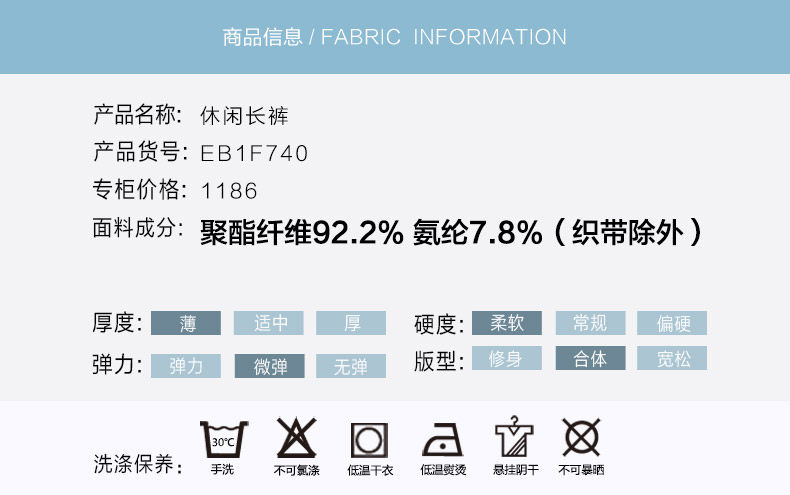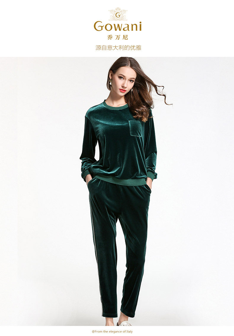 乔万尼春季裤子中腰松紧腰直筒垂感时尚金丝绒休闲裤EB1F740