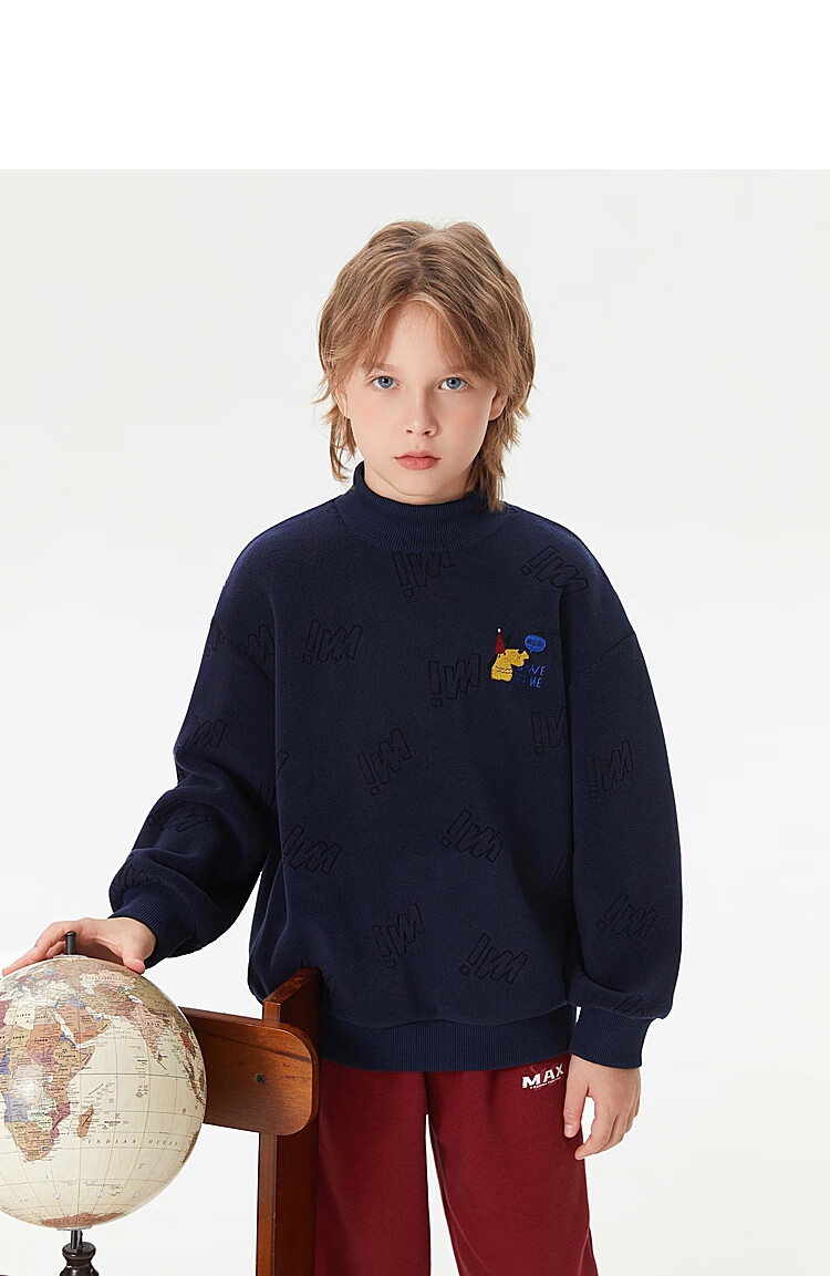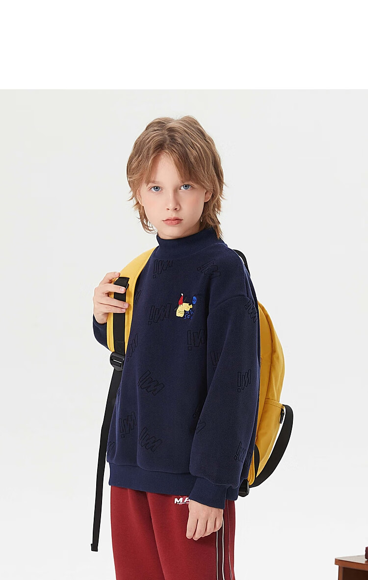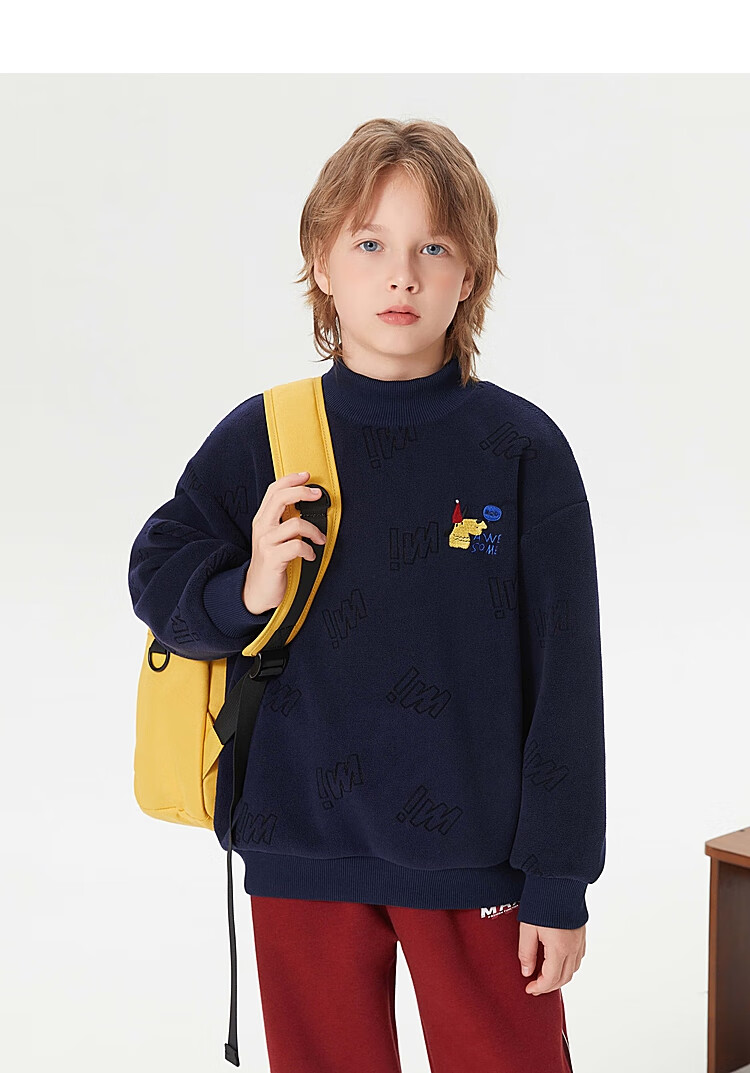 【MQD】童装男大童冬新款基础百搭学院风加绒半高领卫衣