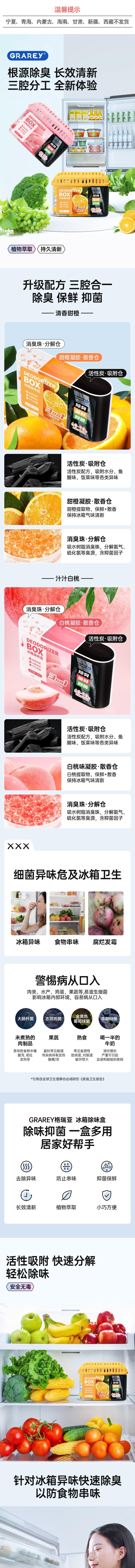 GRAREY格瑞亚 冰箱除味盒3腔款160g/盒 MNS-425-4-MNS-426-4