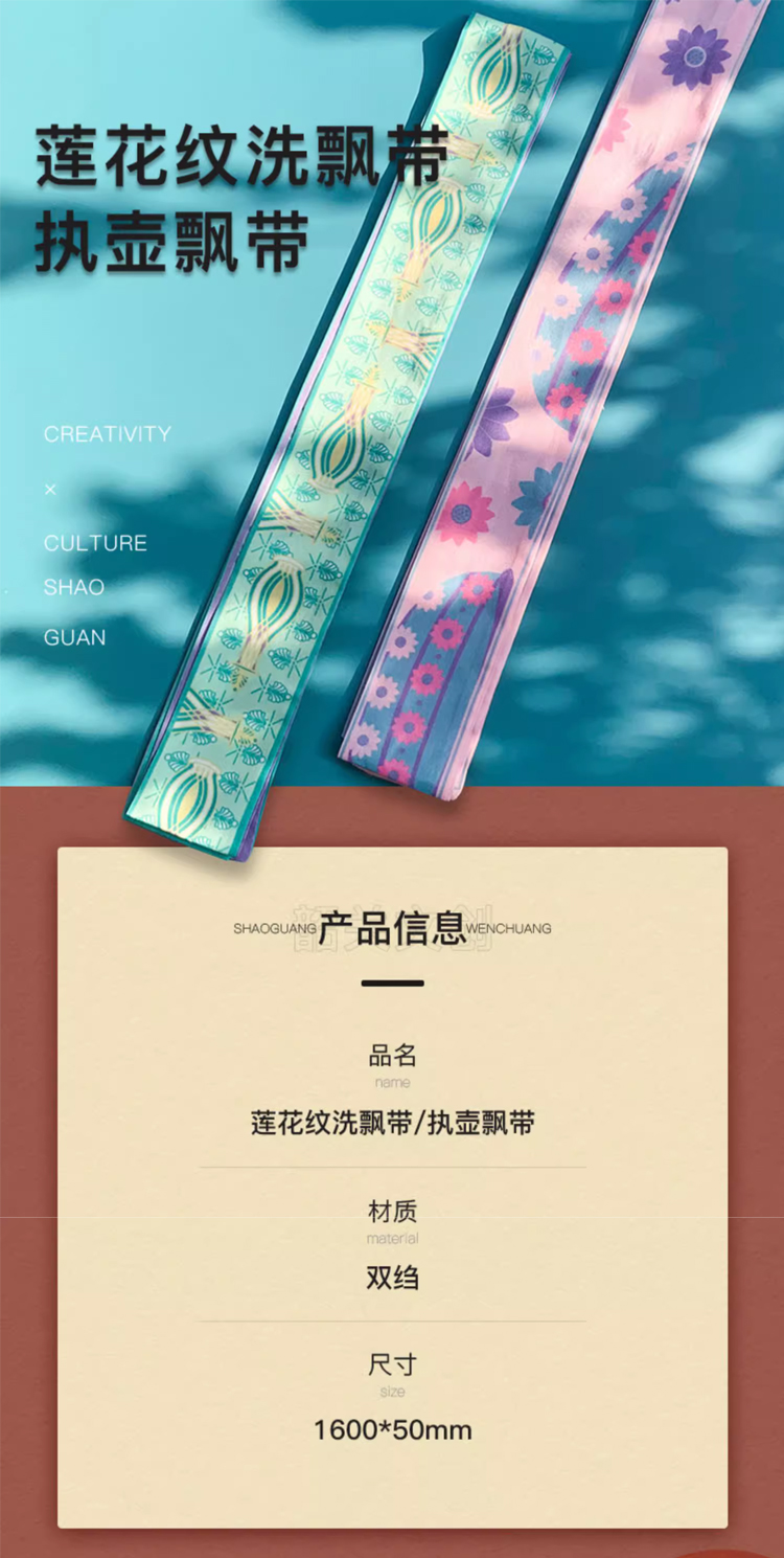 【韶关市博物馆文创】莲花纹洗飘带/蕉叶瓶飘带,百搭扎头绑发丝带网红洗面发带