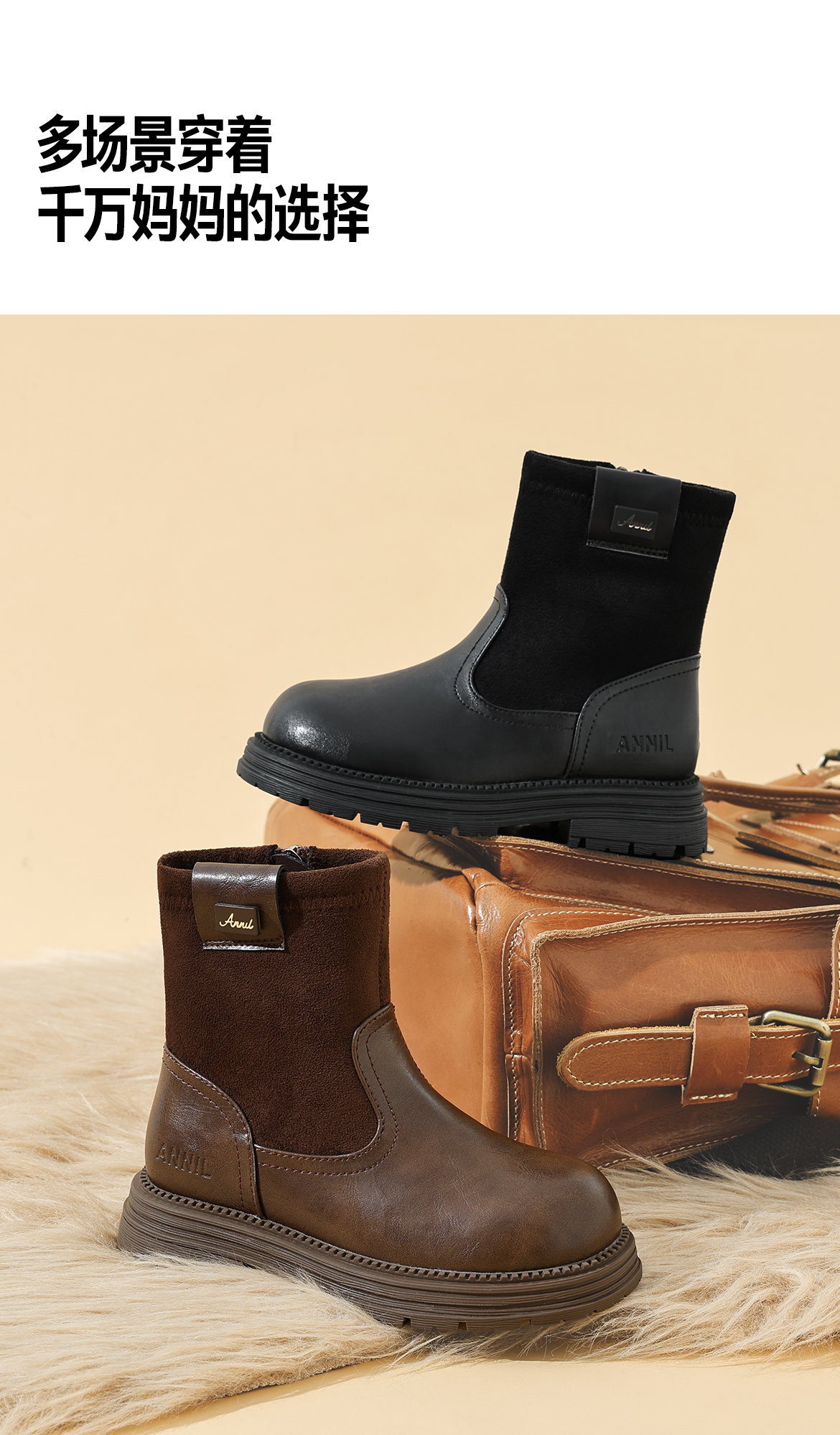 ANNIL/安奈儿童鞋女童6-12岁加绒加厚马丁靴儿童HG5409643