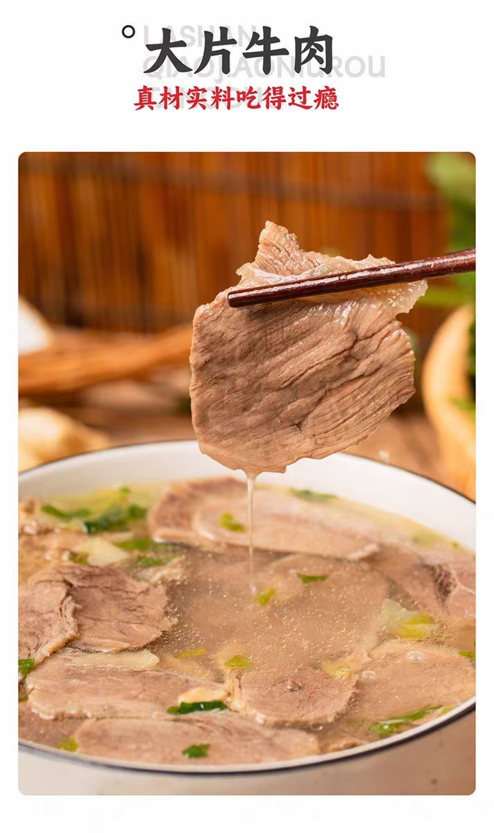 品名:四川乐山跷脚牛肉汤 规格1:790g/盒*1盒 规格2:790g/盒*2盒(内含550g牛肉原汤+200g牛肉+30g牛油+10g辣椒蘸料/盒);拍几份发几个包裹,不一定能同时到达,请耐心等待; 发货地/产地:河南 包装方式:盒装 物流信息:默认顺丰冷链快递(东北发中通),不支持指定快递 发货区域:新疆、西藏、内蒙、海南不发; 物流详情:周六、周日及节假日除外,正常48小时内发货,到货时间约为2~5天,请耐心等待 售后说明:收到货后有质量问题,在24小时内都可以拍照(坏品+快递单面箱子一起拍)上传,申请按坏品比例理赔或联系客服,生鲜性质特殊,因地址错误,手机号联系不上,未及时签收,拒收等造成的损失无法售后,请理解; |