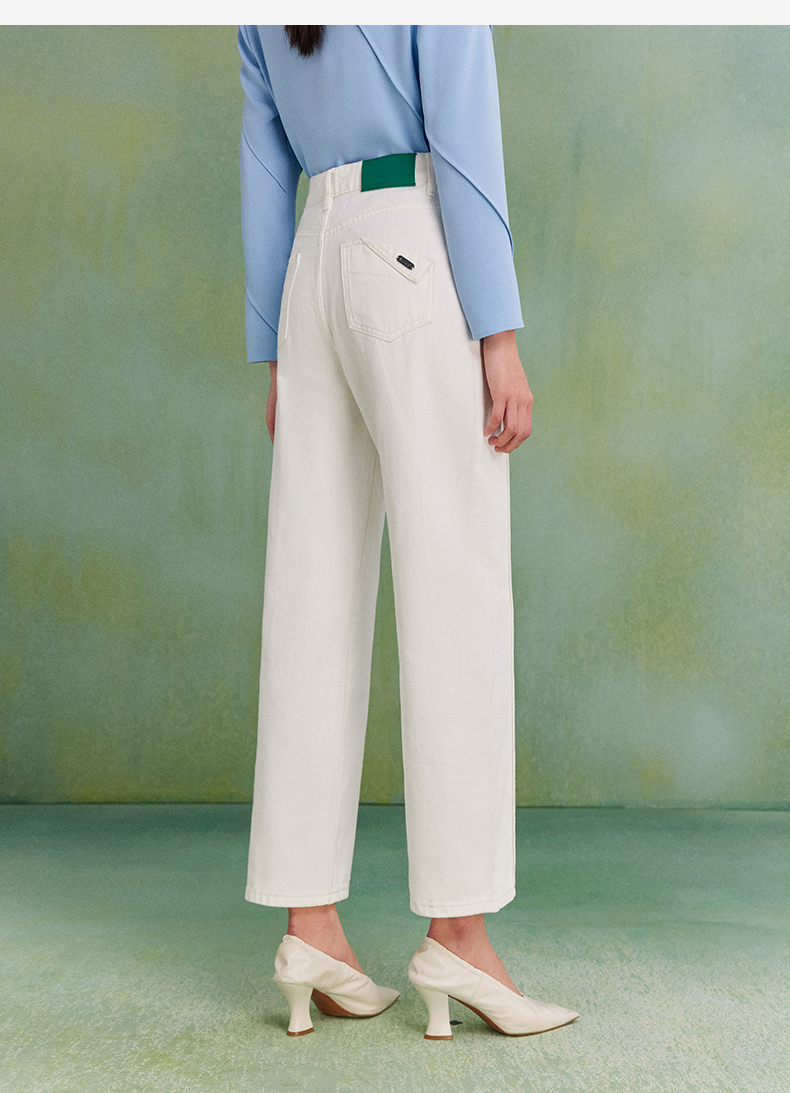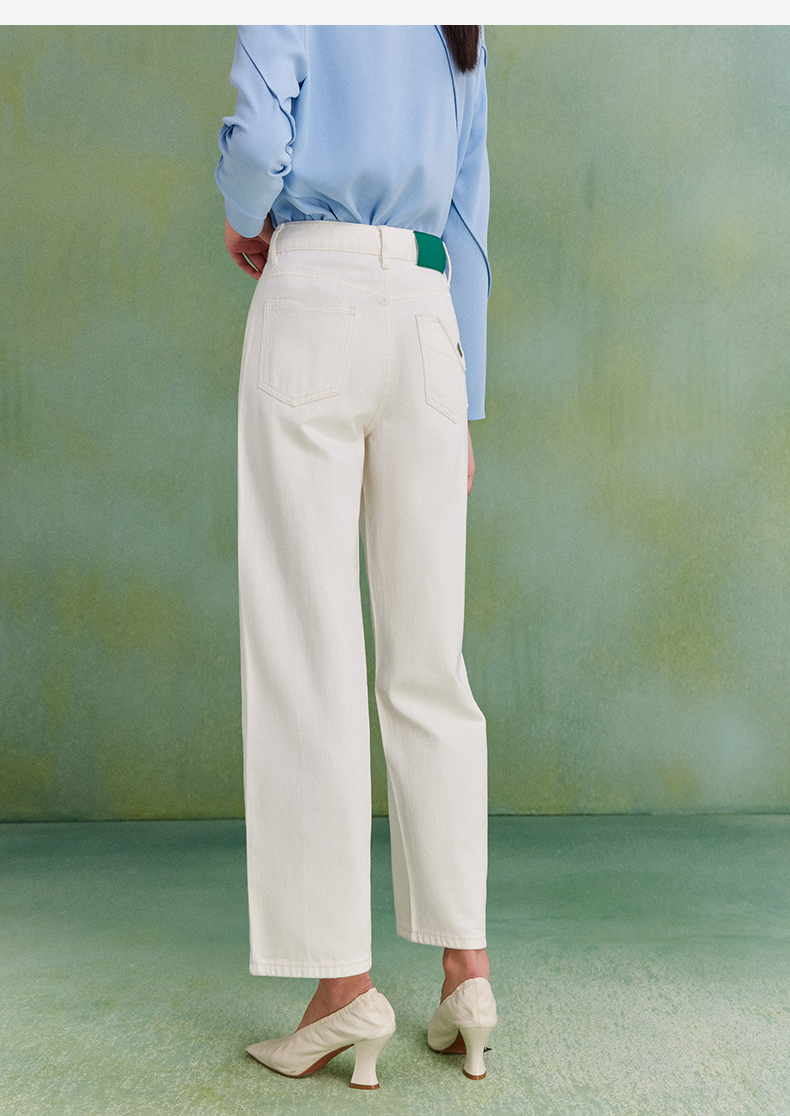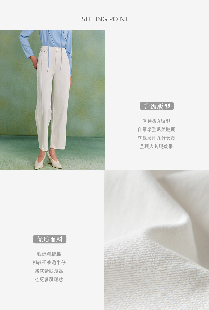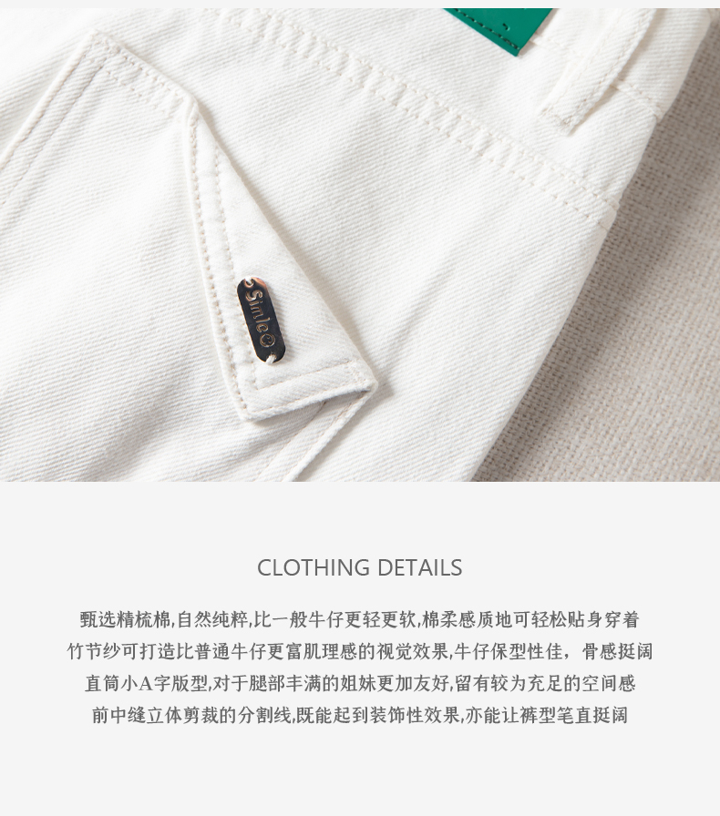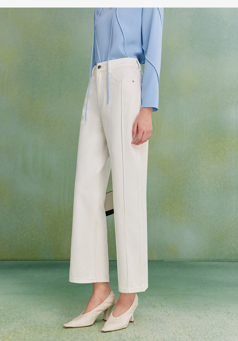 西嘉C+IMPRESS|精梳棉 牛仔裤女春夏纯棉直筒九分裤白色裤子