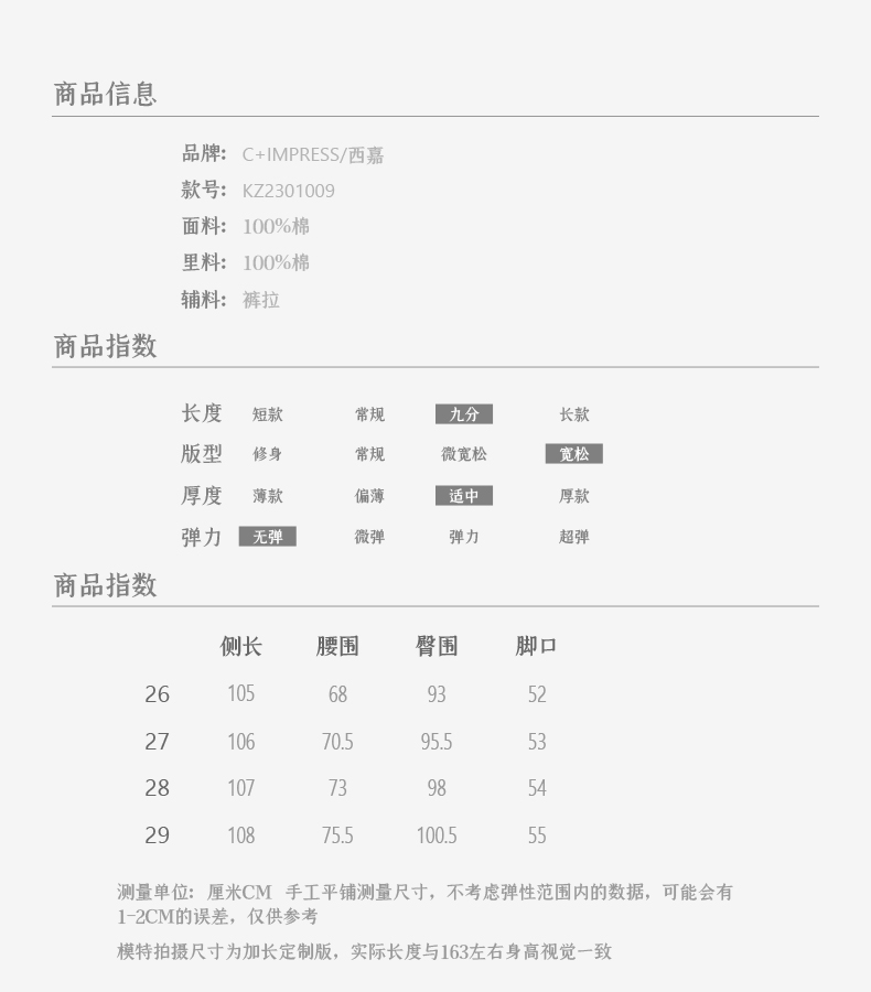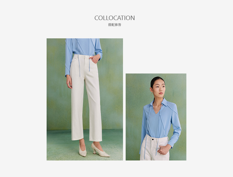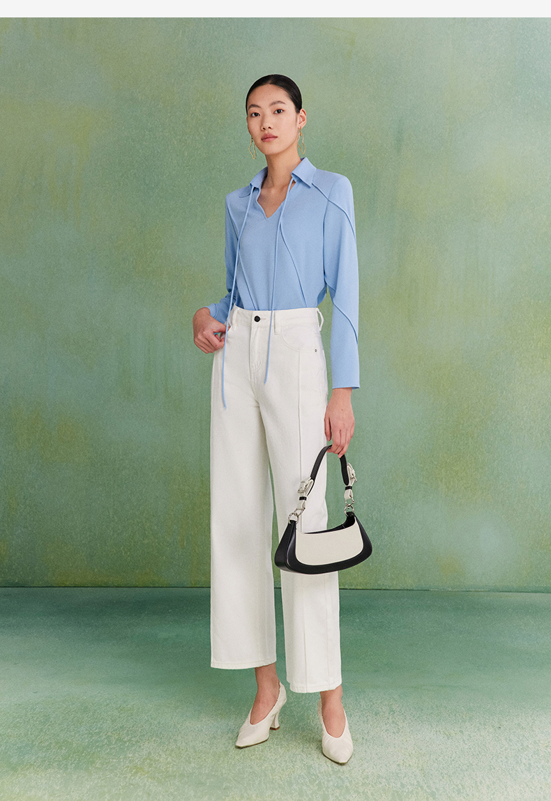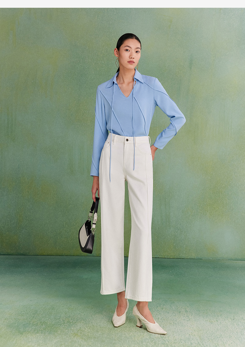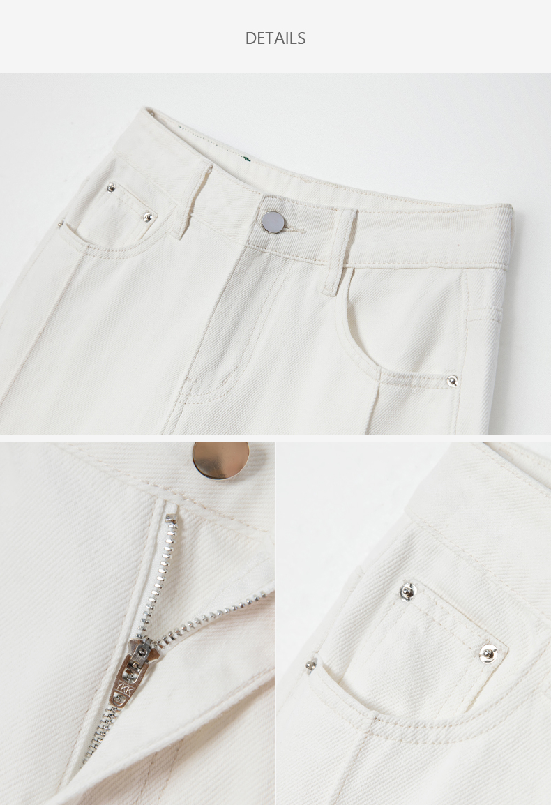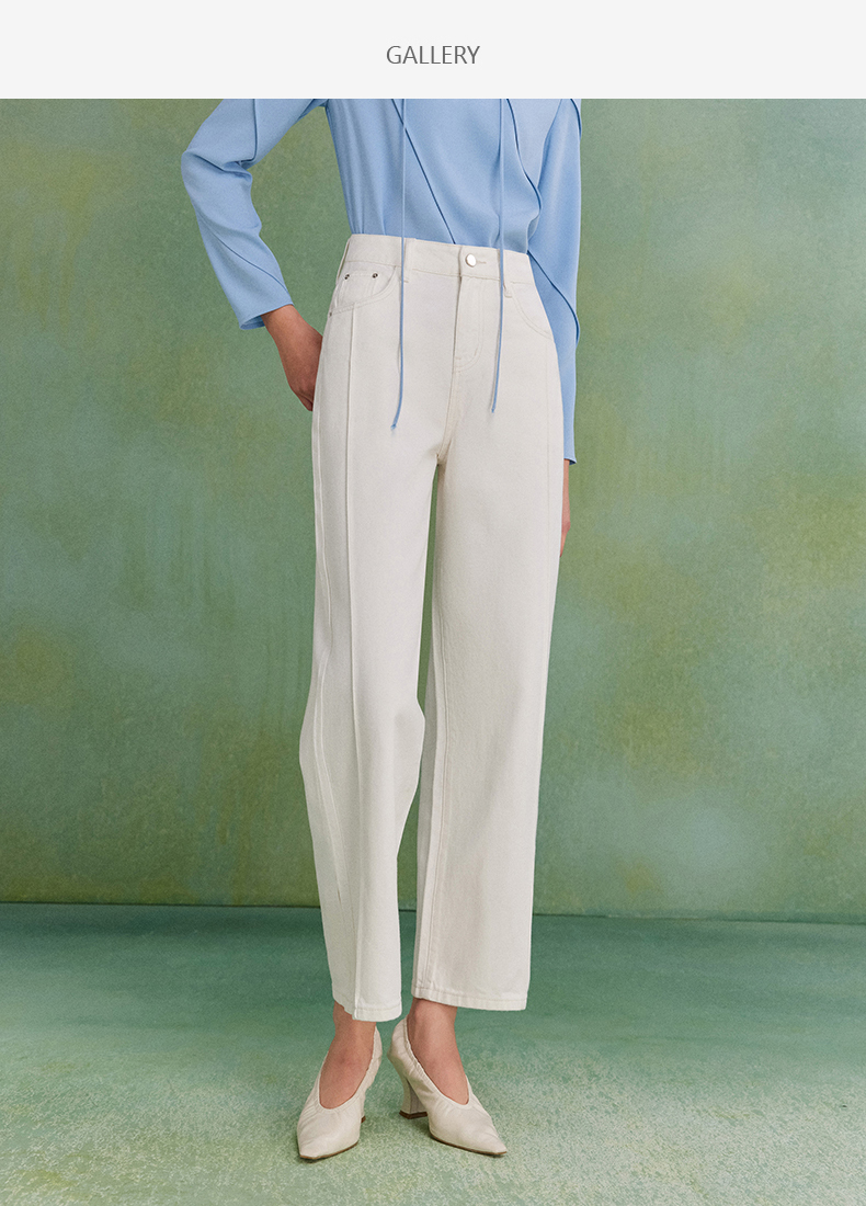 西嘉C+IMPRESS|精梳棉 牛仔裤女春夏纯棉直筒九分裤白色裤子