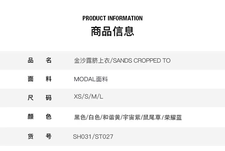 莫代尔金沙露脐上衣 Modal Sands Cropped Top 含胸垫