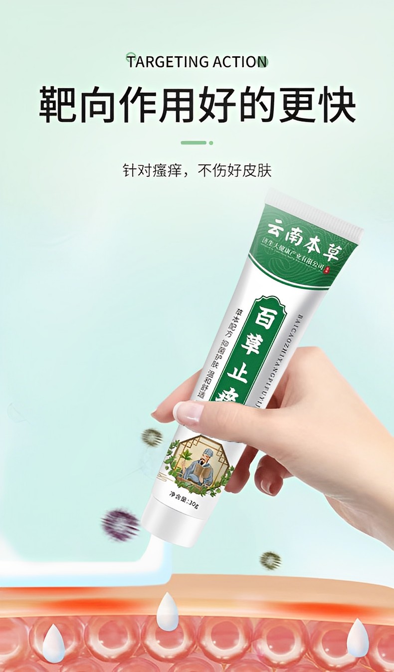 【湿疹止痒】云南本草百草止痒膏 湿疹成人止痒外用皮肤瘙痒膏 四季常备 防止皮肤瘙痒