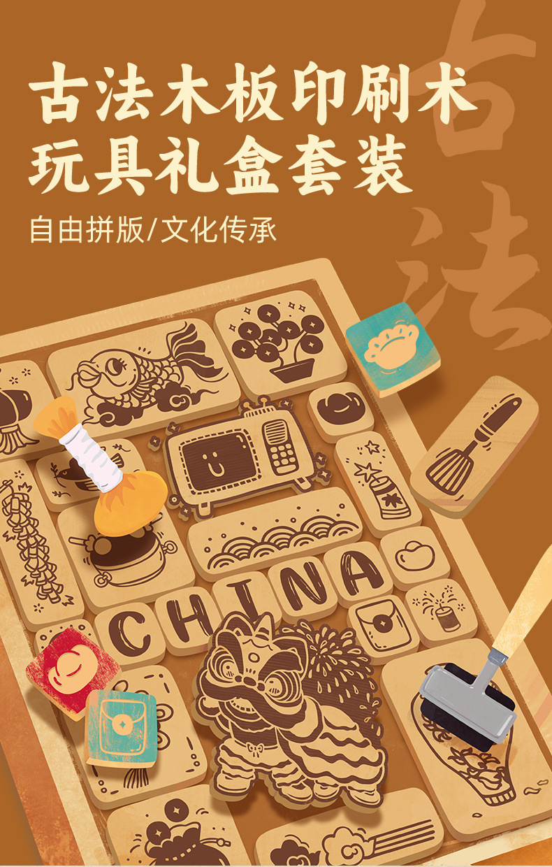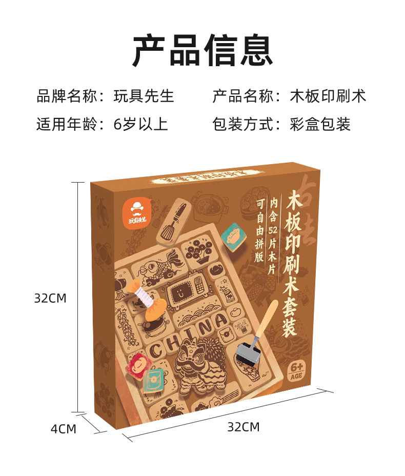 【DIY非遗木板印刷术套装】玩具先生儿童手工DIY体验拓印材料非遗文化活动