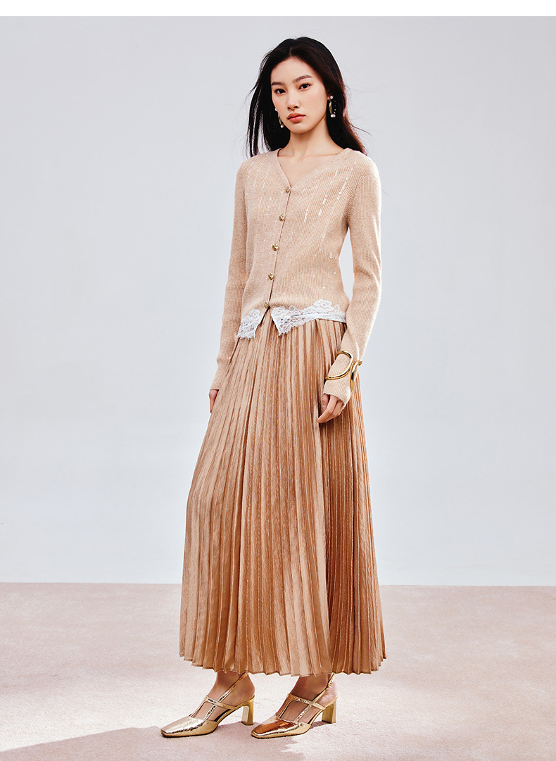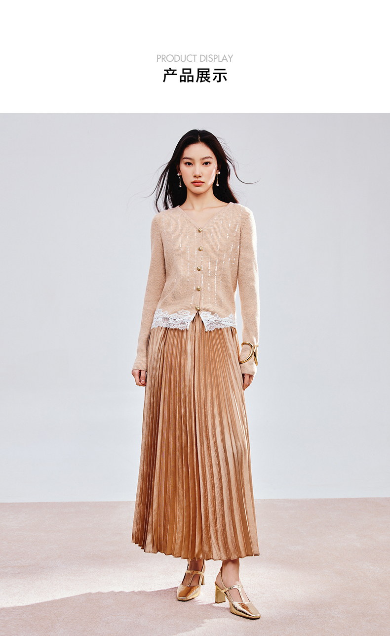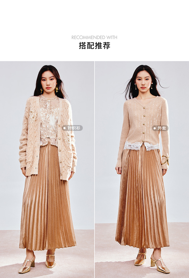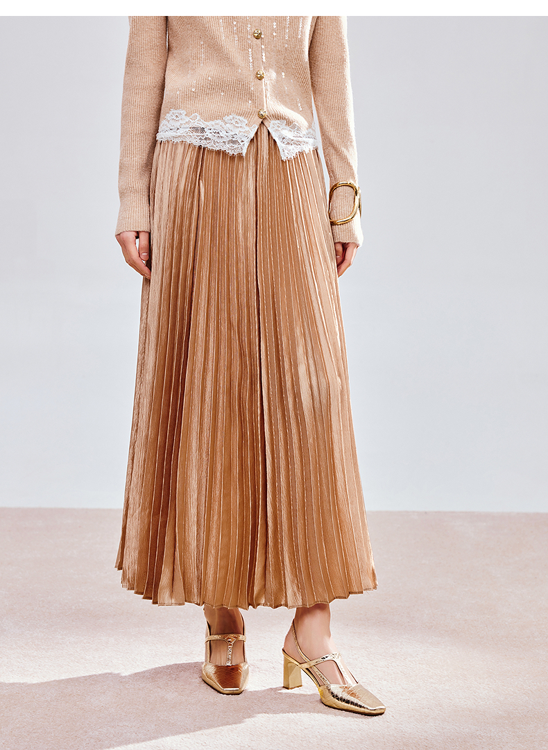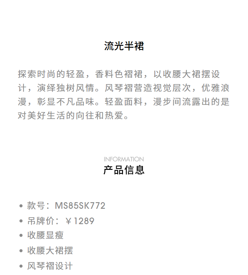 MAXRIENY精致优雅感大裙摆褶裙高腰半裙25春新款收腰显瘦气质长裙(货号:MS85SK772)