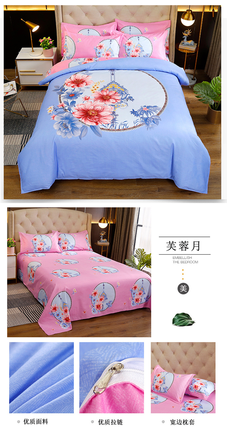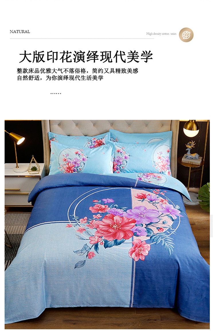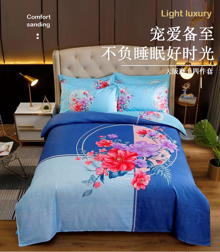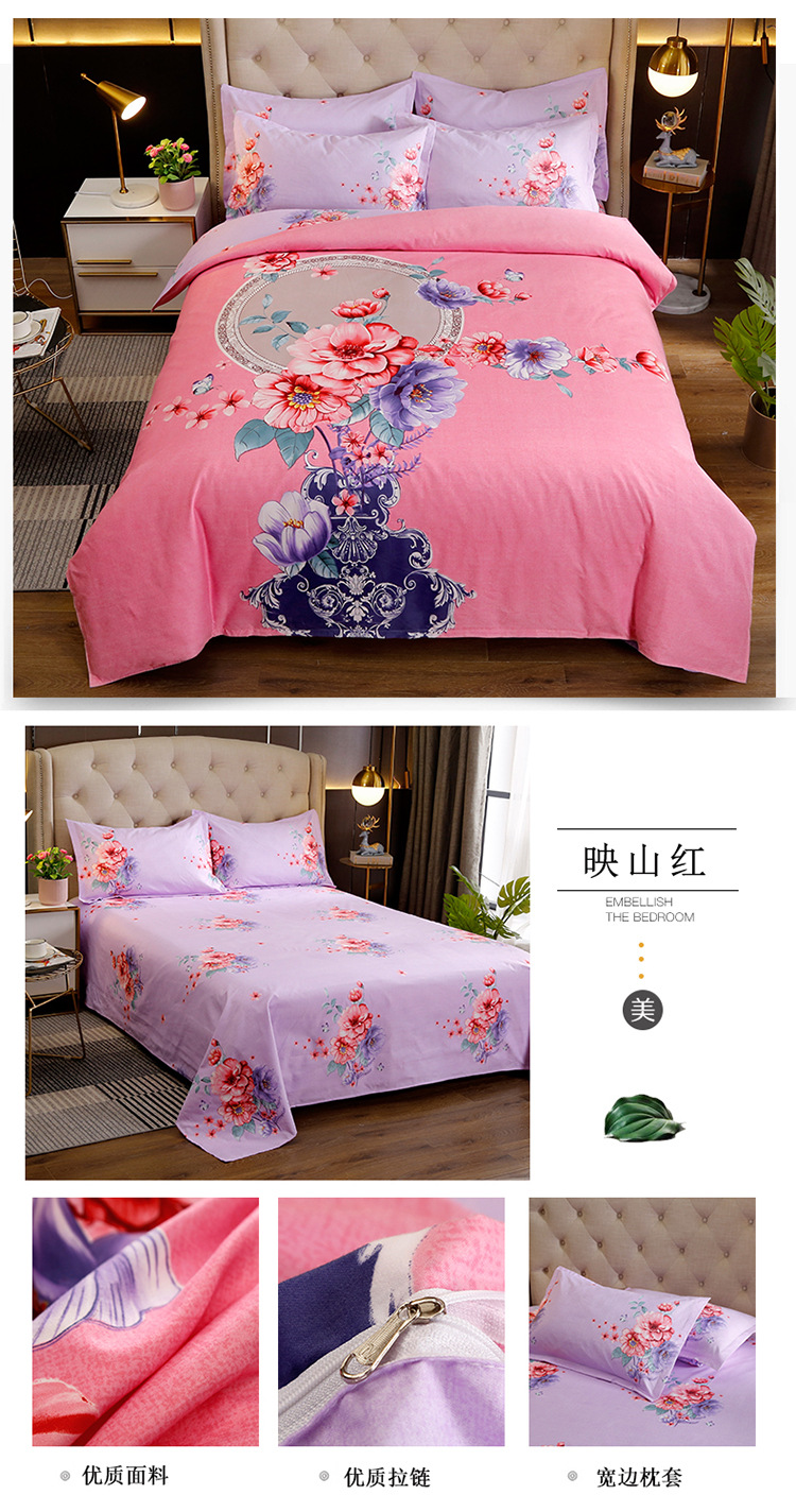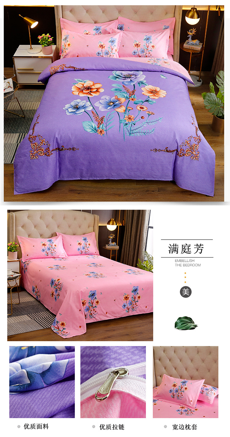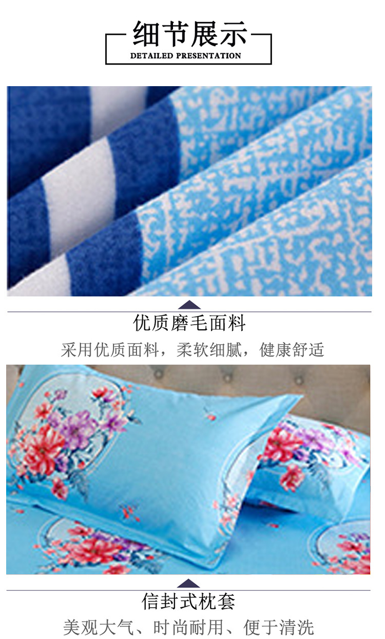 简约磨毛四件套被套床单四季通用床上用品单人宿舍床三件套大版花 FYJ-MDS1