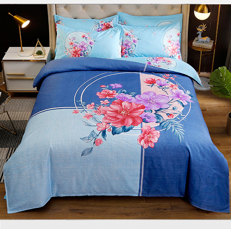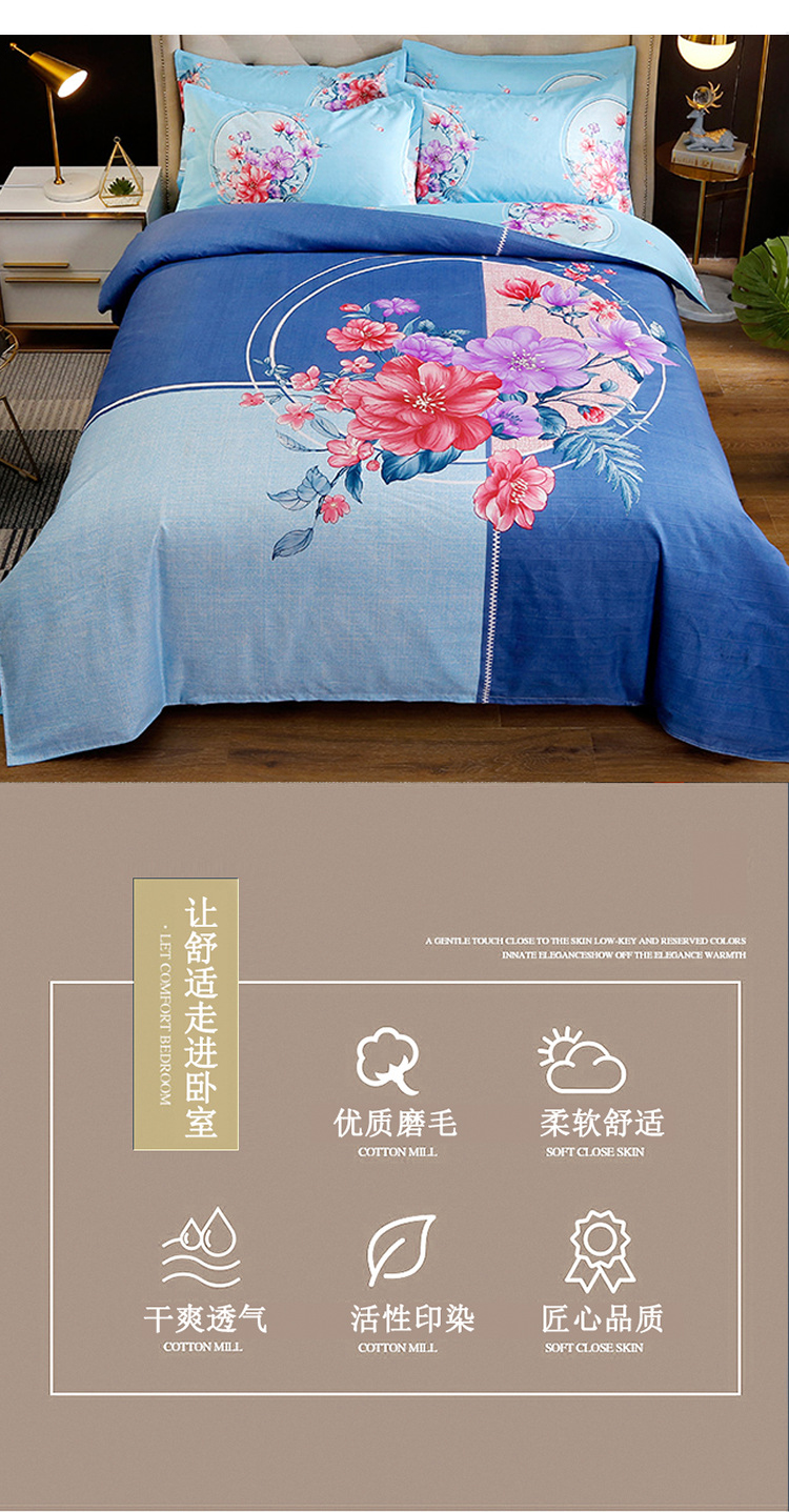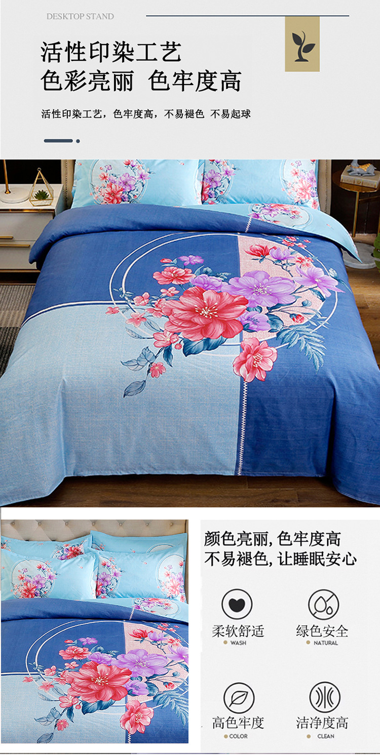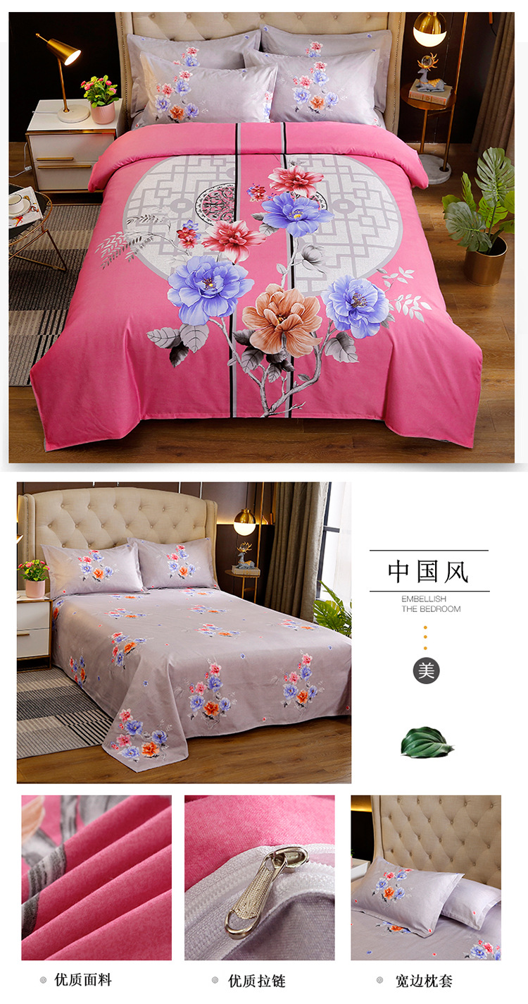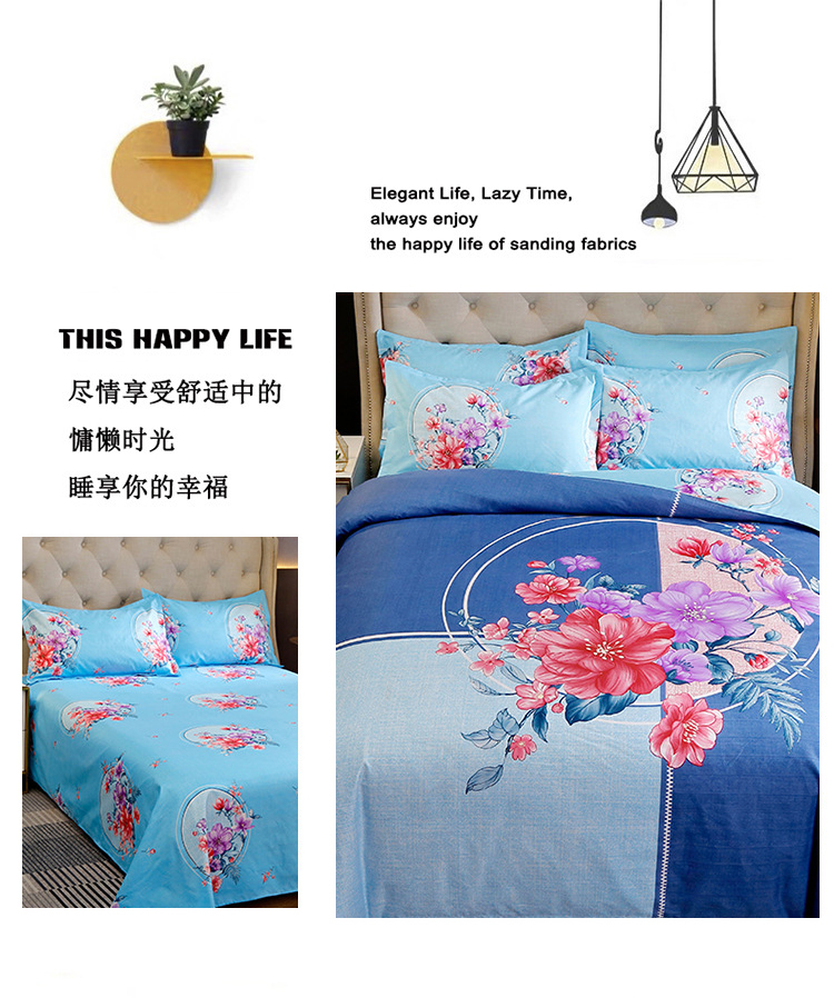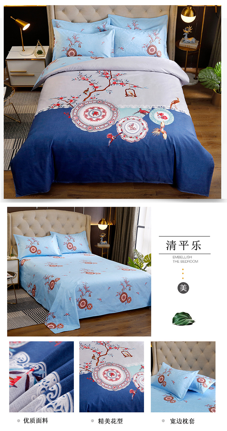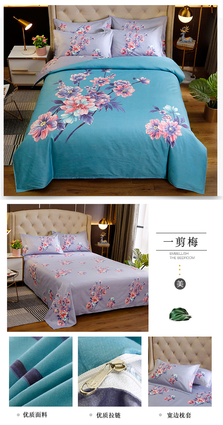 简约磨毛四件套被套床单四季通用床上用品单人宿舍床三件套大版花 FYJ-MDS1