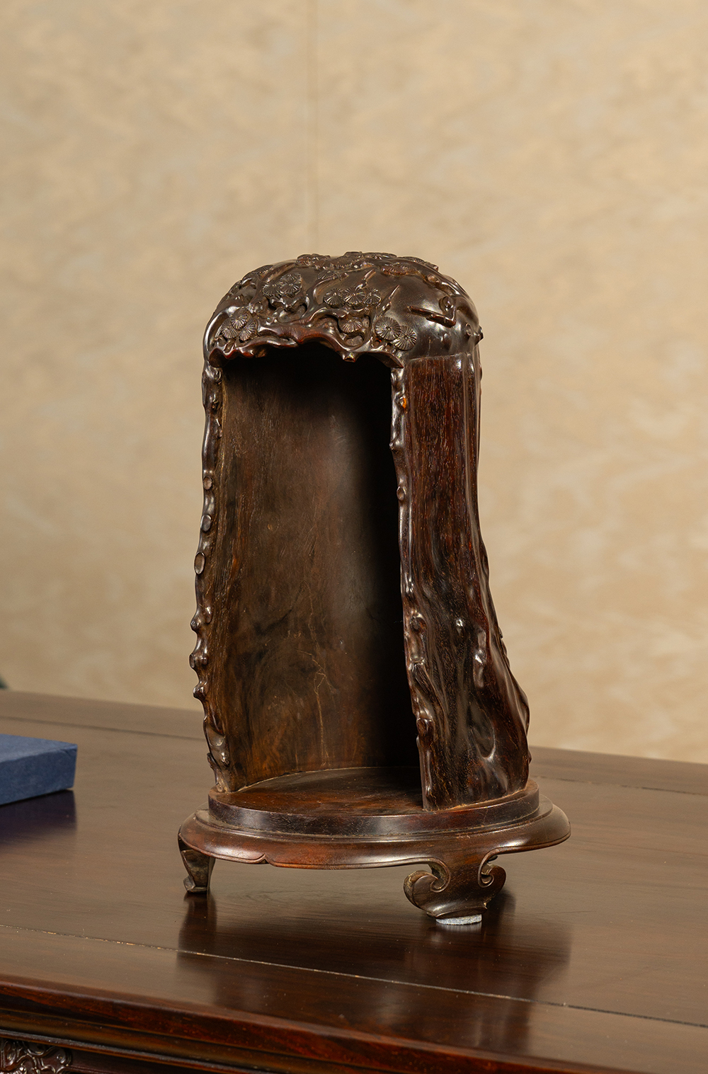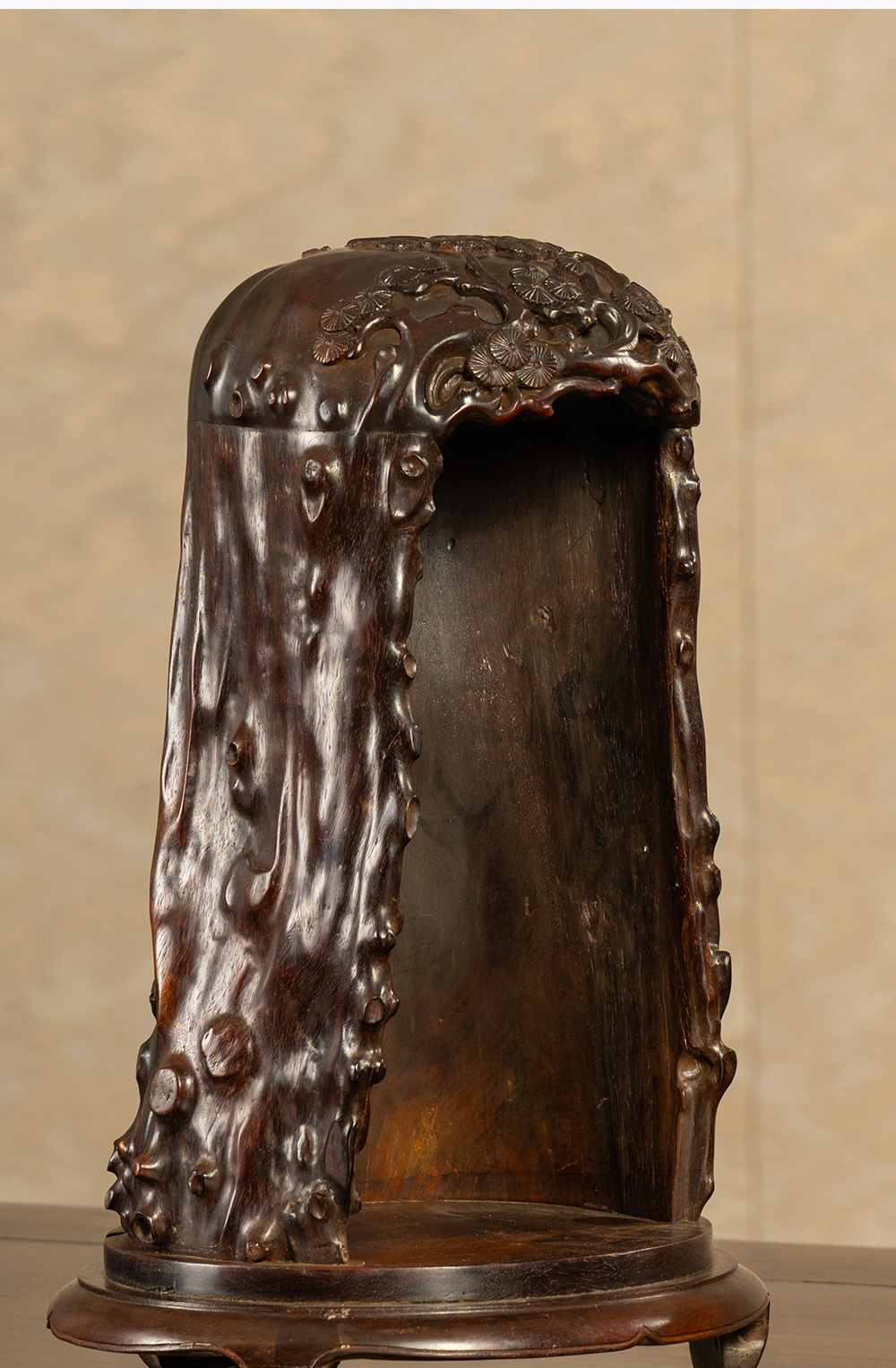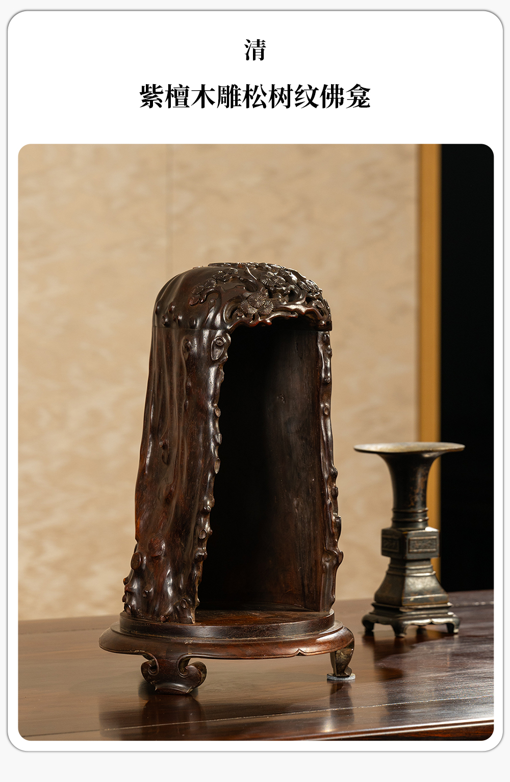清 紫檀木雕松树纹佛龛
