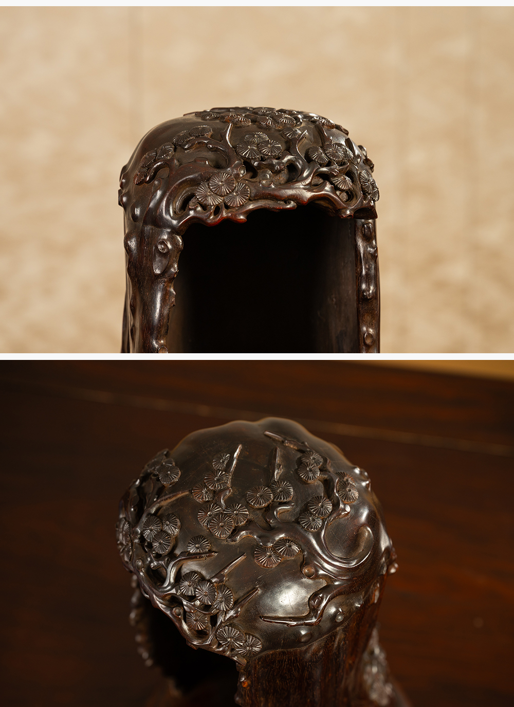 清 紫檀整挖荷叶纹水洗