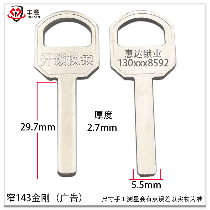 佛山市惠千达锁业有限公司 ,位于著名的中国古城佛山南海,本公司历史悠久,信誉卓著,素以用料考研,工艺先进,质量上乘,知名度高。主要经营:各种钥匙胚自有品牌,钥匙机,锁类,等等.......