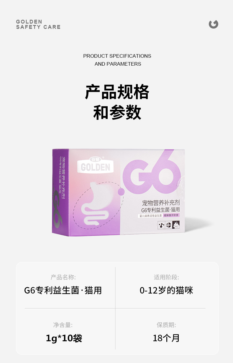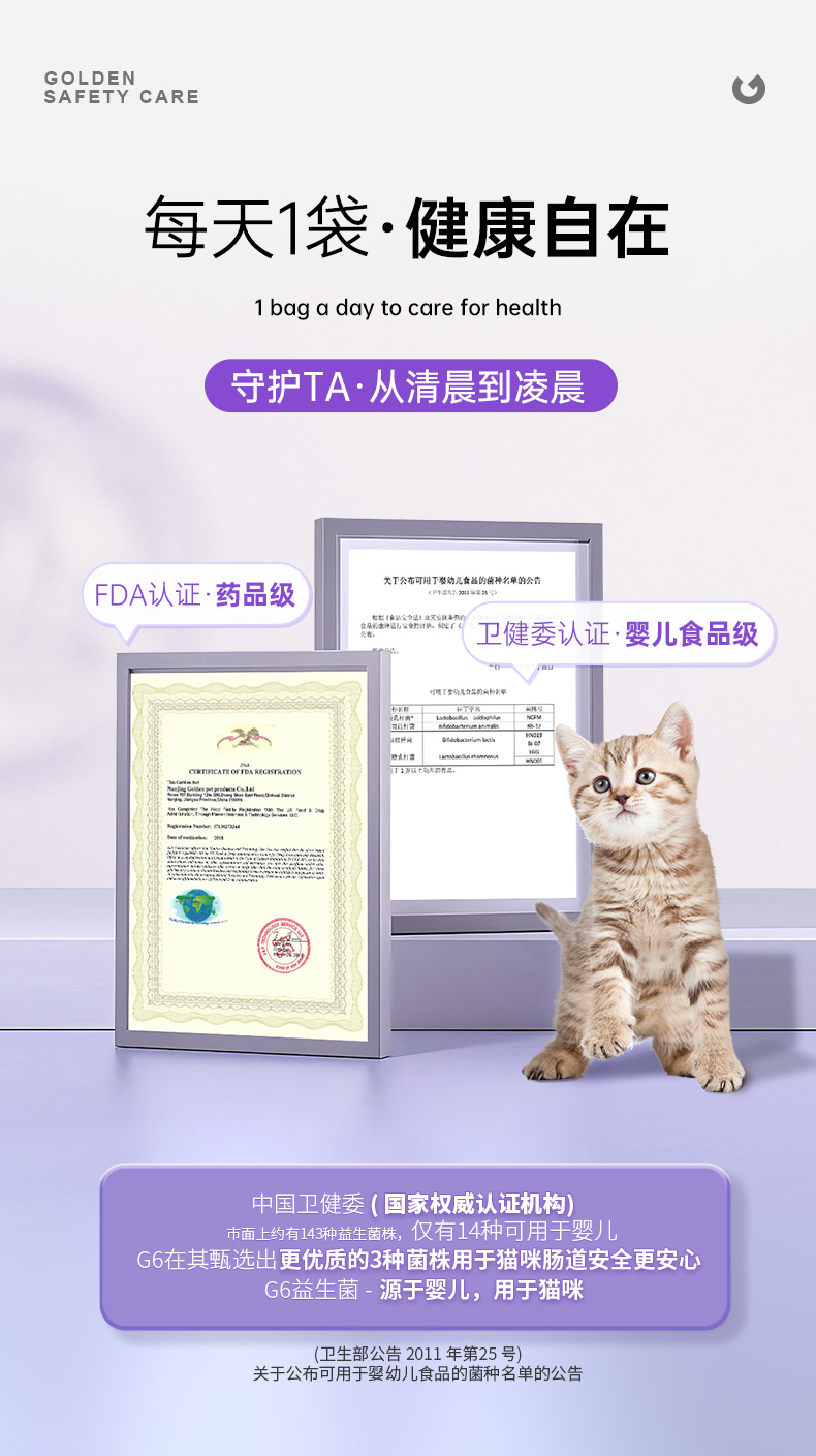 【买就送秘鲁小鱼颗粒*2袋】G6益生菌粉剂(猫用)1g*10袋