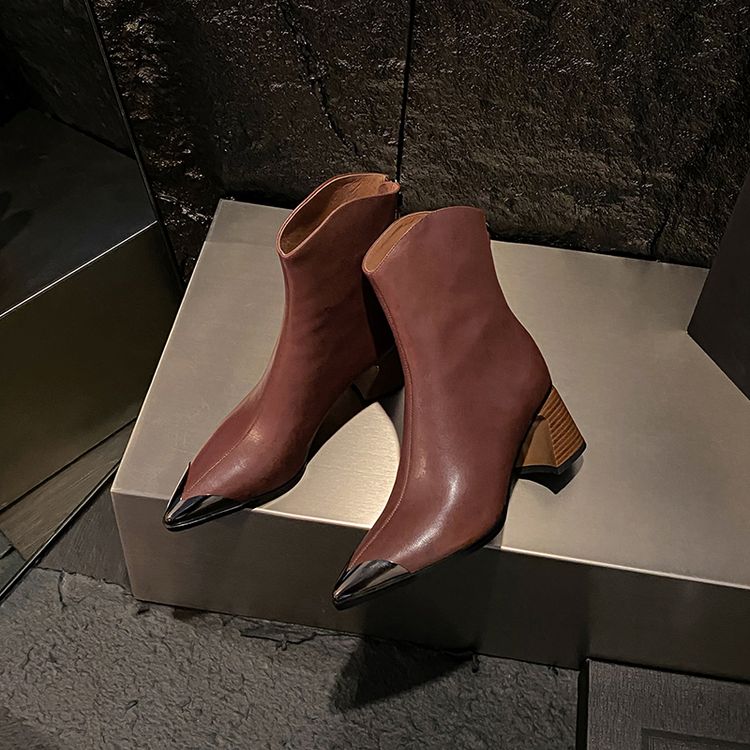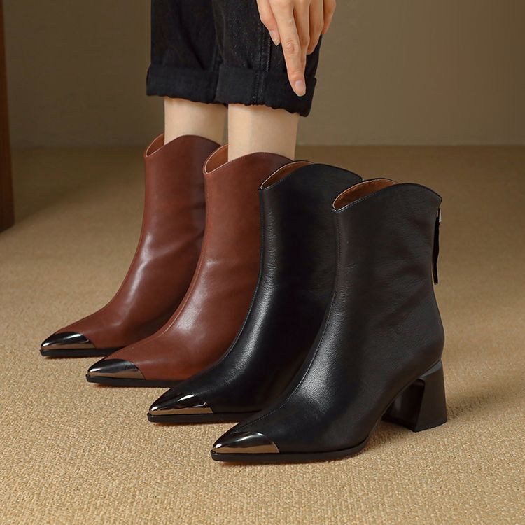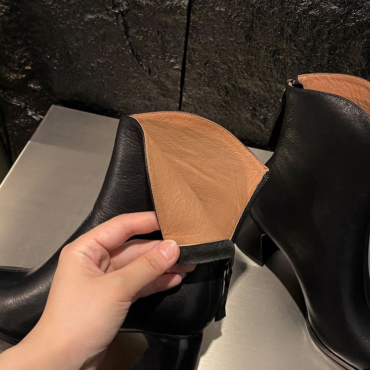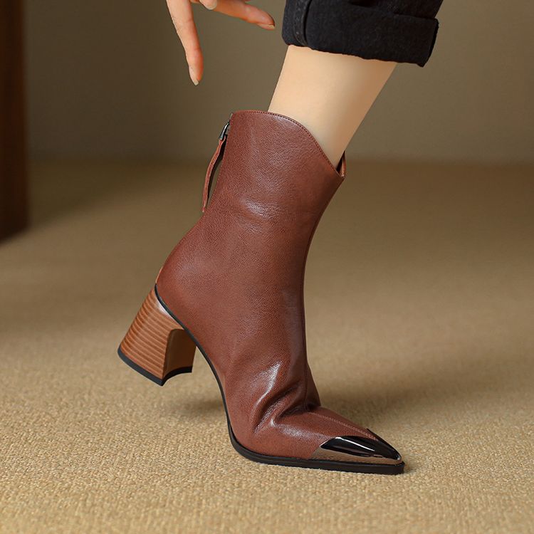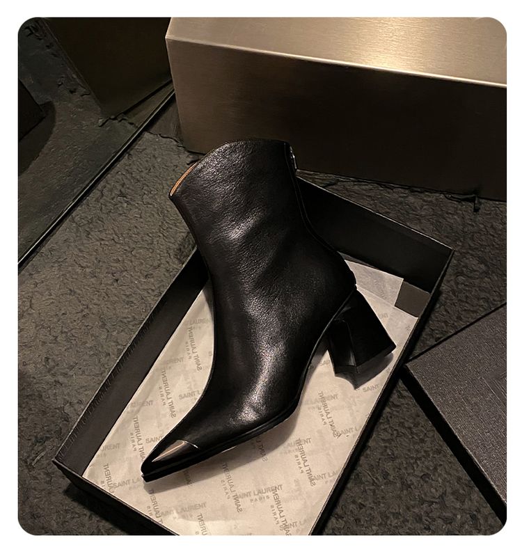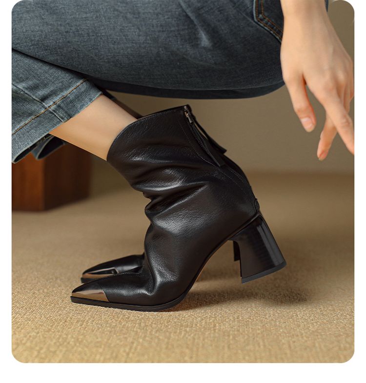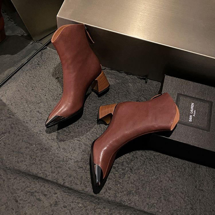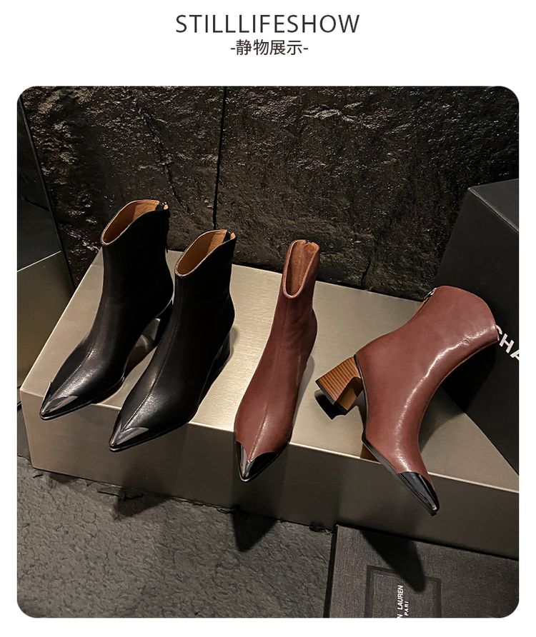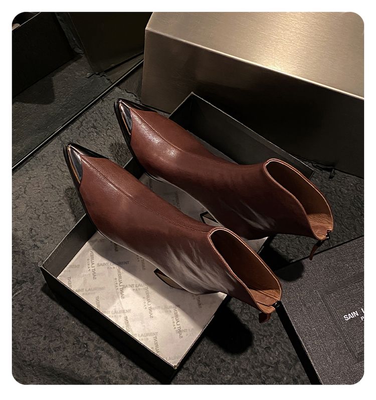 【预售5天】欧美复古风金属尖头气质短靴秋冬季新款后拉链时尚粗跟骑士皮靴KNTNX&KT3025-1