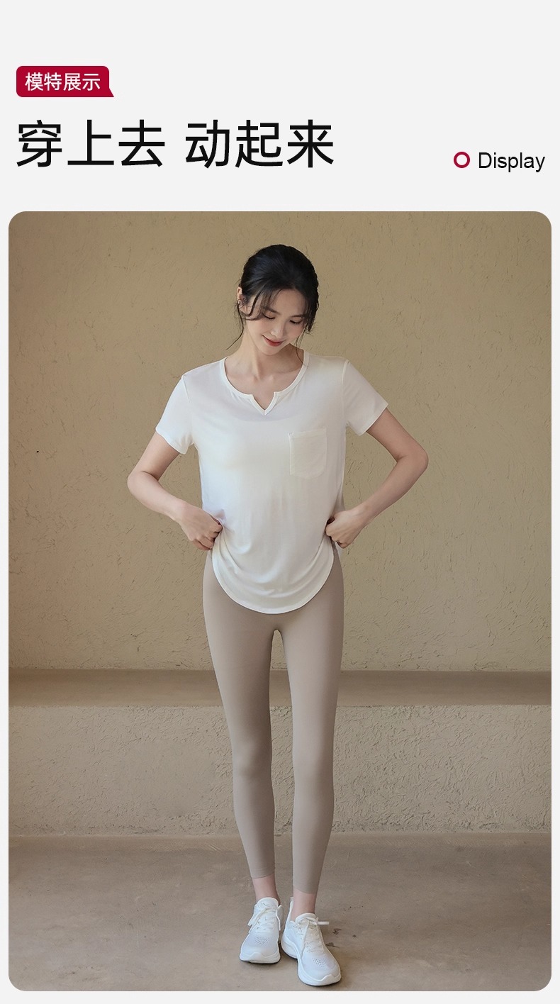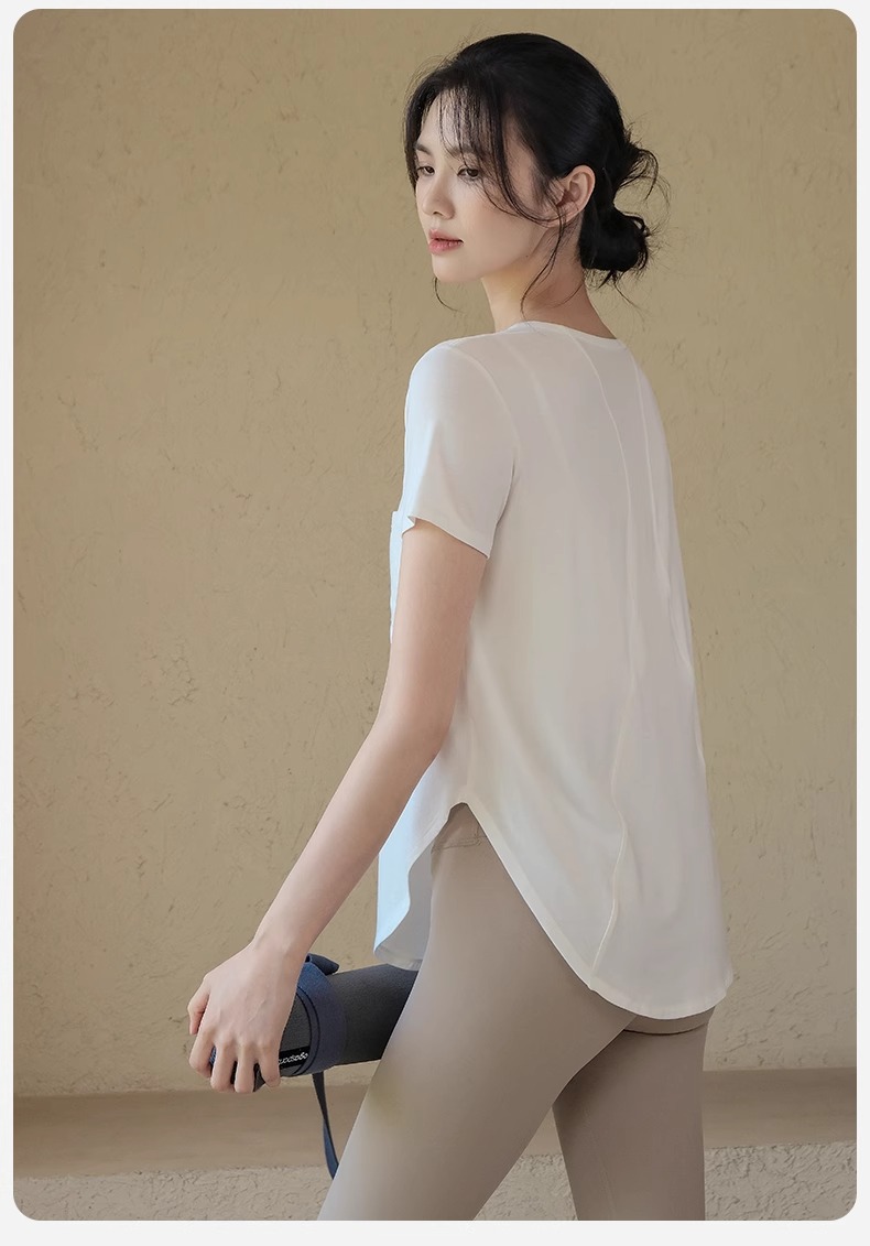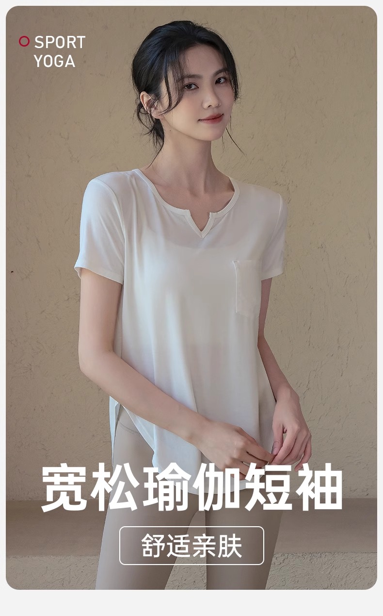 跃牌【周游世界系列】新款瑜伽服女宽松透气上衣跑步训练健身服T恤桑蚕丝运动短袖TP0873