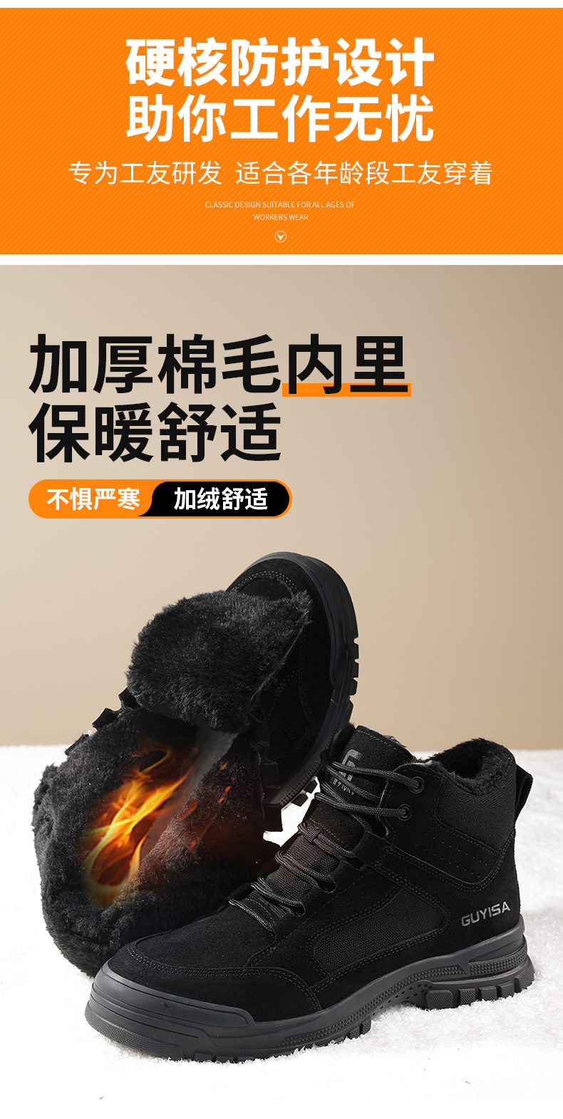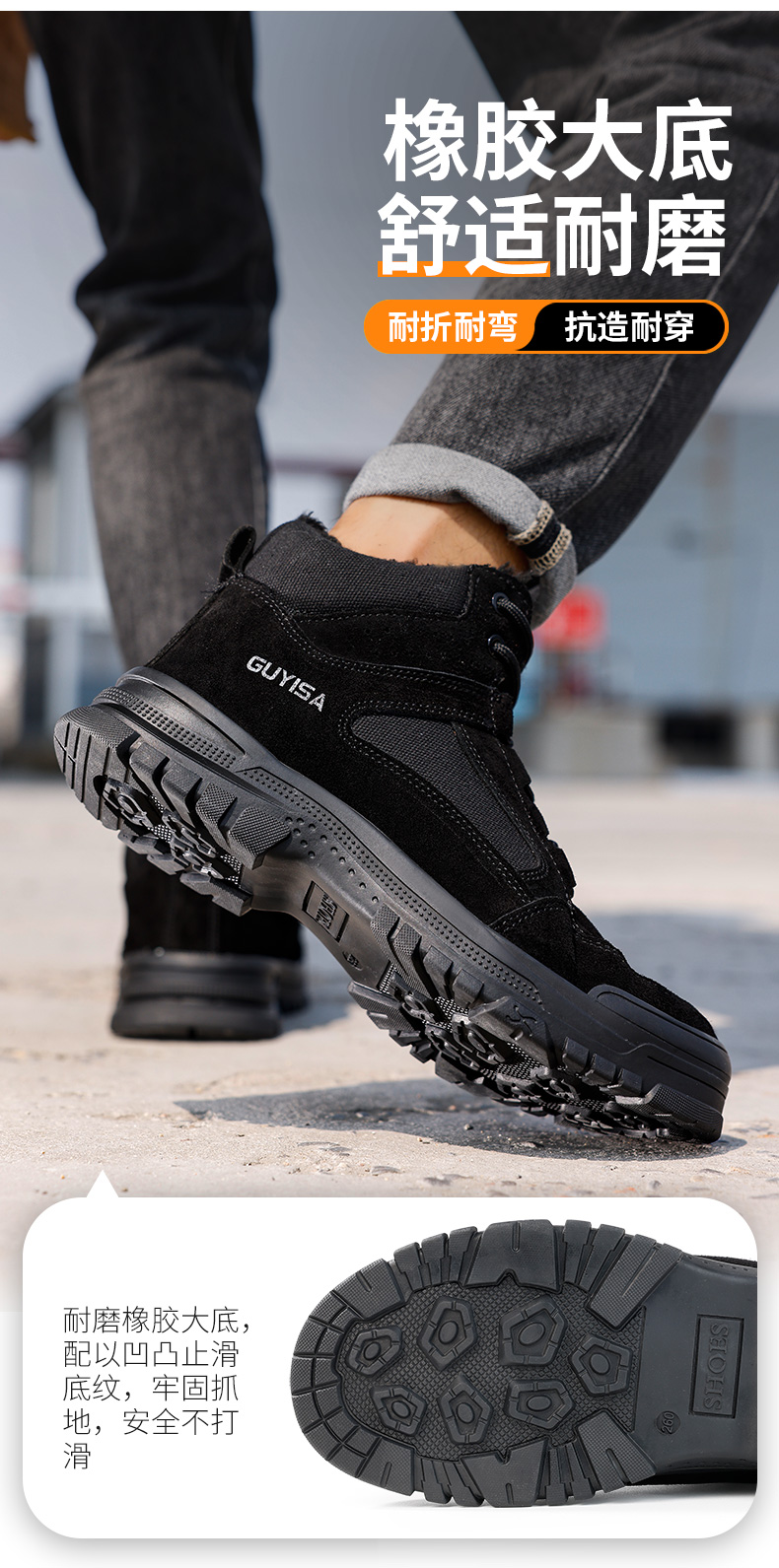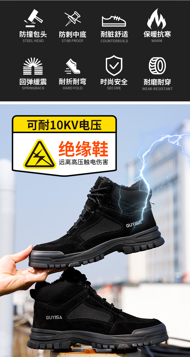 GUYISA 劳保鞋男防砸防刺穿绝缘10KV塑包头加绒保暖冬季款高帮安全鞋