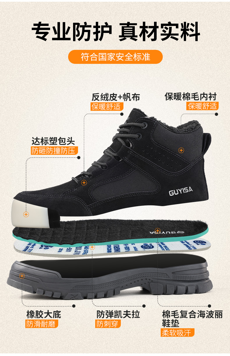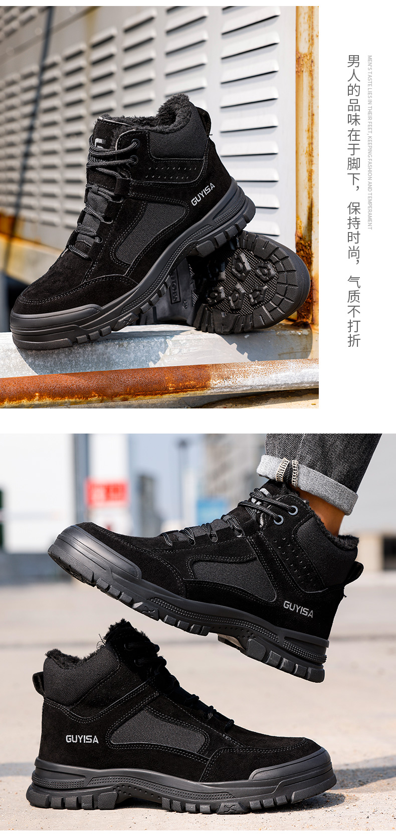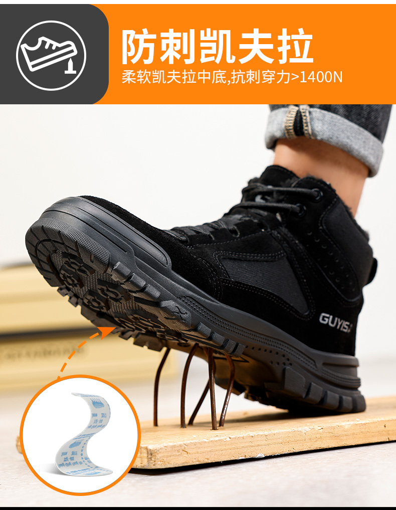 GUYISA 劳保鞋男防砸防刺穿绝缘10KV塑包头加绒保暖冬季款高帮安全鞋