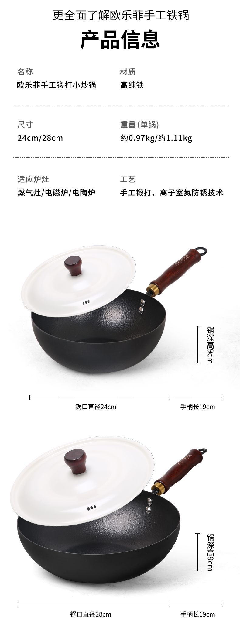 【欧乐菲(OLOFE)】老关东白月光辅食章丘手工铁锅OLOZQ-24A1