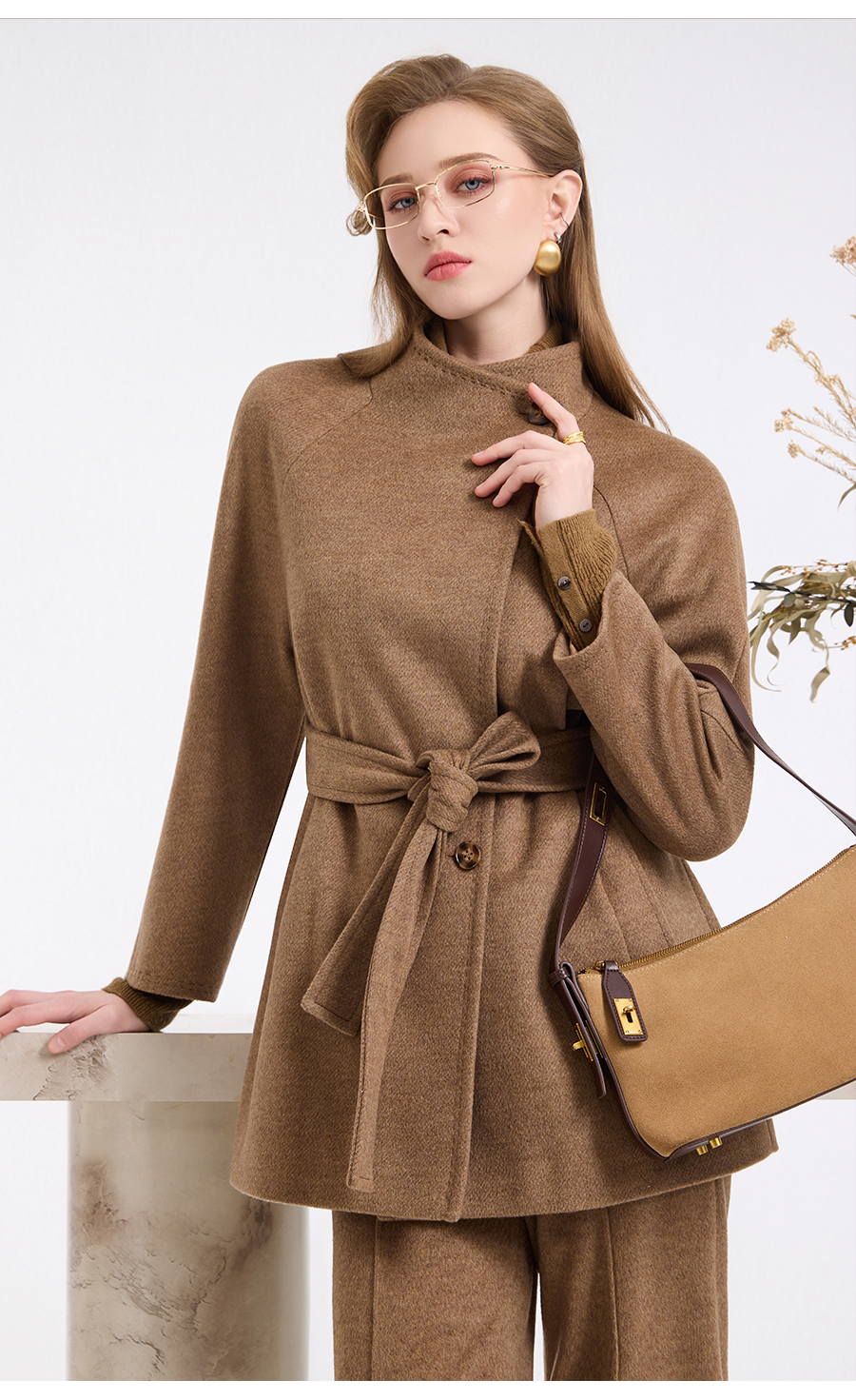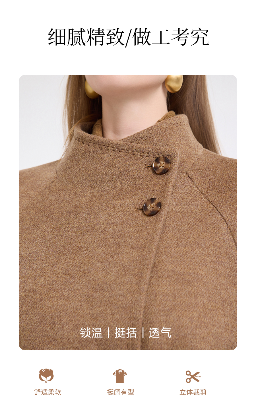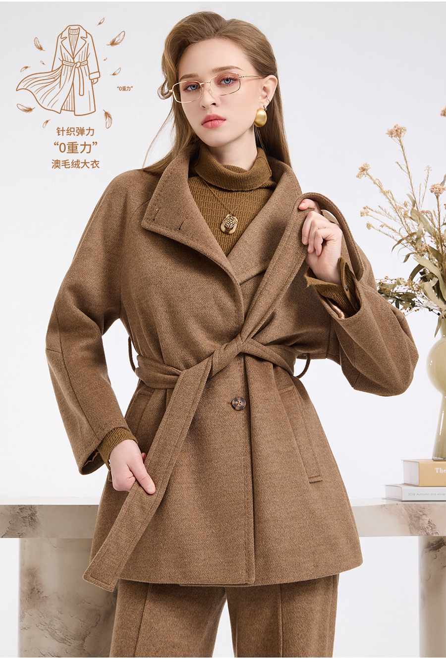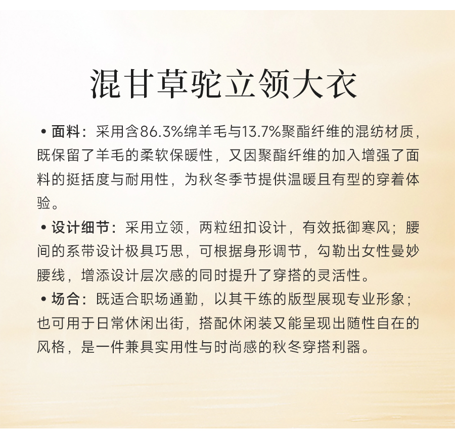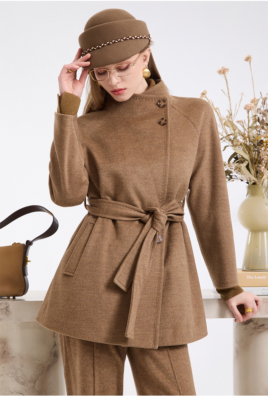 乔万尼新品冬装收腰复古斜门襟设计感羊毛大衣ED4A751
