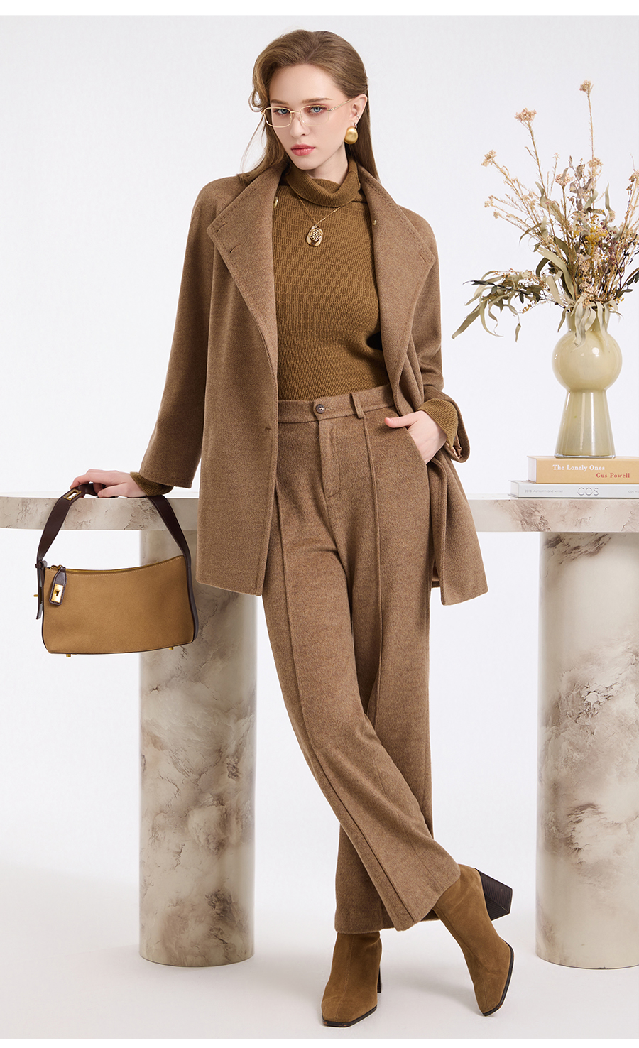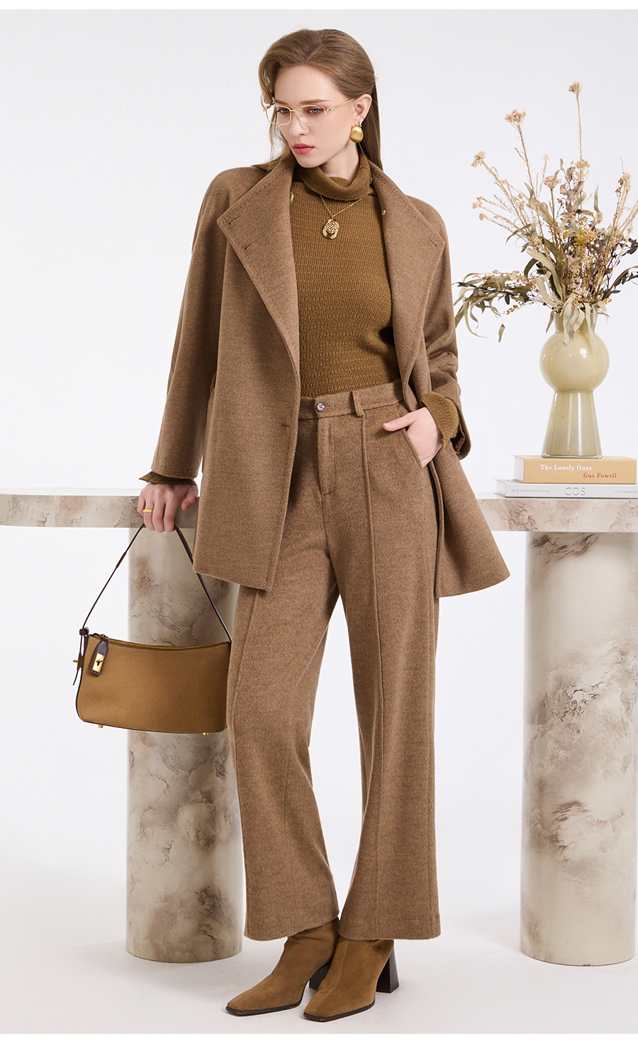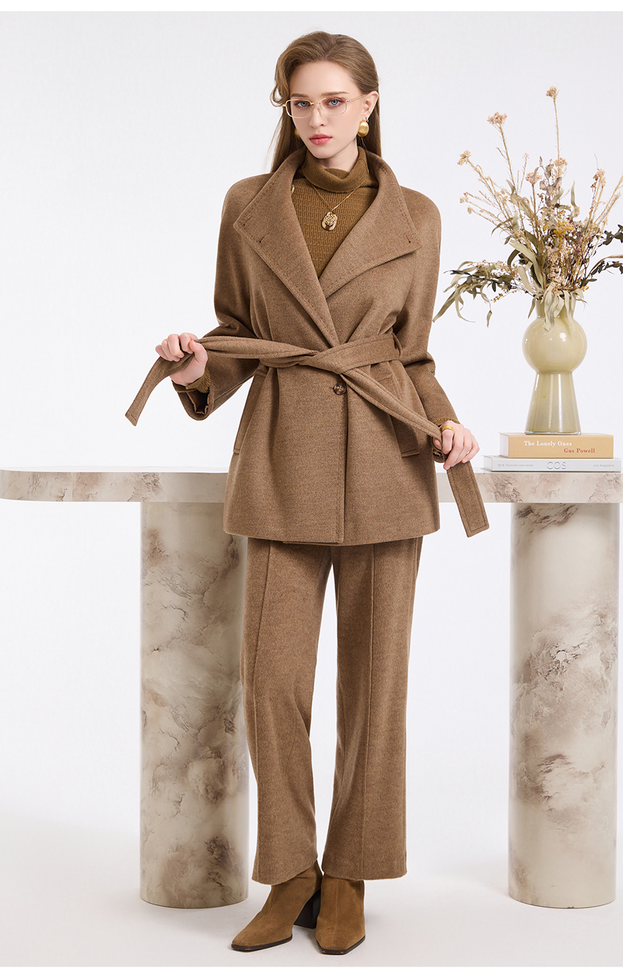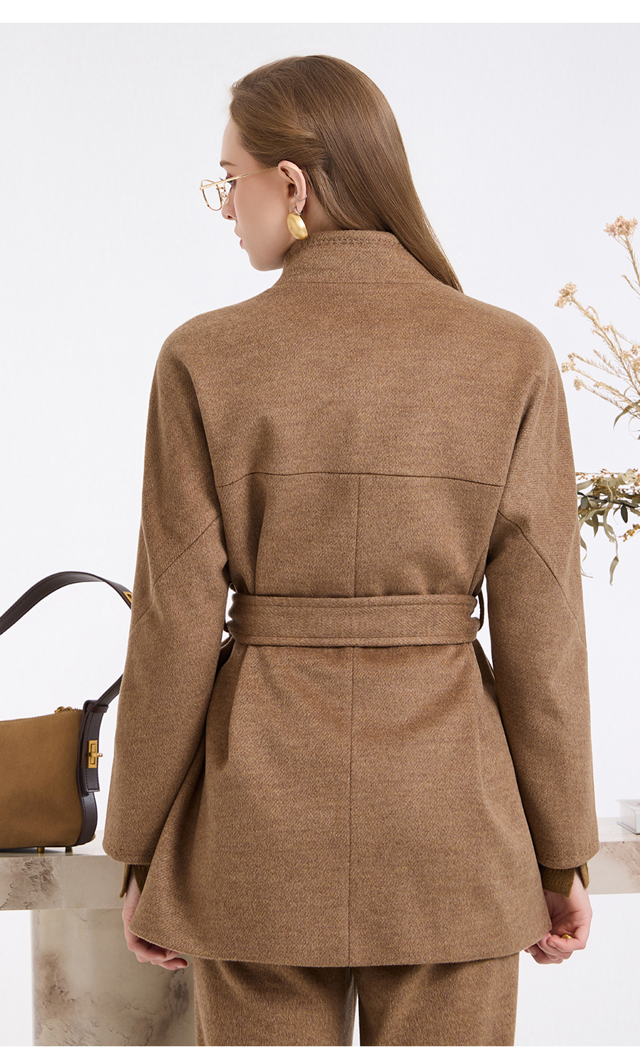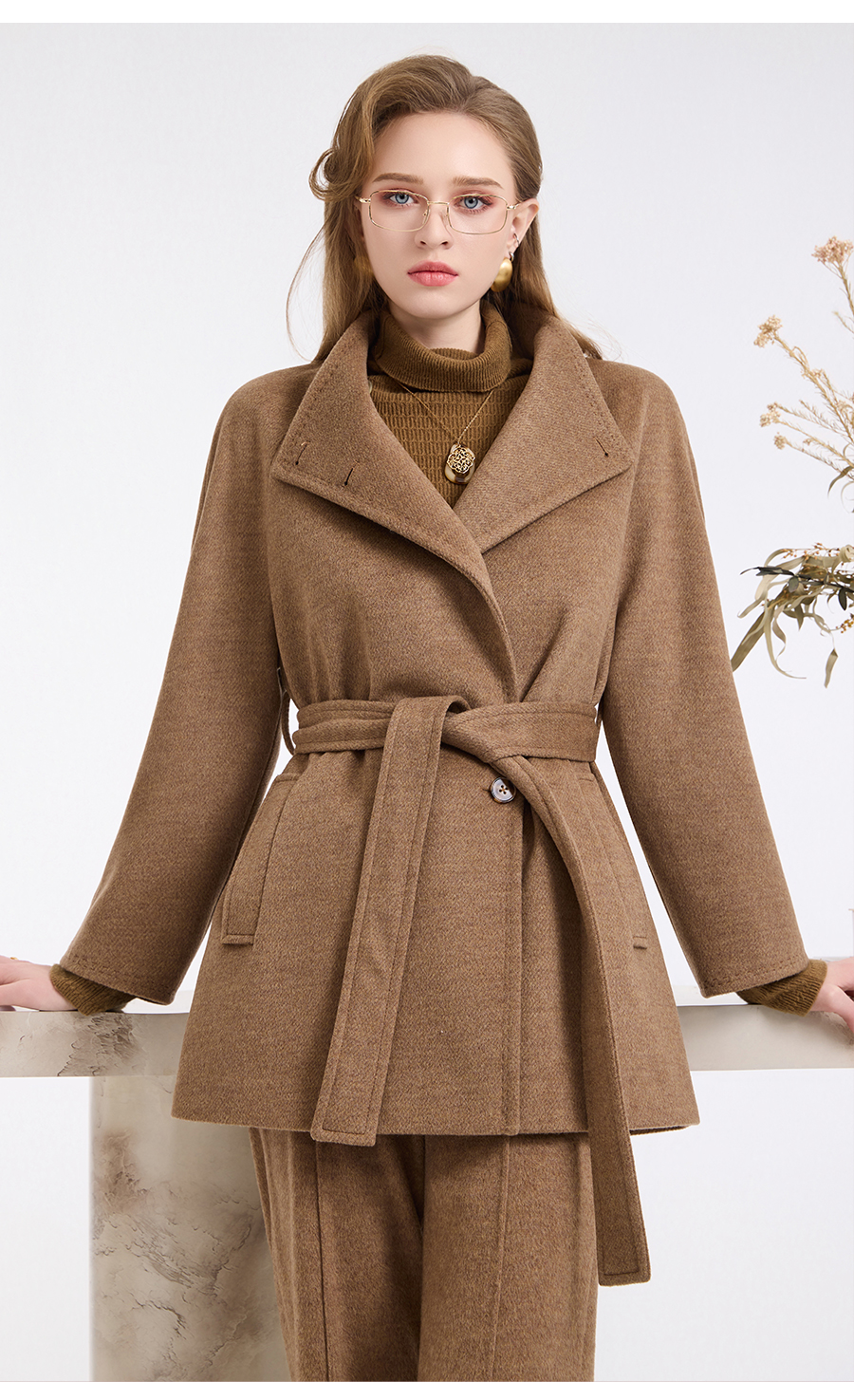 乔万尼新品冬装收腰复古斜门襟设计感羊毛大衣ED4A751
