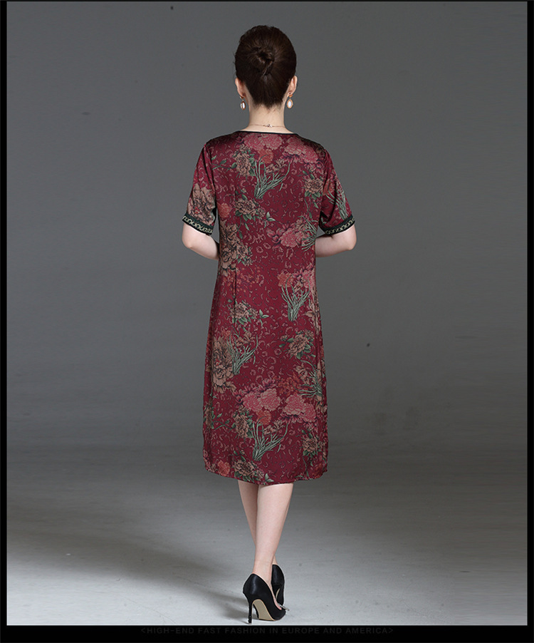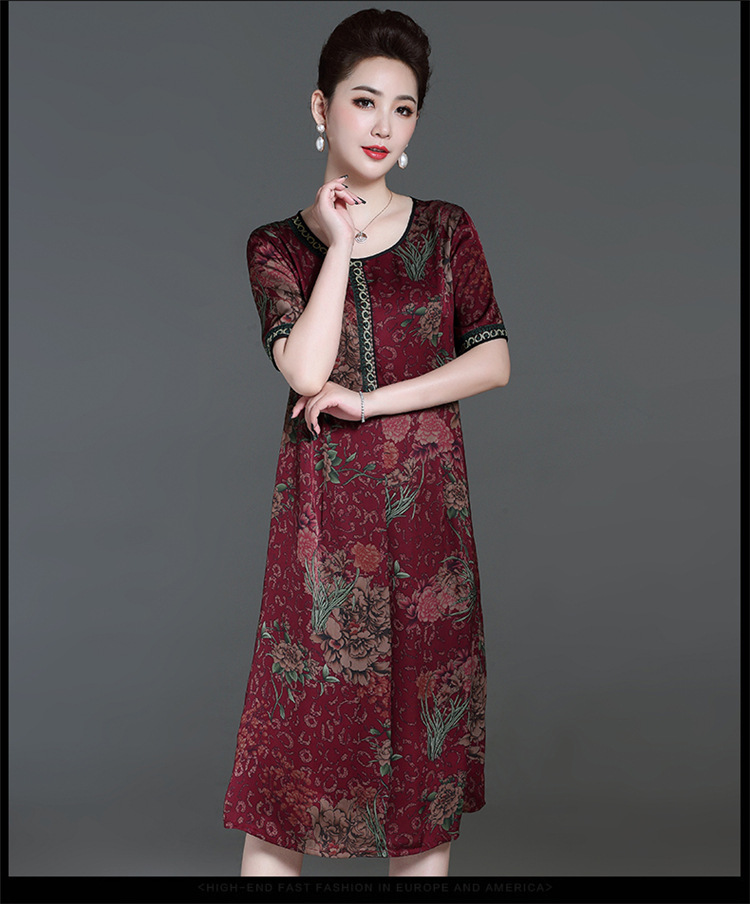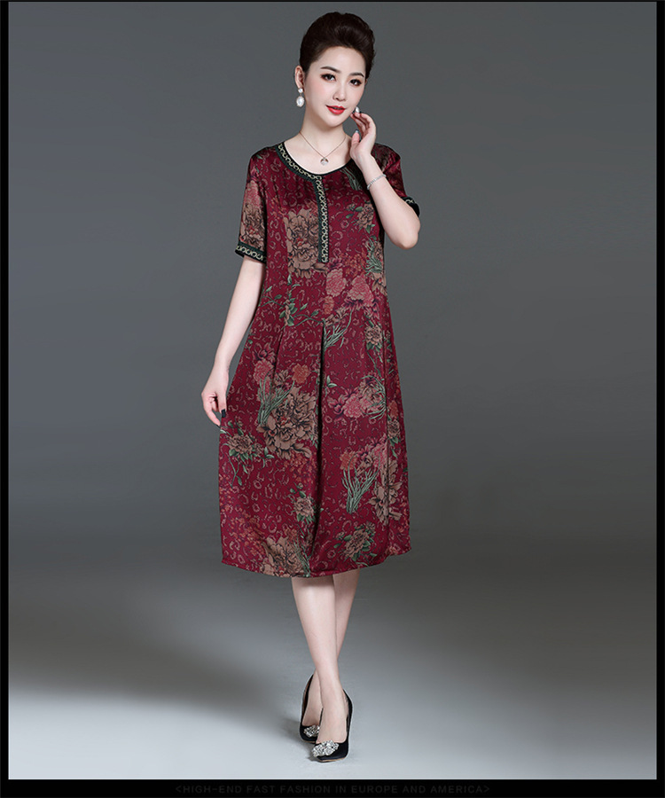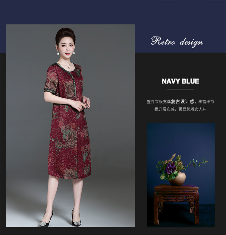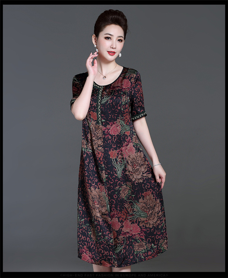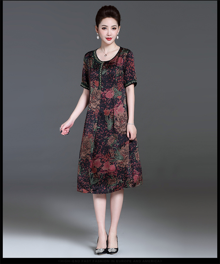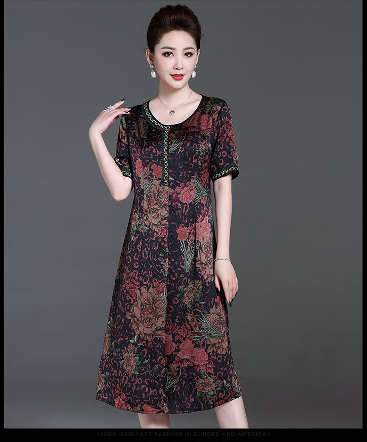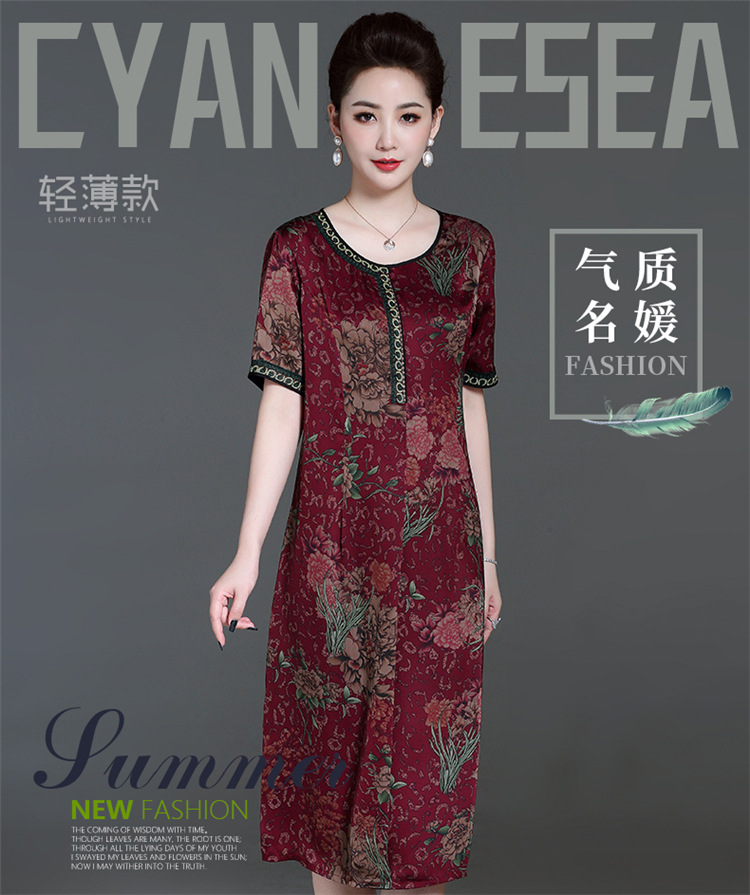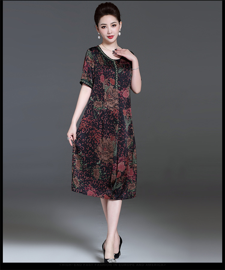 夏季新款印花短袖圆领宽松显瘦时尚潮流女士透气仿真丝连衣裙EE-EB2039F6