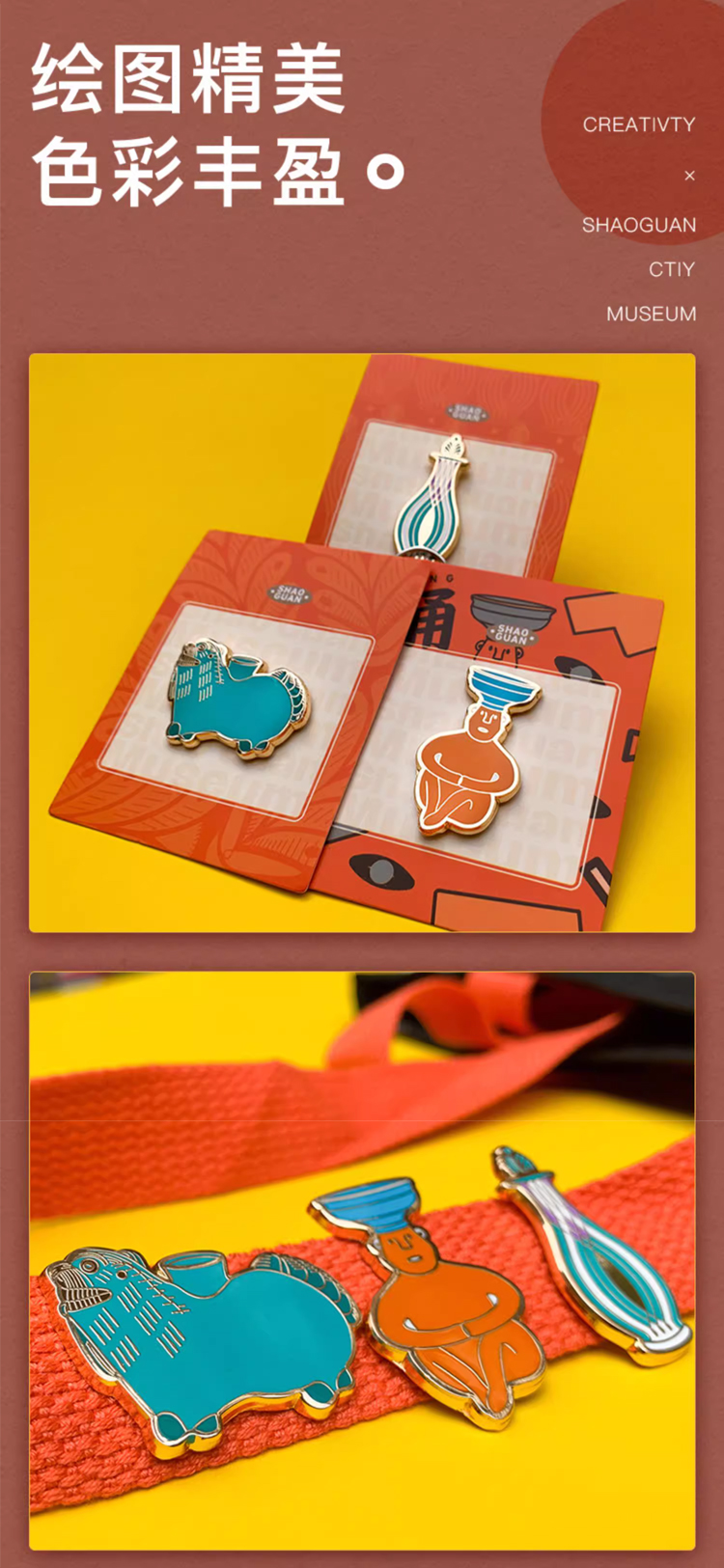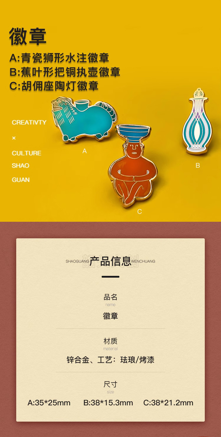 【韶关市博物馆文创】综合元素国潮徽章可爱创意个性金属珐琅胸针配饰饰品