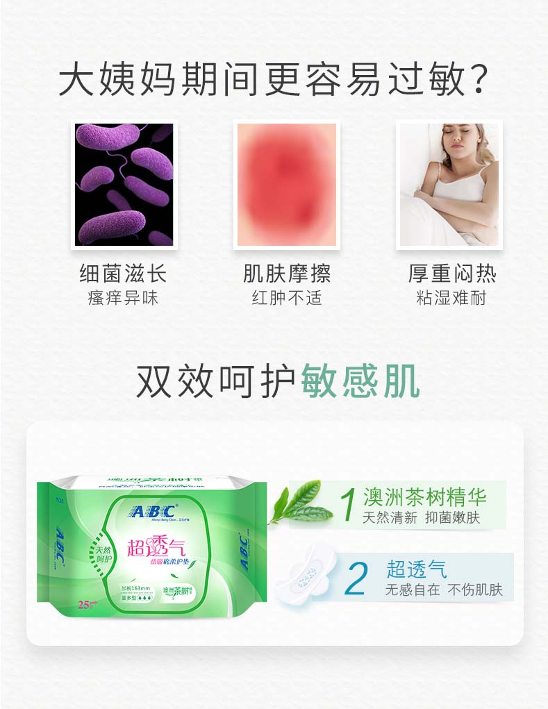 (直播)ABC护垫茶树精华日用小卫生巾棉柔贴身少女姨妈巾超透气防异味N25