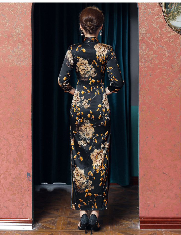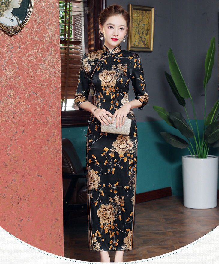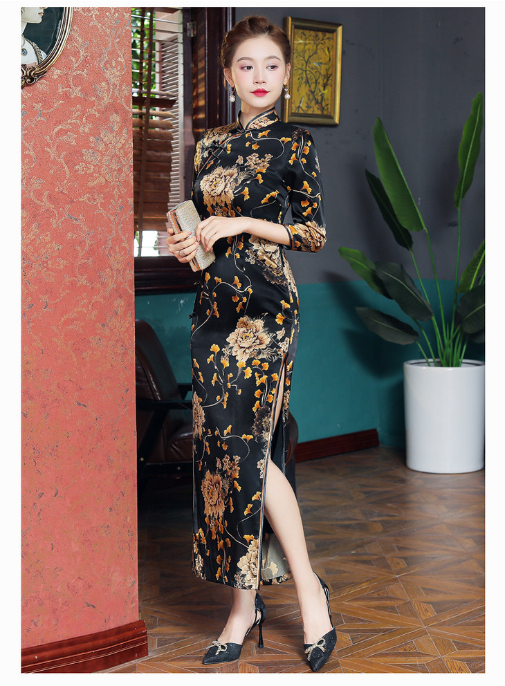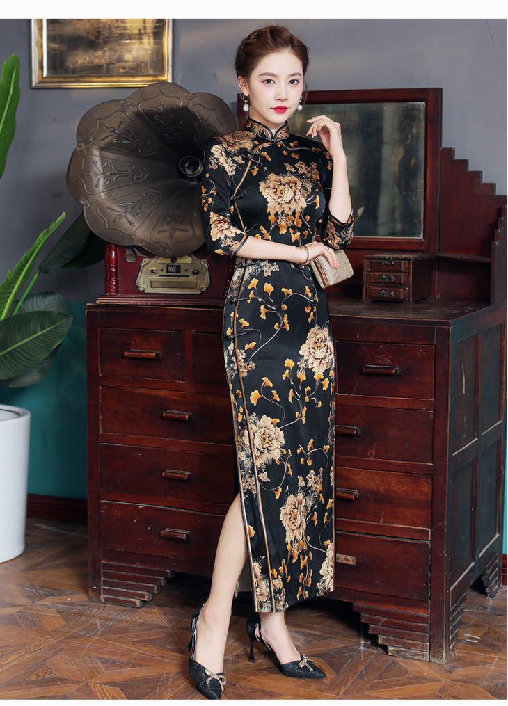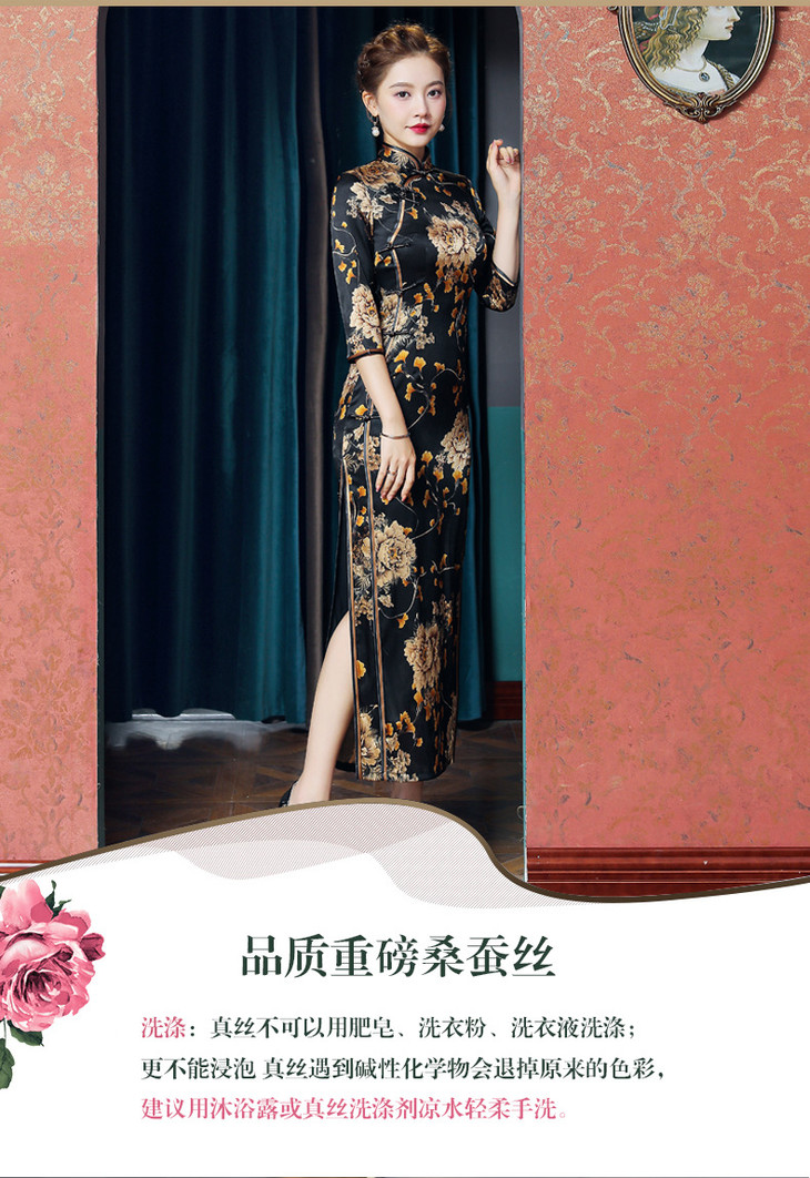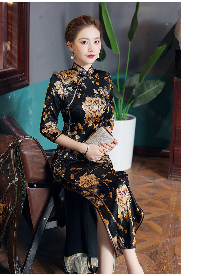 WXG2170复古民国风老上海短袖优雅气质长款连衣裙
