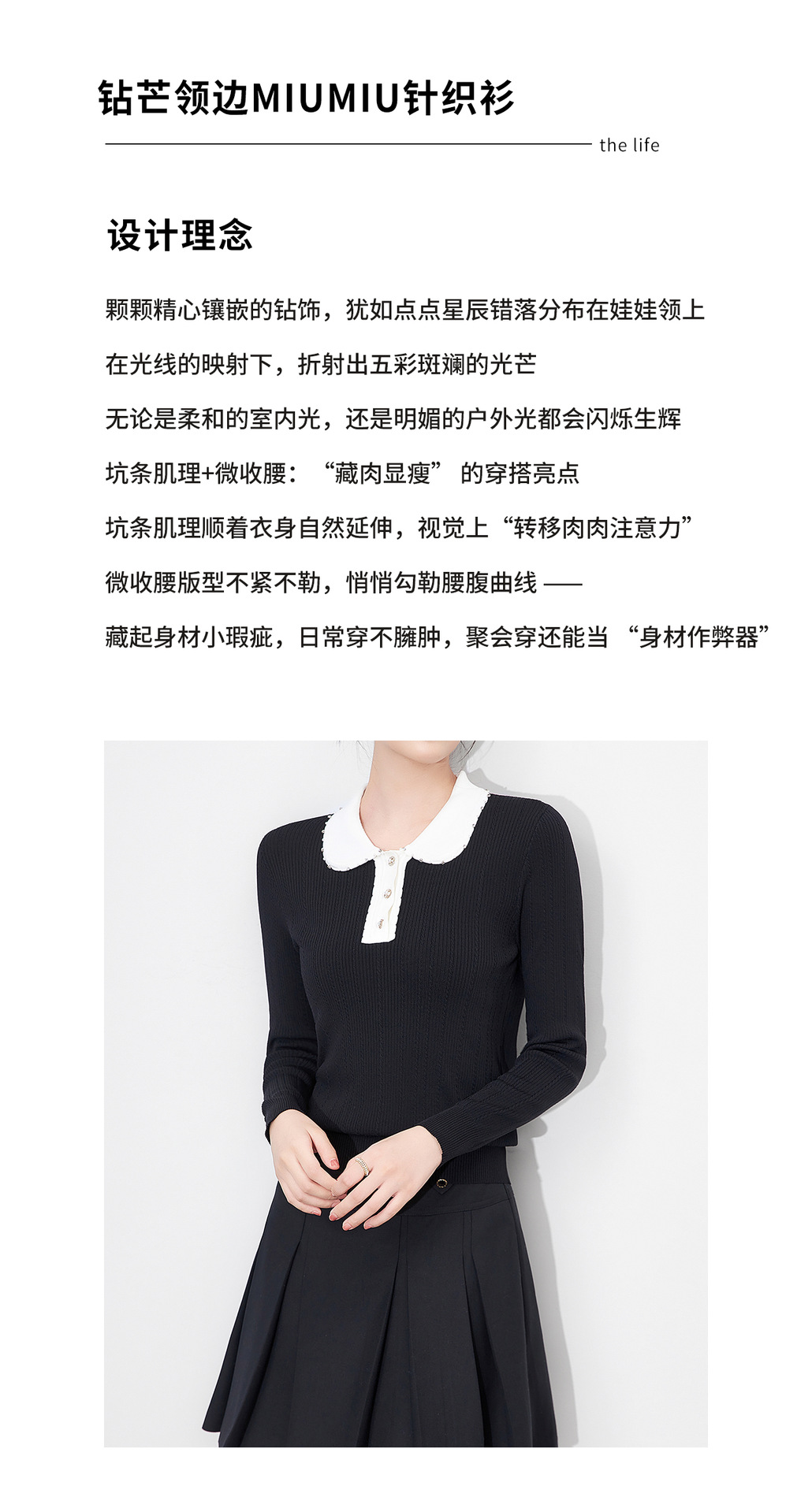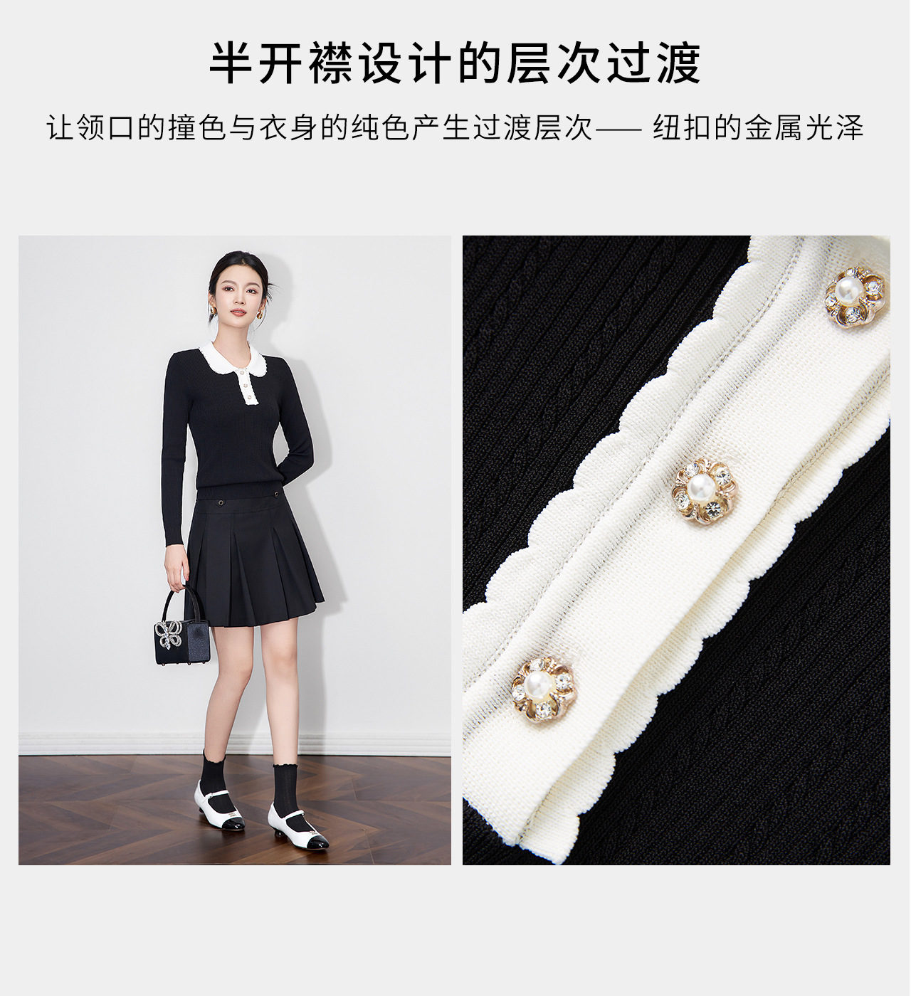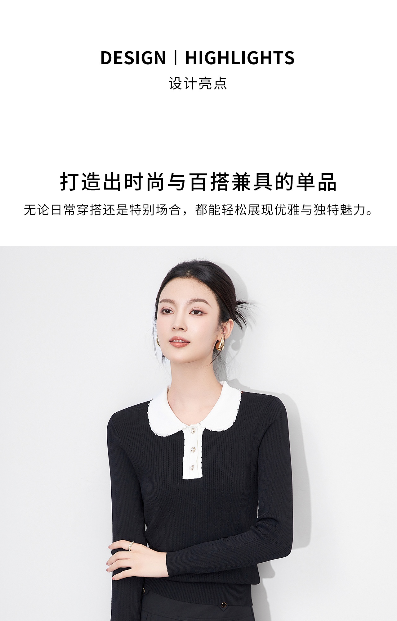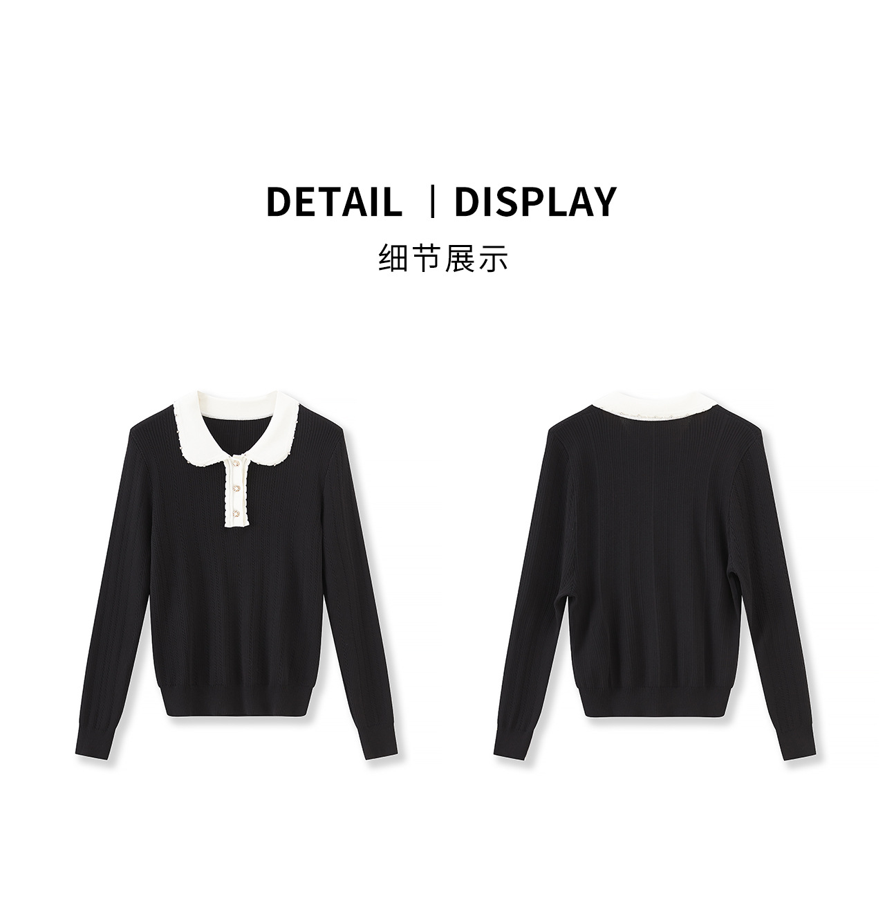 「高货wl」全新升级【铂金会员238/天猫319/差价81】(65614)洛诗琳法式气质绞花针织衫2025秋季撞色娃娃领减龄毛衫女wl65614