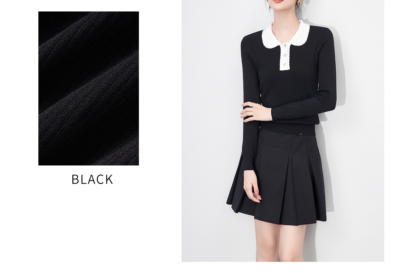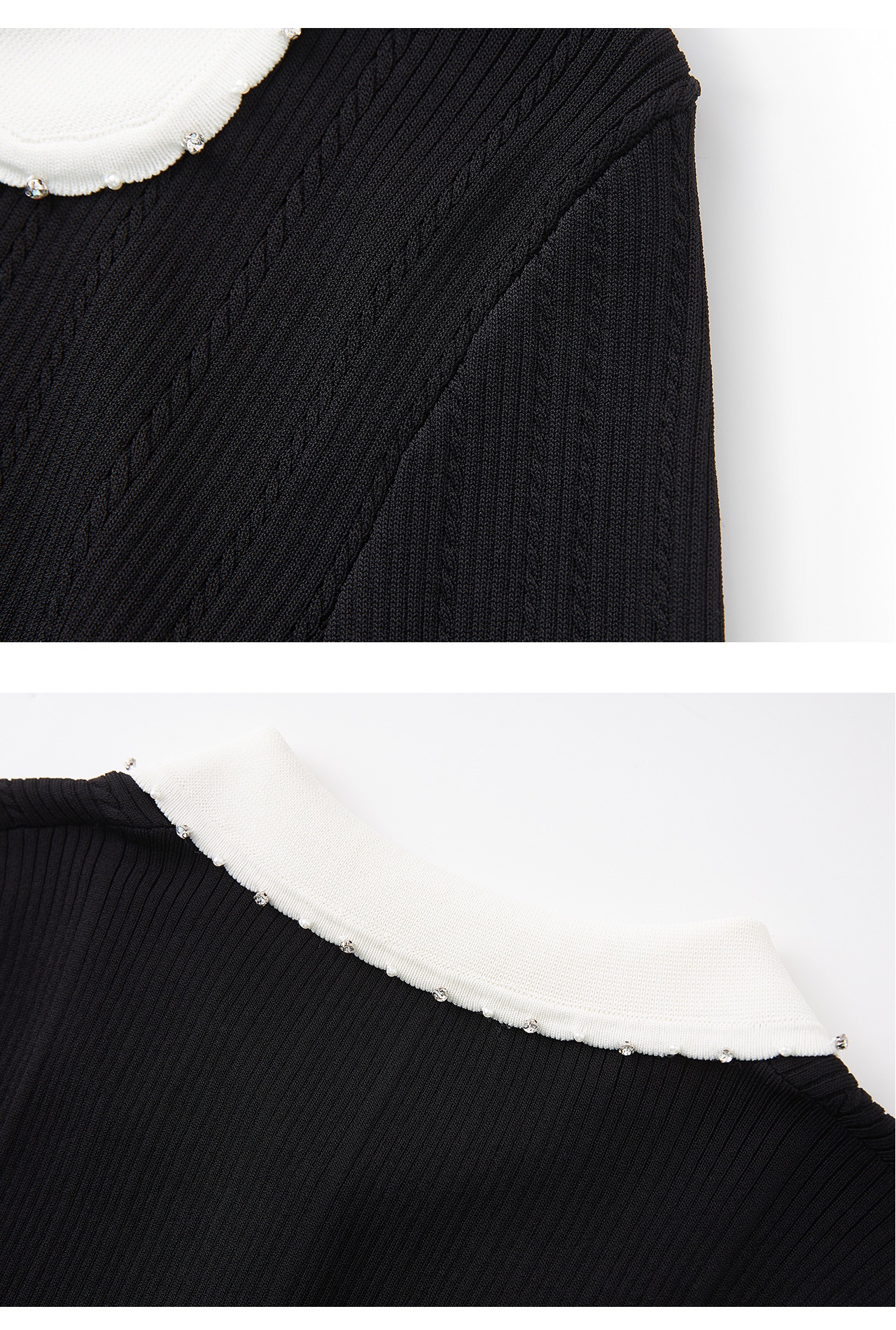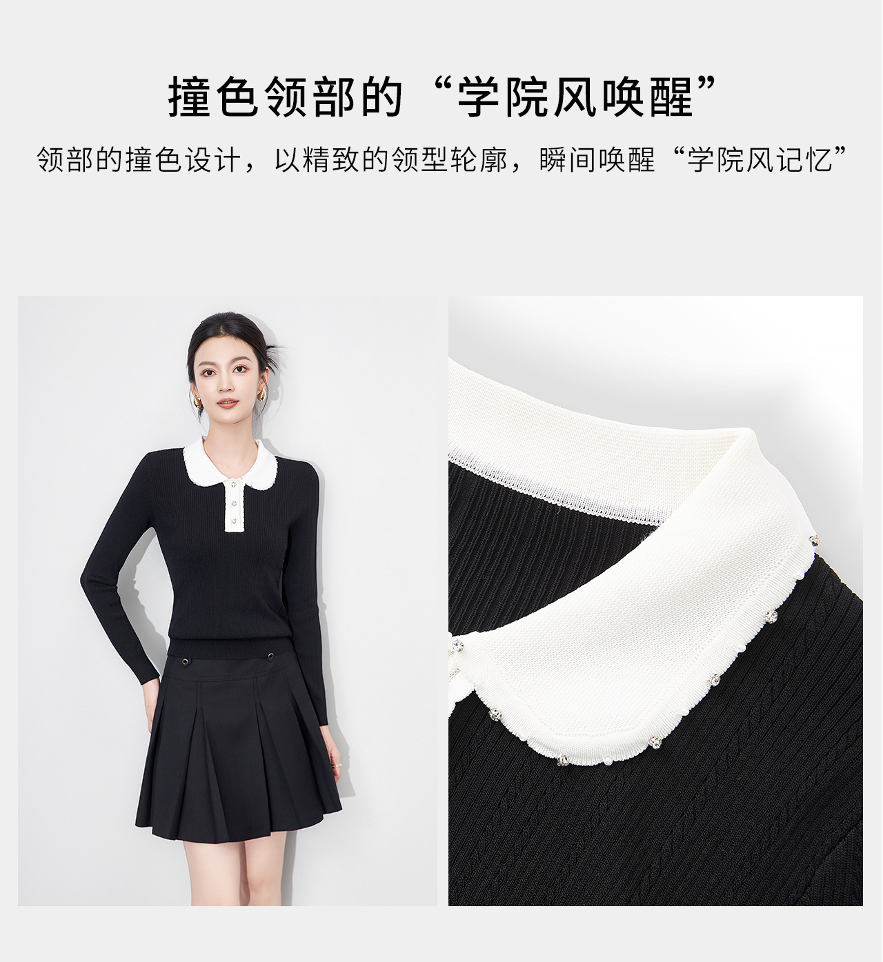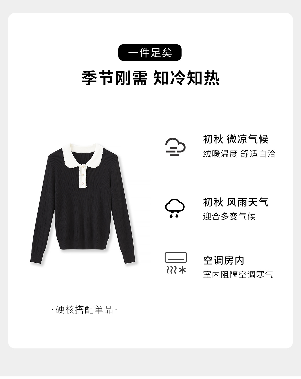 「高货wl」全新升级【铂金会员238/天猫319/差价81】(65614)洛诗琳法式气质绞花针织衫2025秋季撞色娃娃领减龄毛衫女wl65614