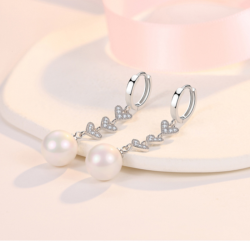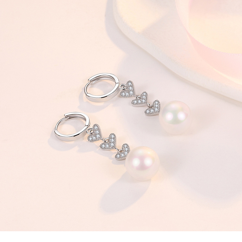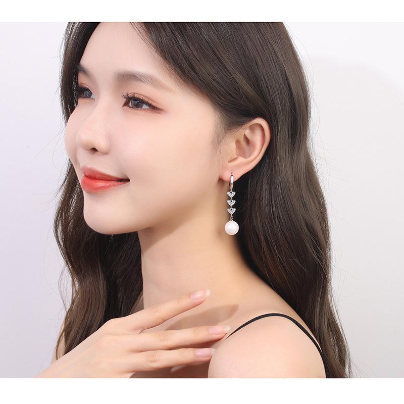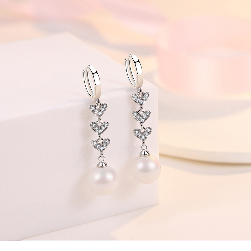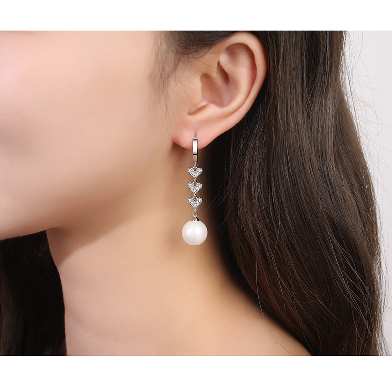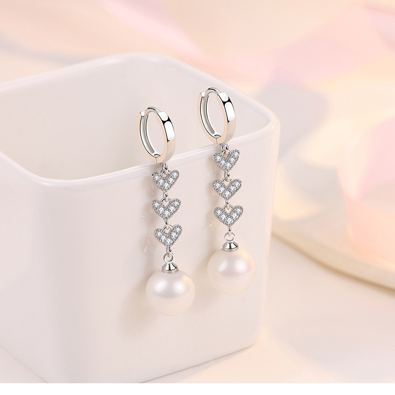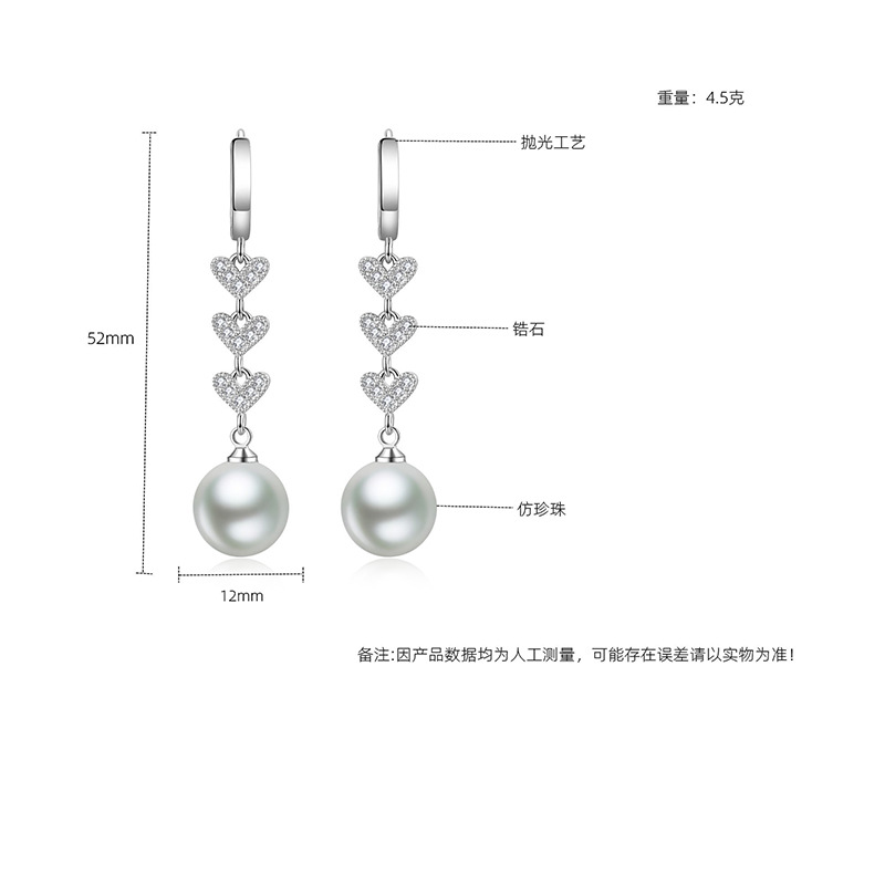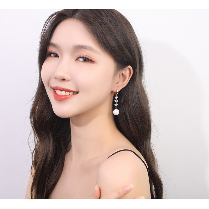 SWZH-EH726心形珍珠耳环休闲款长款心连心镶钻耳坠新款个性通勤耳饰