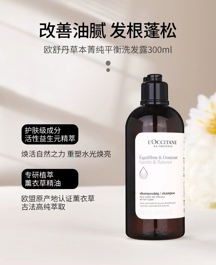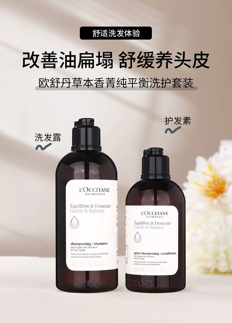 【保税】欧舒丹草本香菁纯平衡洗护套装洗发水300ml+护发素250ml(套装)