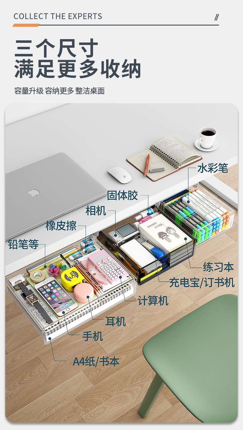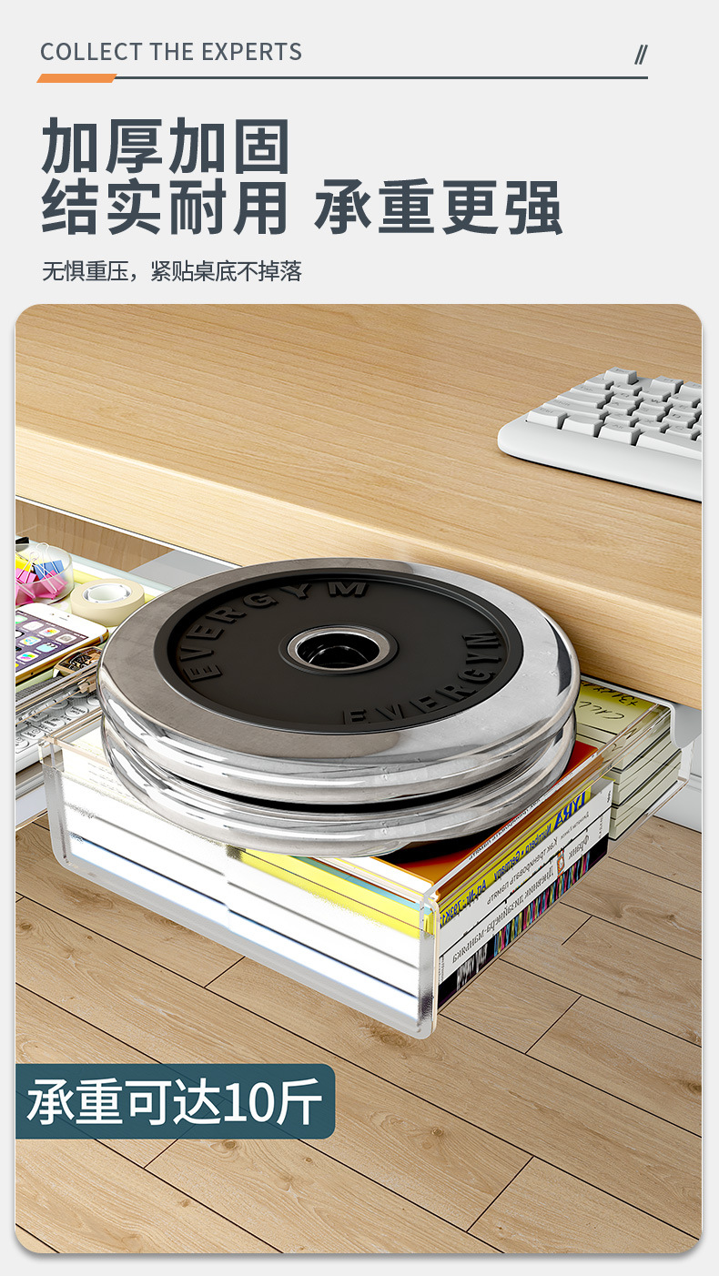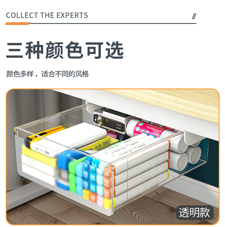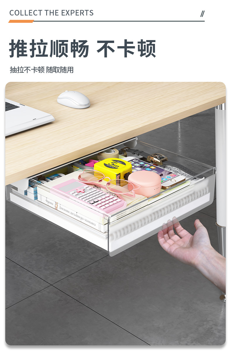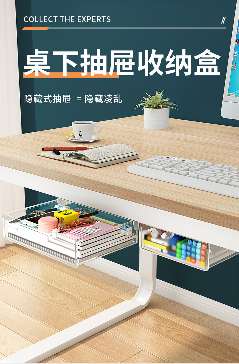 免打孔桌下抽屉隐形书桌收纳盒悬挂大容量抽屉式收纳盒有杠加装