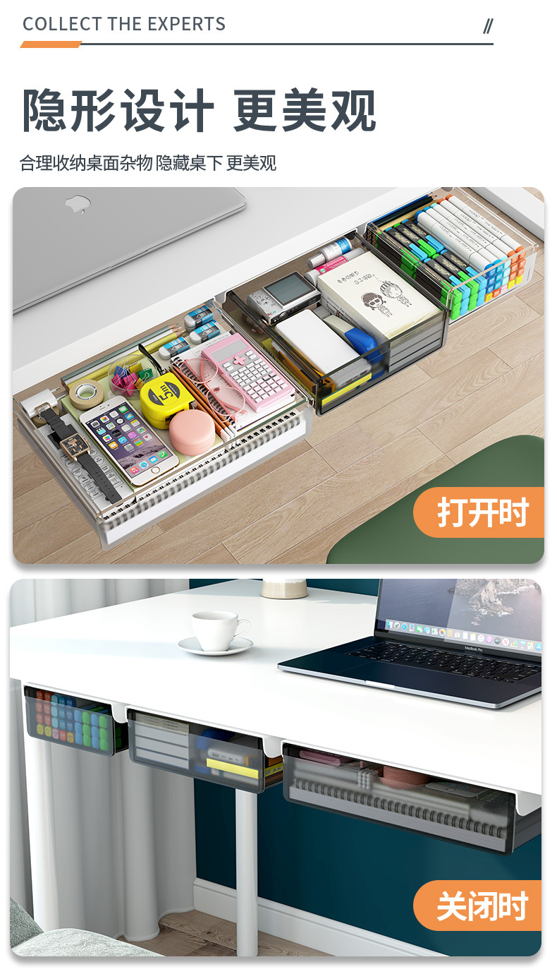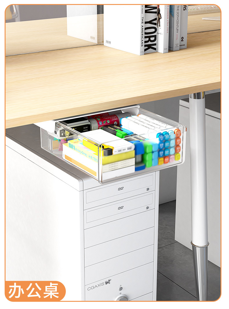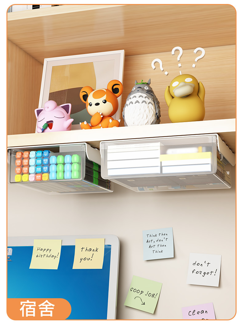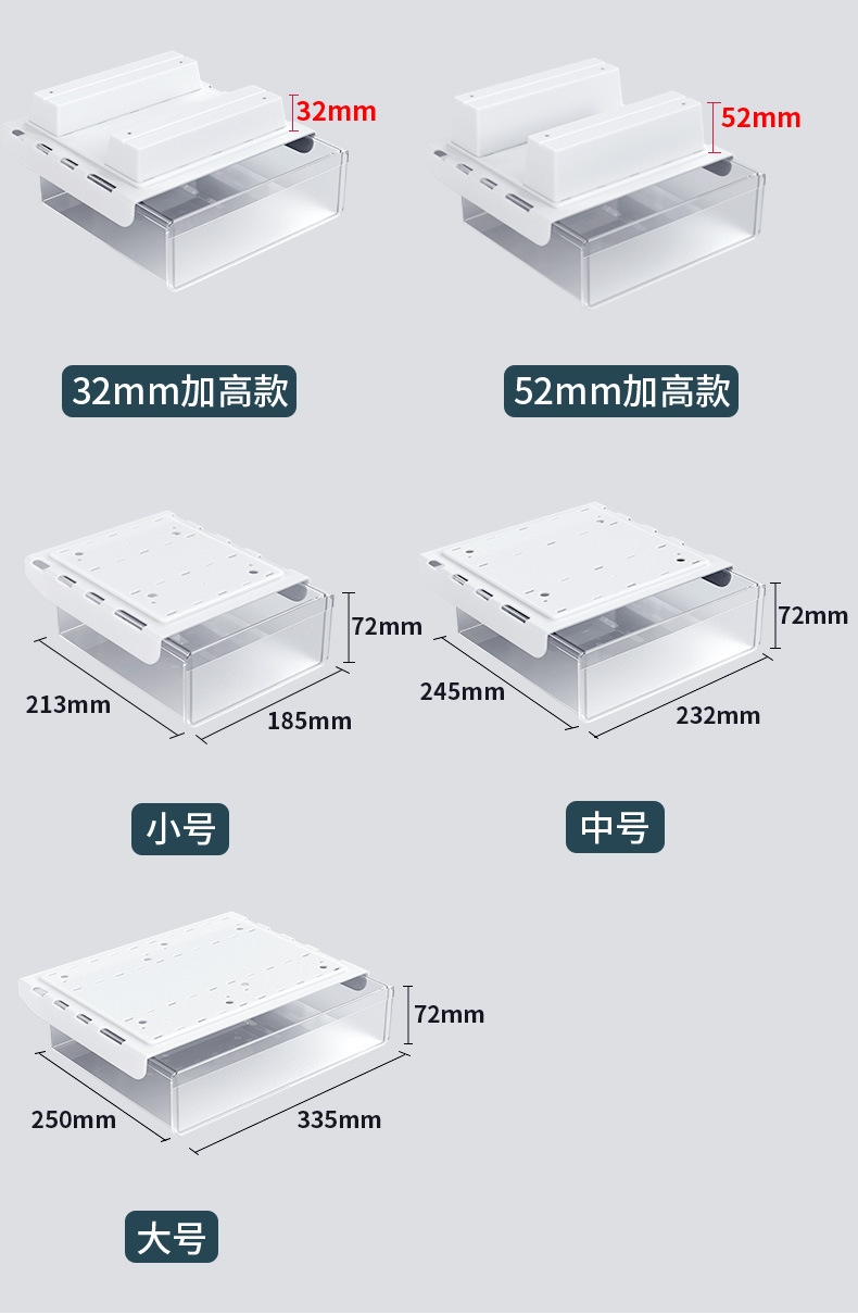 免打孔桌下抽屉隐形书桌收纳盒悬挂大容量抽屉式收纳盒有杠加装
