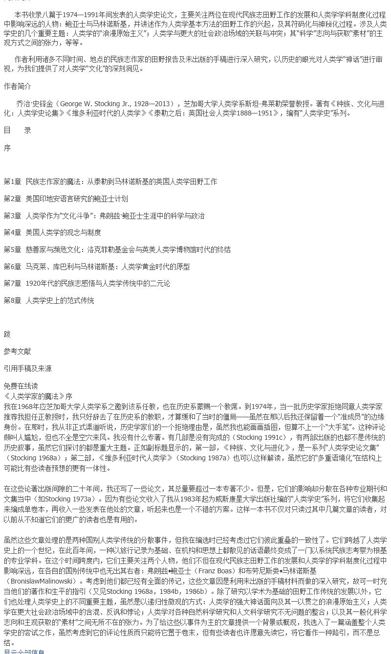 人类学家的魔法:人类学史论集
