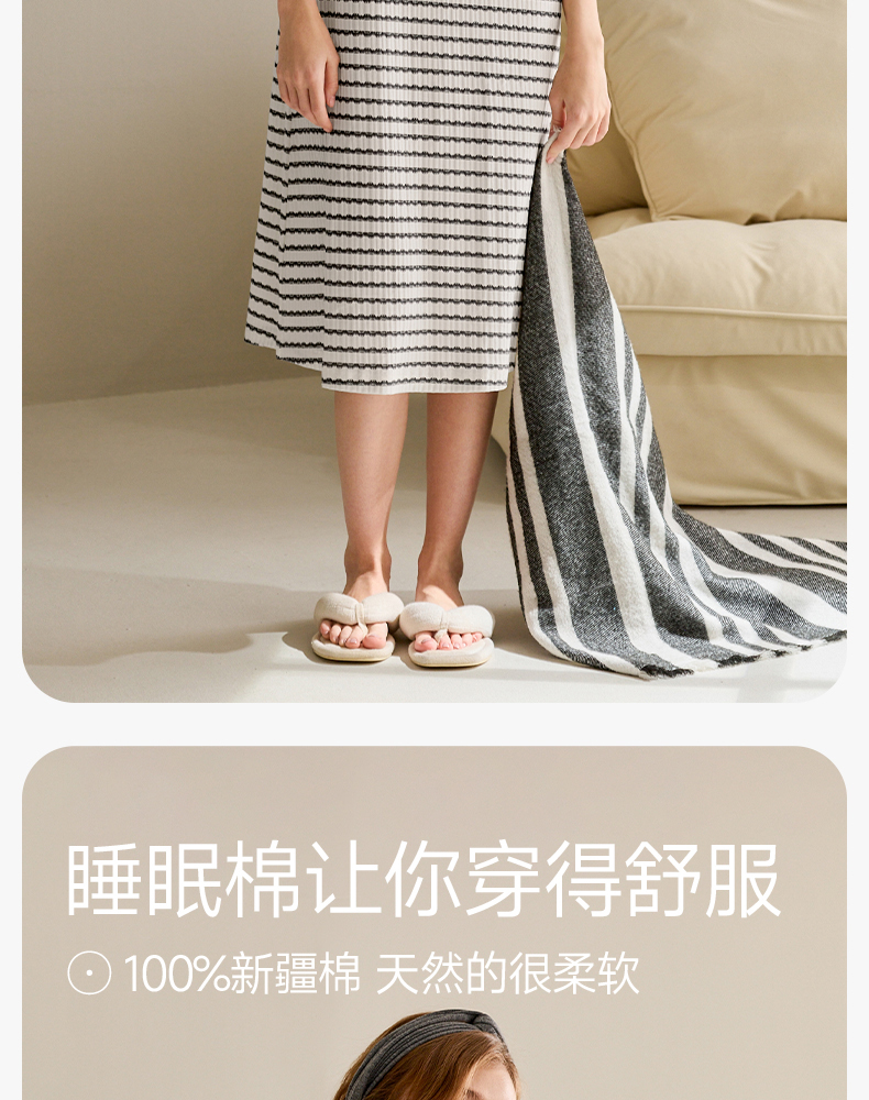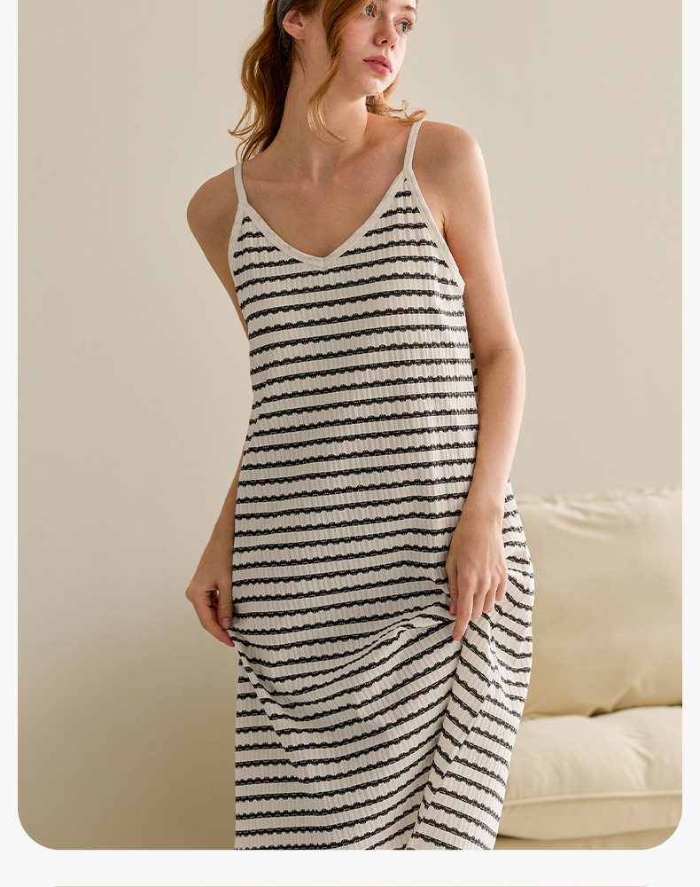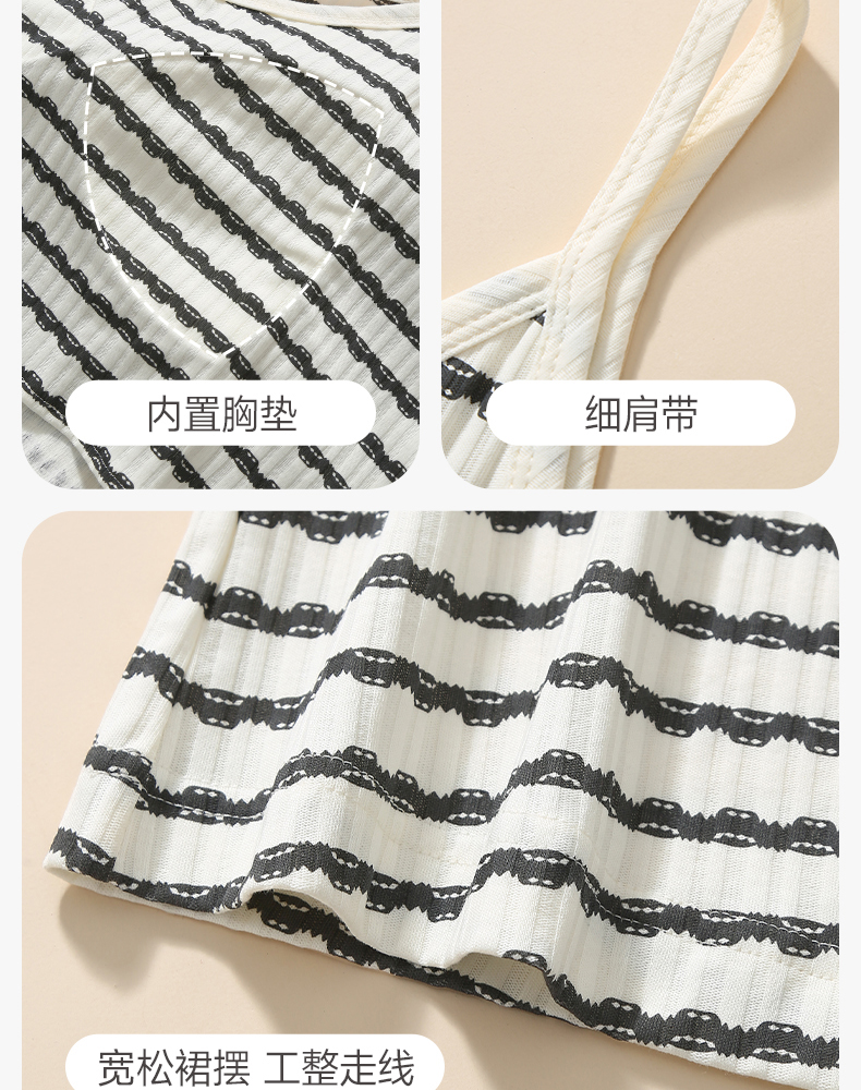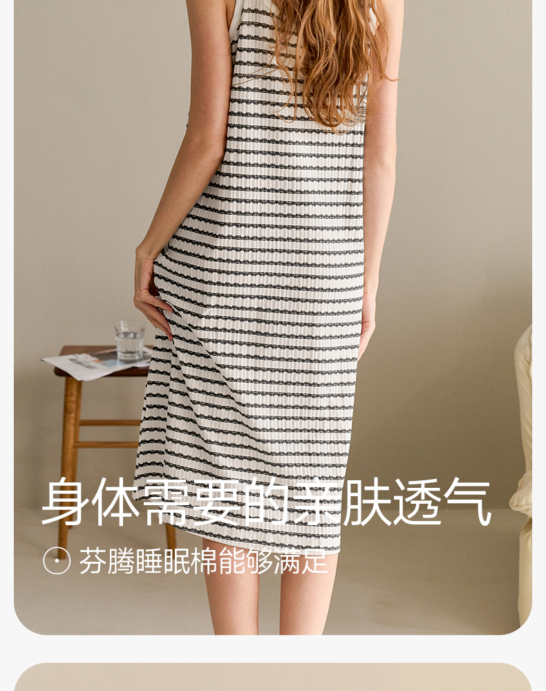 芬腾吊带睡裙带胸垫睡衣夏季女士纯棉裙休闲大码家居裙全棉中长裙
