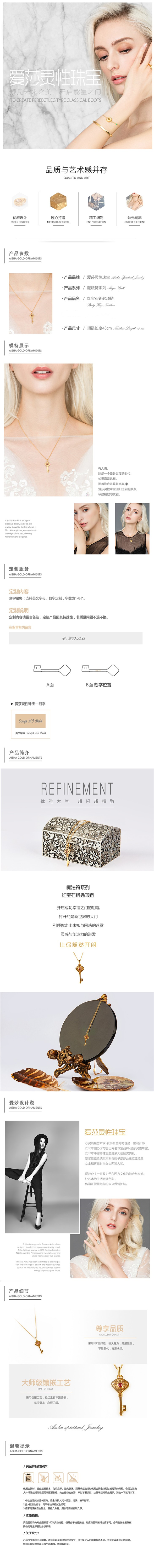 爱莎许愿工艺 宝石钥匙项链