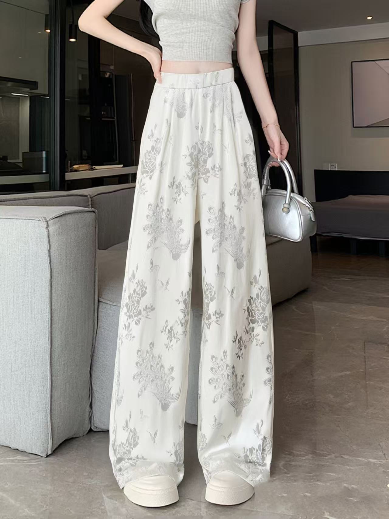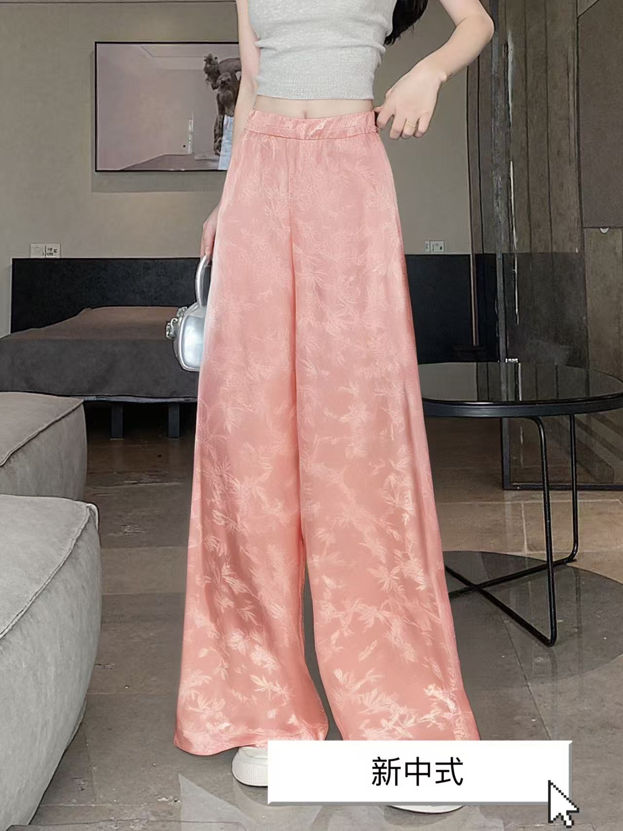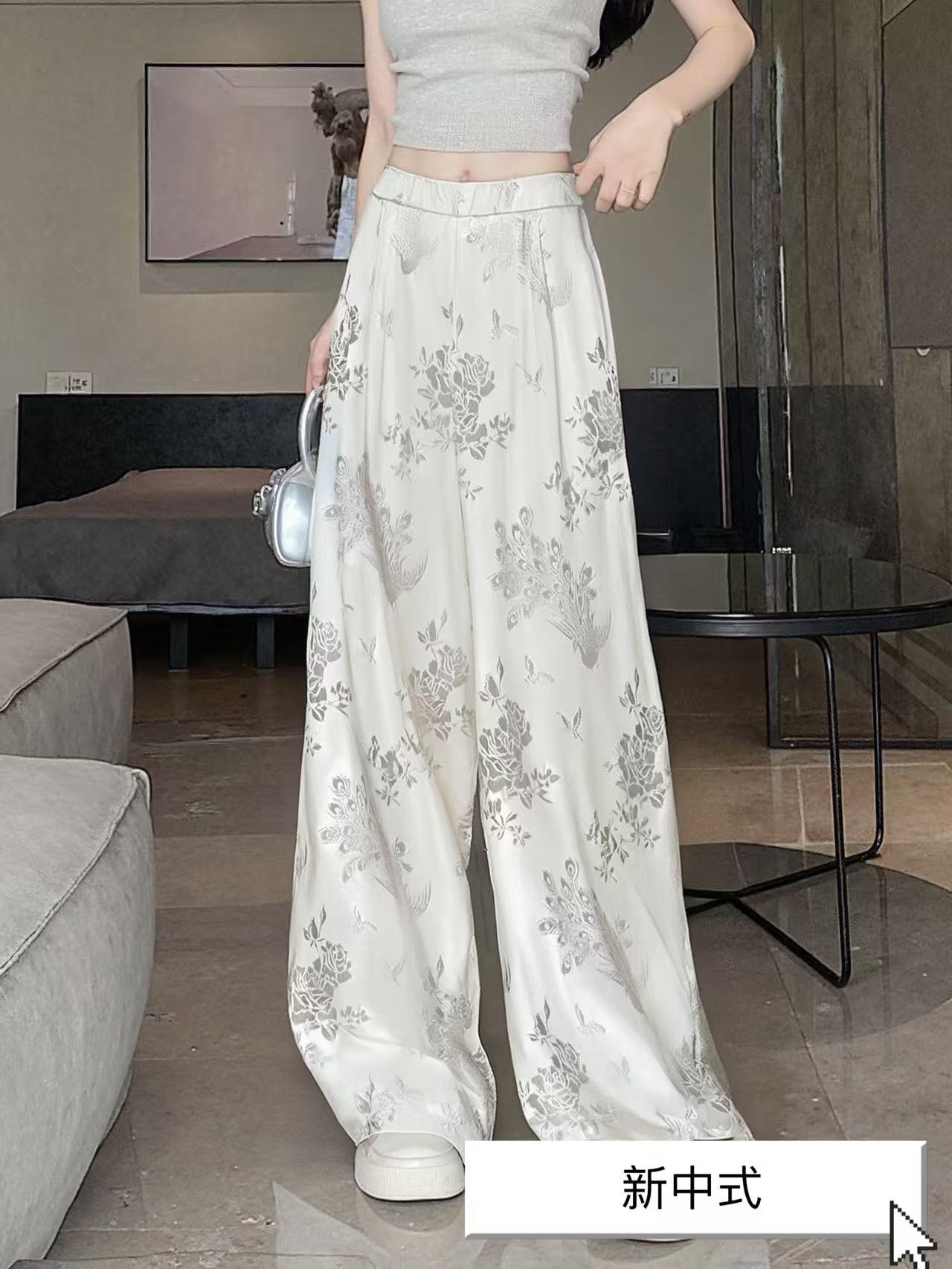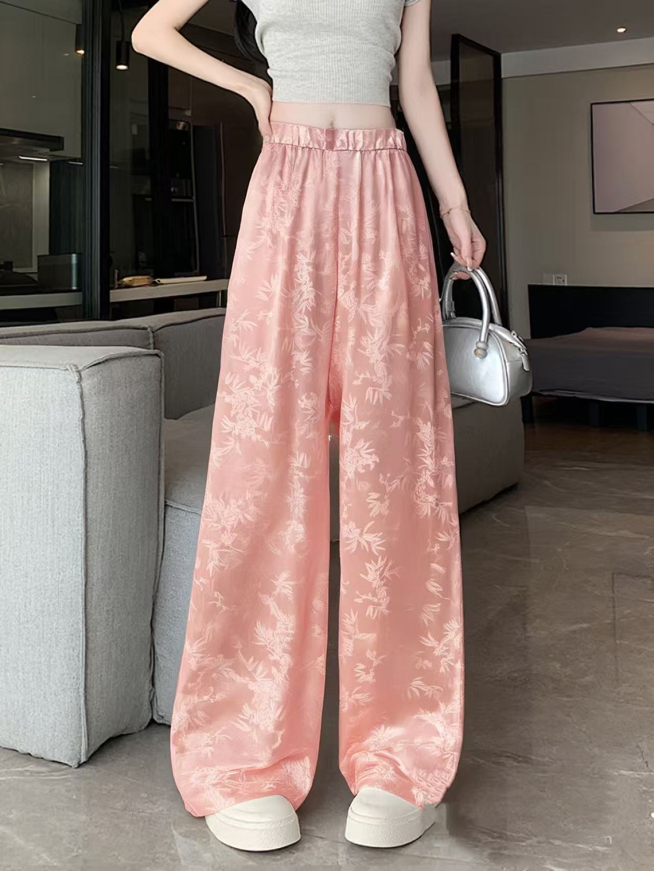 【MYBL】7903新中式提花宽松阔腿裤休闲裤-喜出